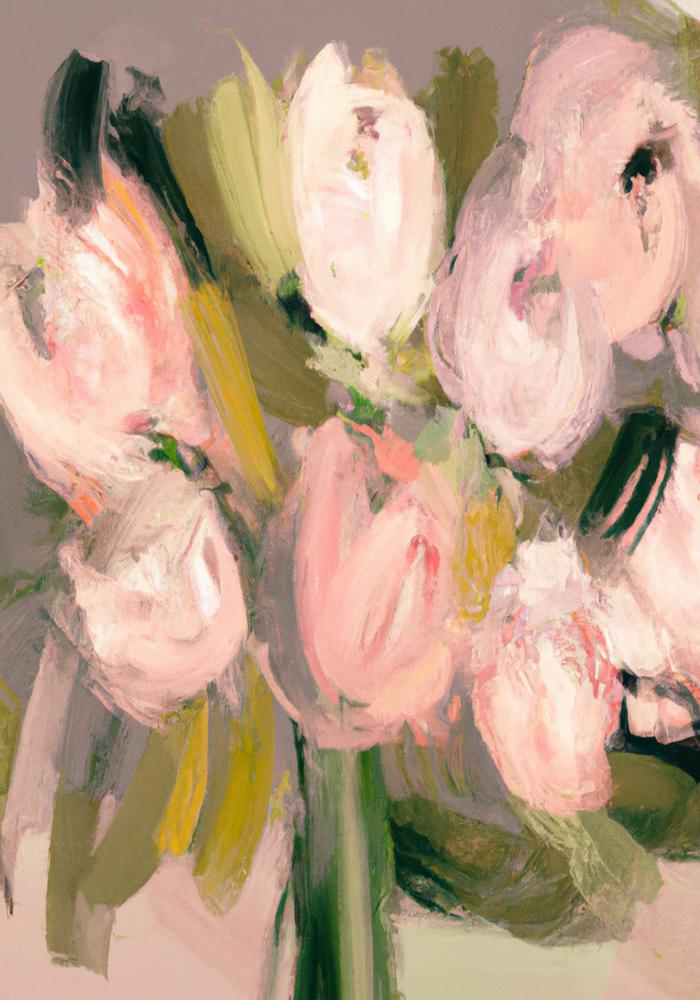 A vivid dance of pastel blooms swirls in muted vigor, capturing the ephemeral beauty of nature with gestural strokes.