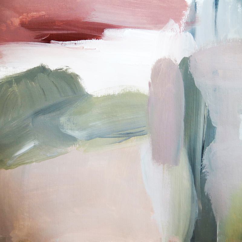 Hazy strokes converge in a gentle dance of muted pastels, whispering echoes of a serene, dreamlike landscape.