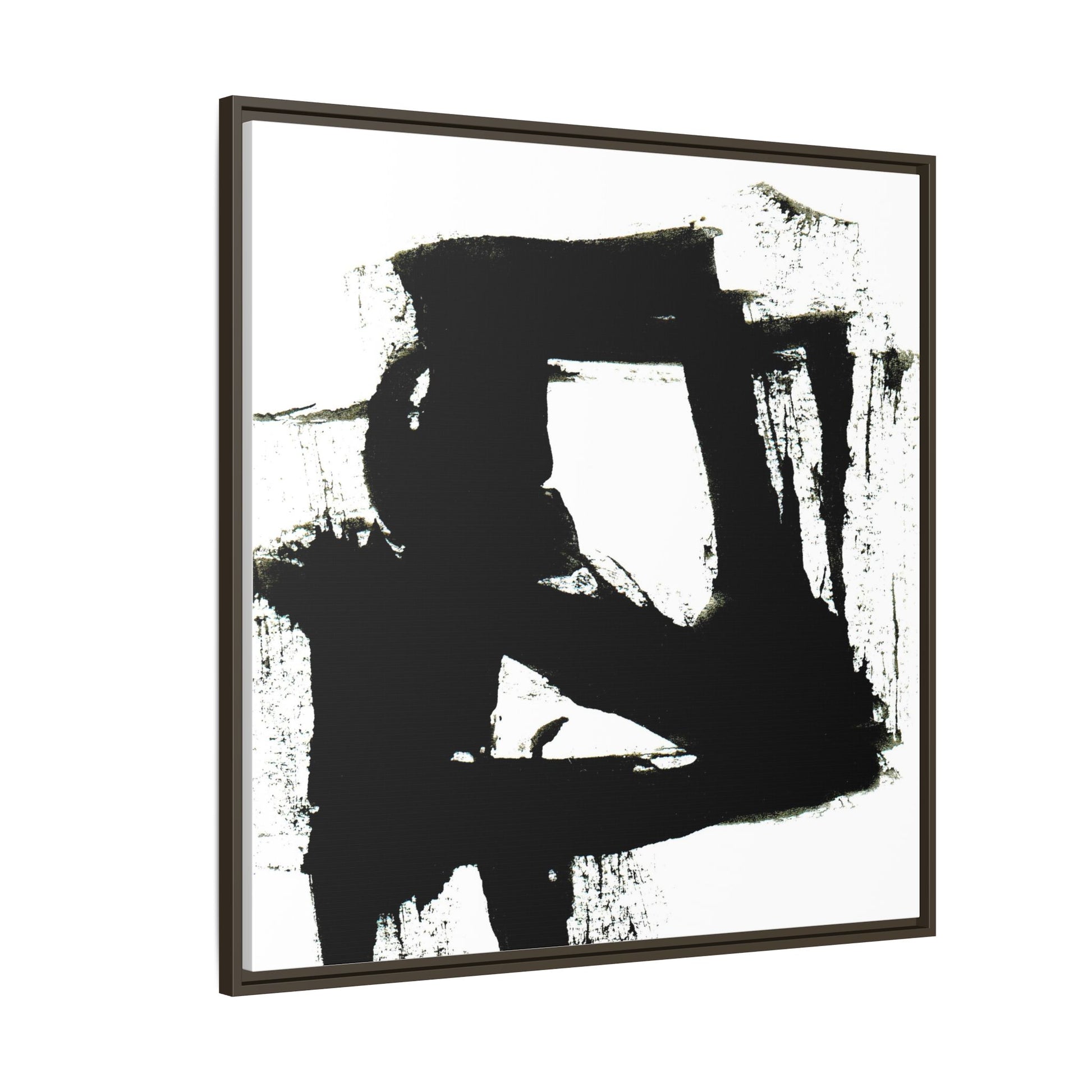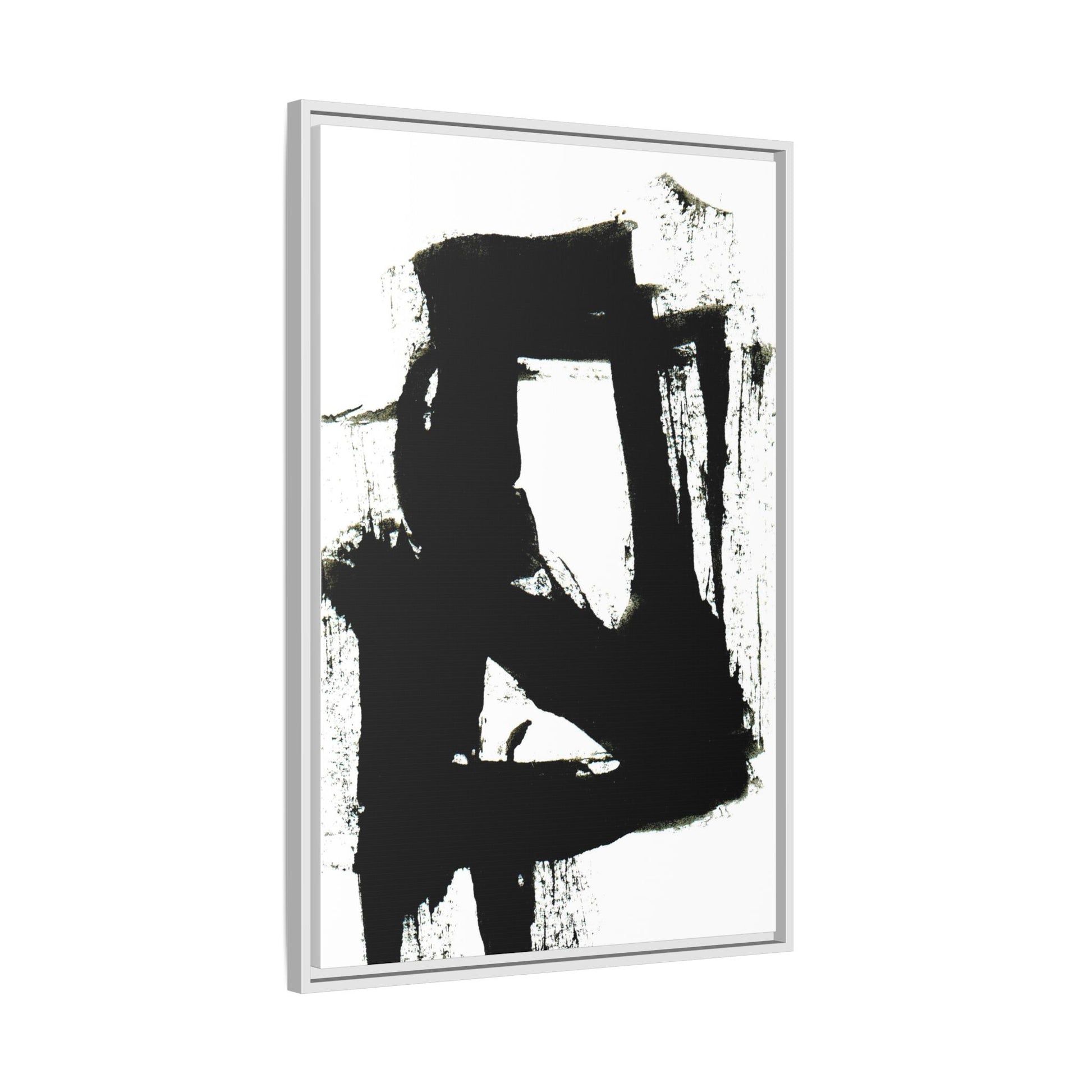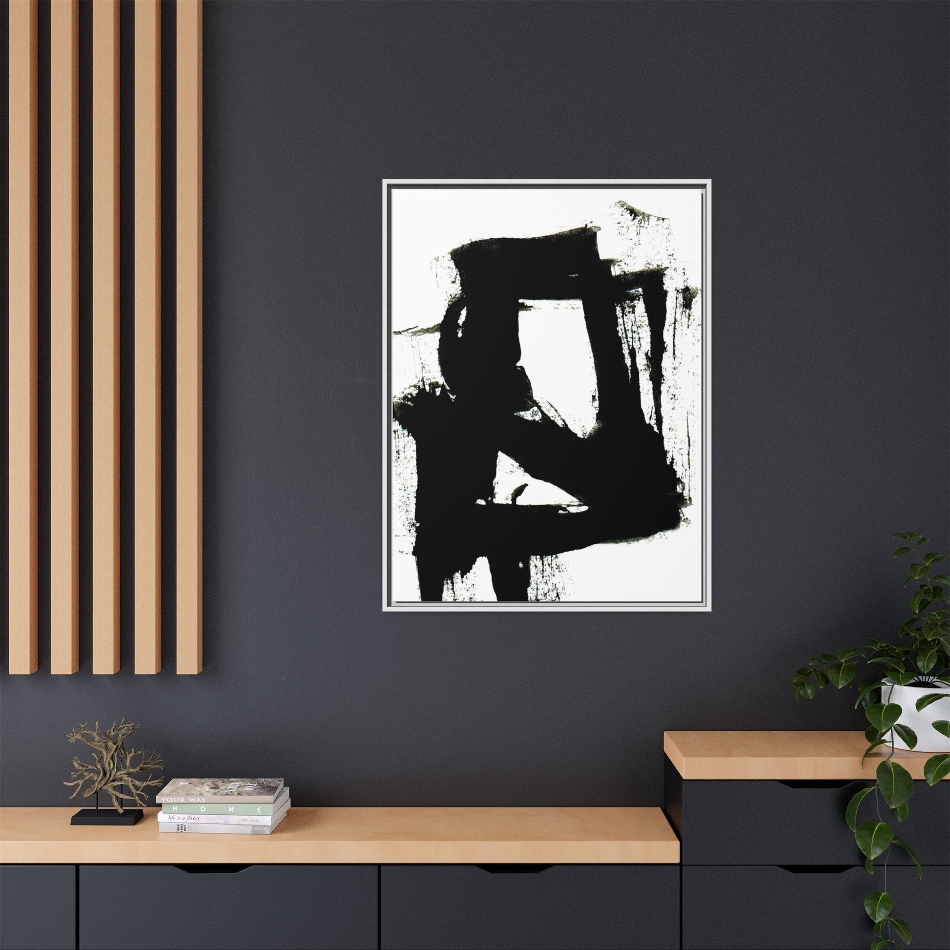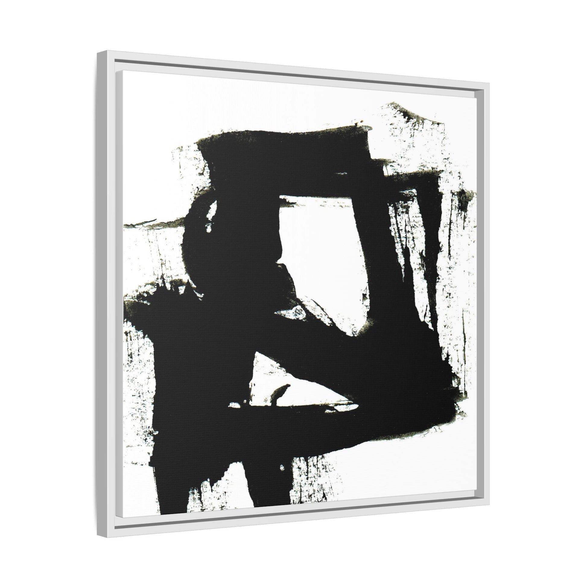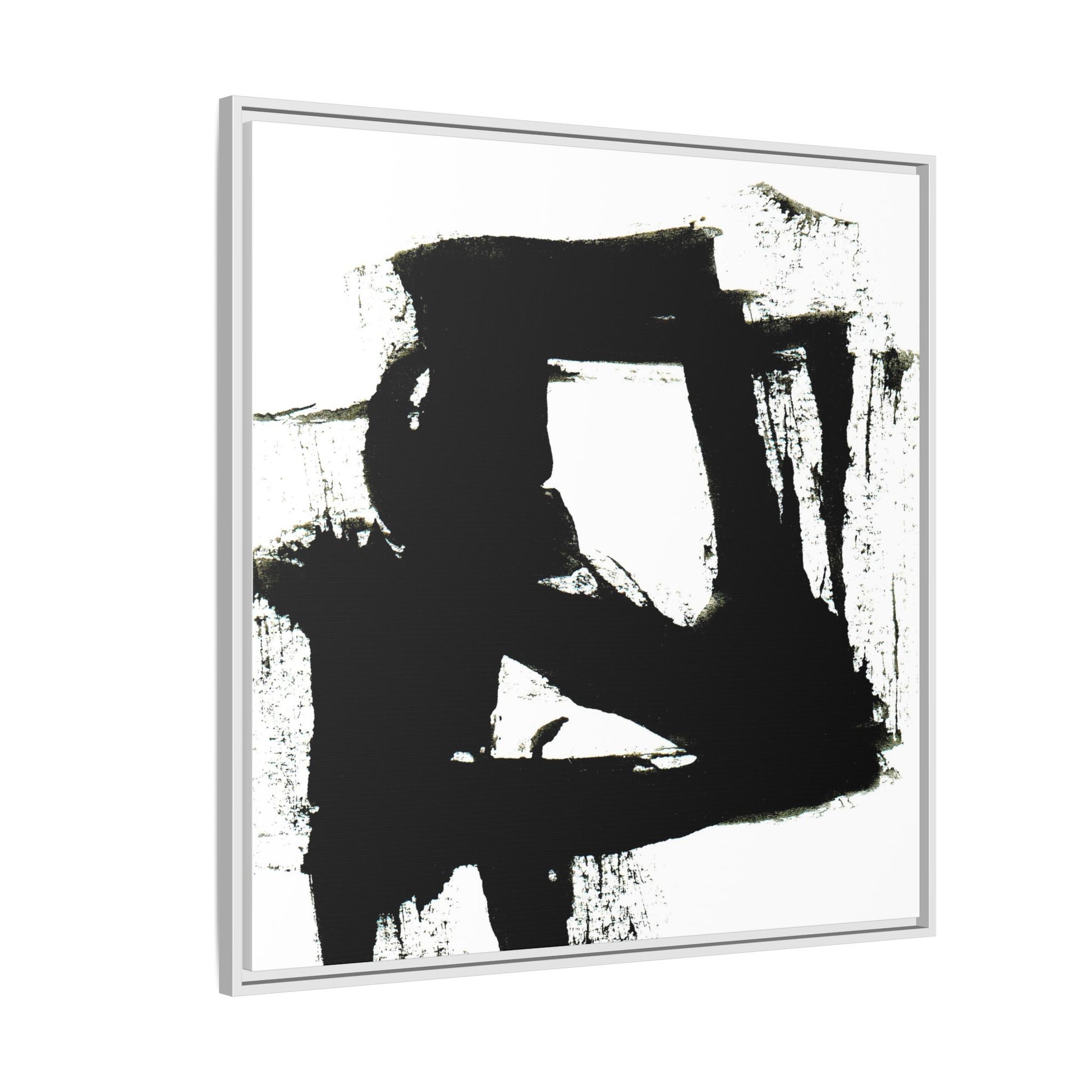 This black and white abstract image showcases a dynamic and expressive artistic composition featuring bold, gestural brushstrokes. The artwork is characterized by deep black markings that create sweeping, angular shapes against a stark white background, creating a high-contrast visual effect. The brushwork appears spontaneous and energetic, with rough, textured edges that suggest movement and emotional intensity. Layers of black paint overlap and intersect, forming geometric and organic shapes that seem to flow and collide across the image plane. The minimalist color palette and abstract style evoke a sense of raw artistic expression, reminiscent of abstract expressionist painting techniques.