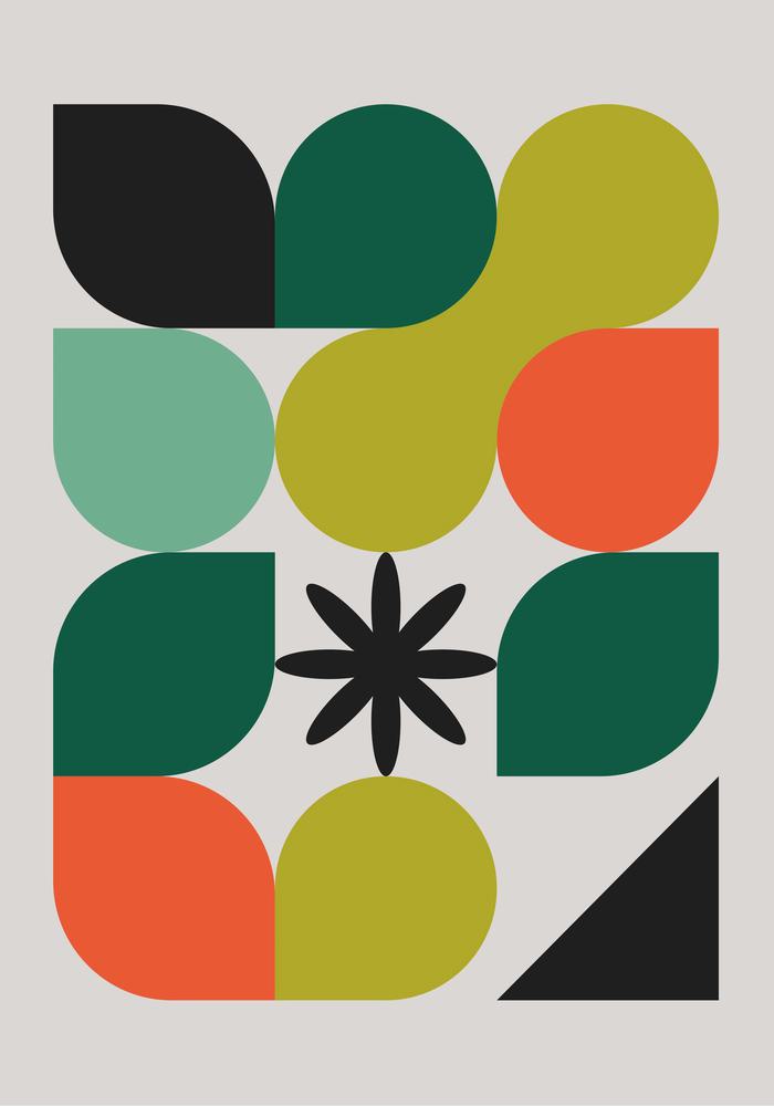 A vibrant interplay of retro geometric shapes, where each color petal embodies a rhythm of modern symmetry.