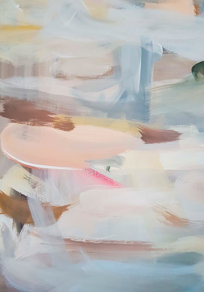 Gentle swirls of muted pastels merge into an ethereal expanse, evoking a serene journey through mist and memory.