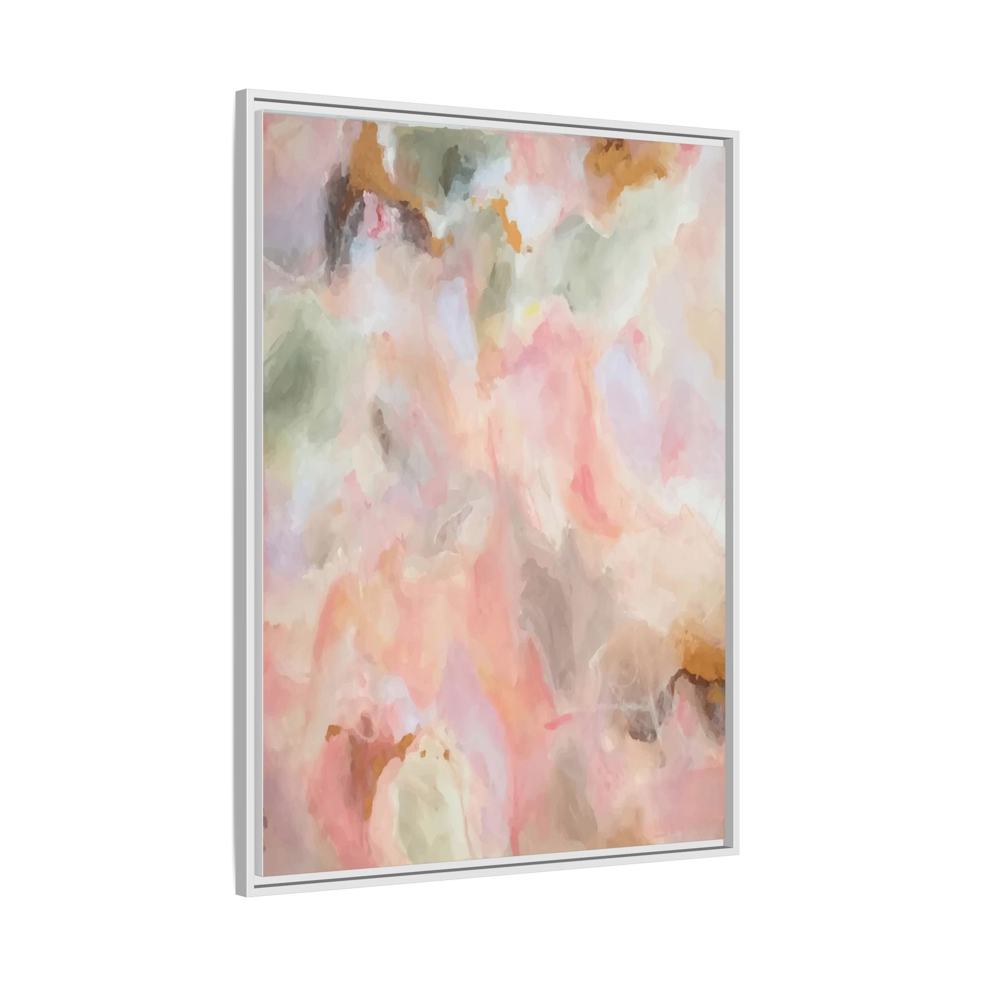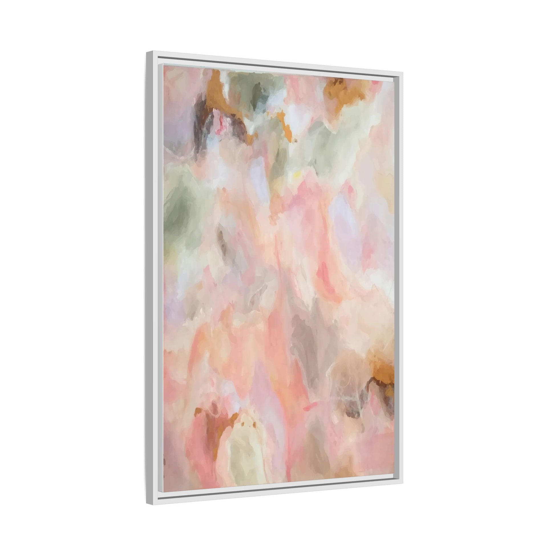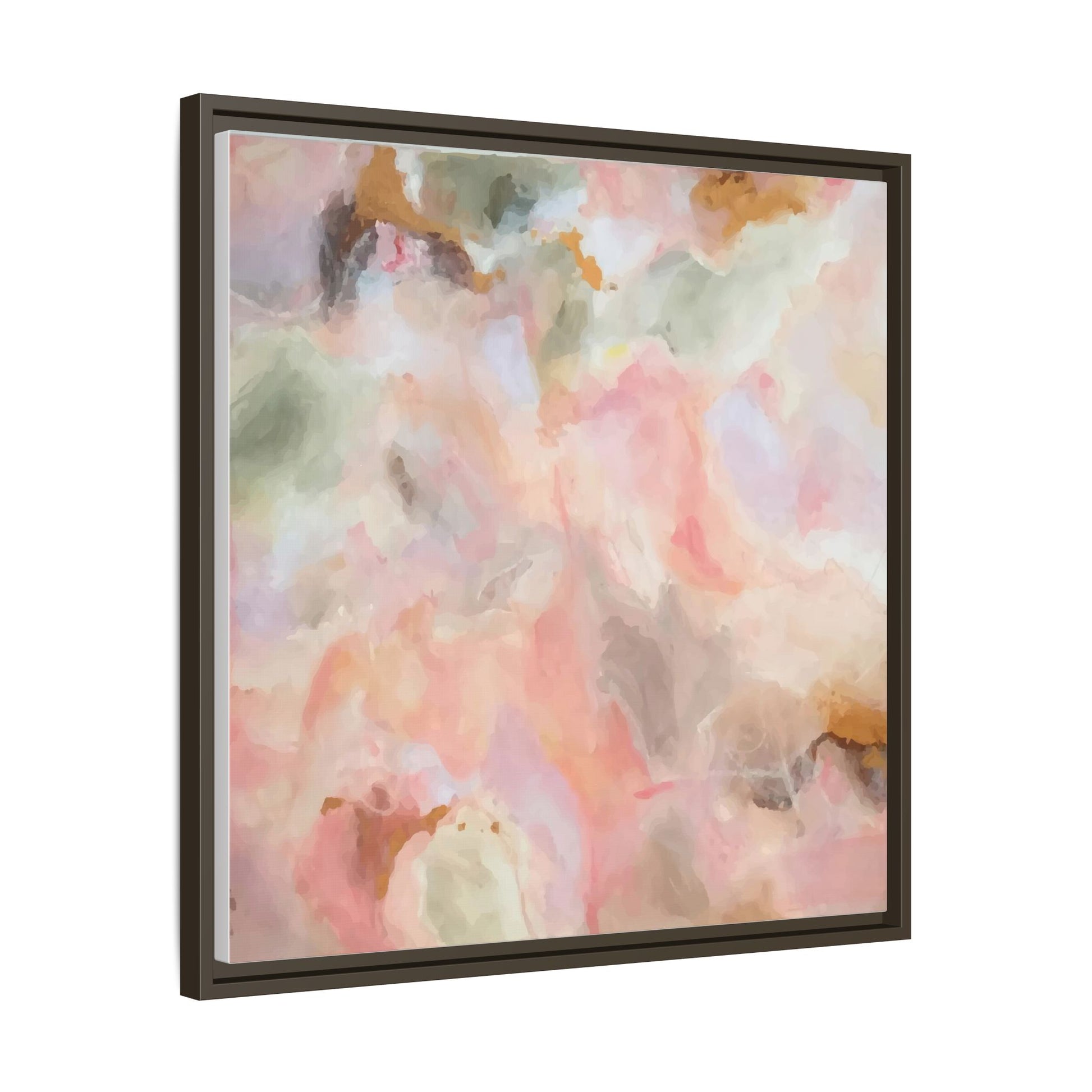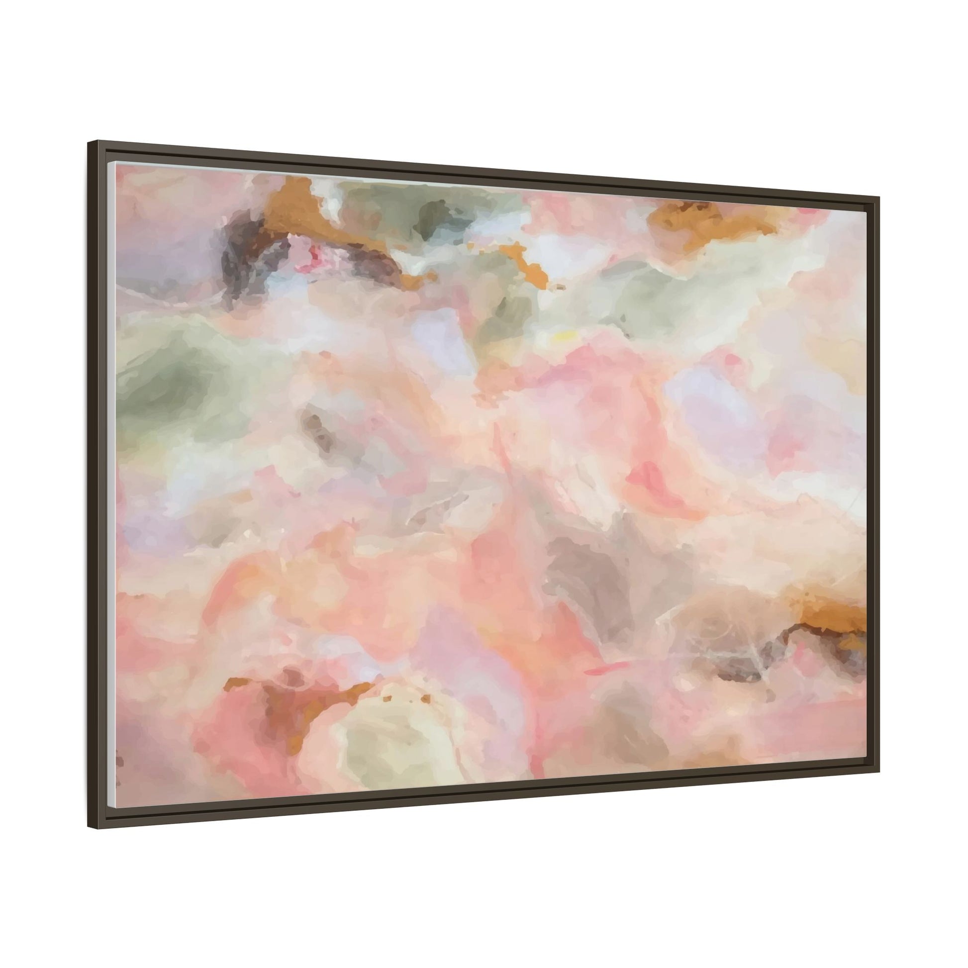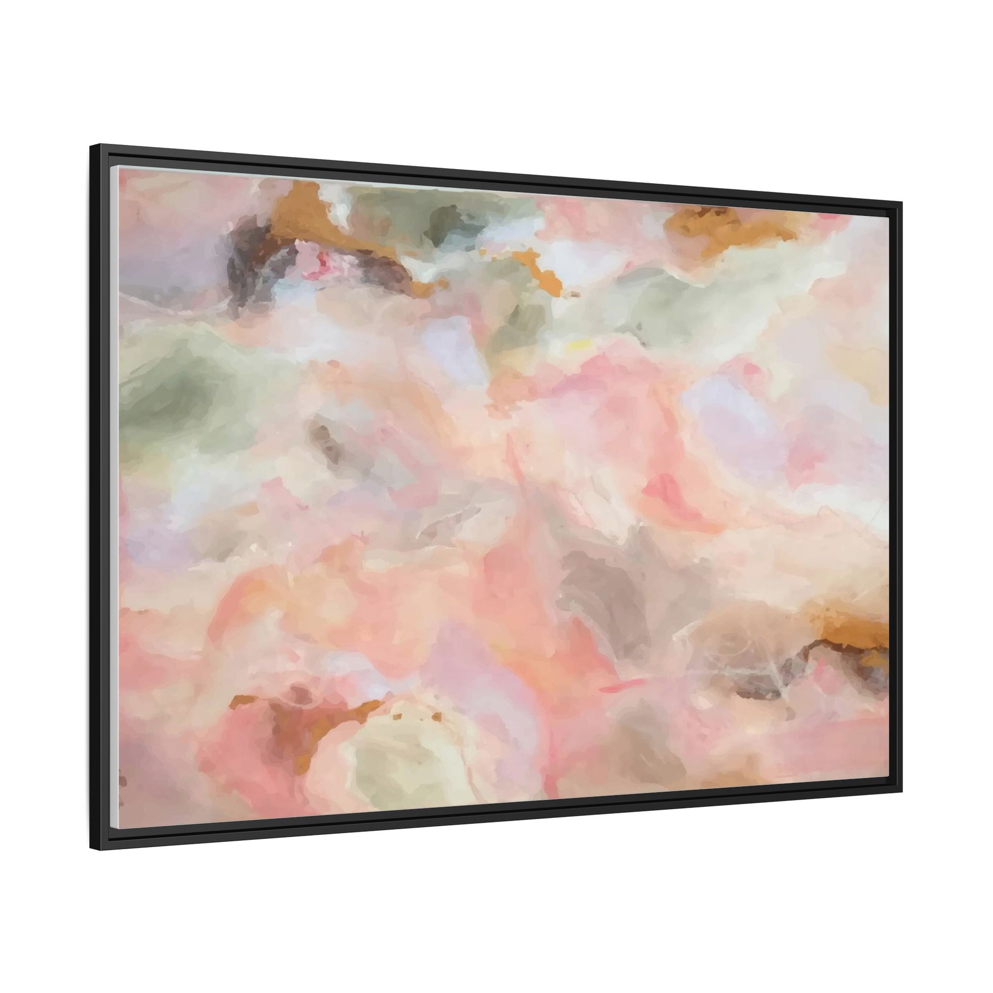 This ethereal abstract artwork showcases a delicate watercolor-style composition featuring soft, blended colors reminiscent of a dreamy cloudscape. The palette is predominantly composed of muted pinks, gentle greens, warm yellows, and subtle grays, creating a harmonious and soothing visual experience. Fluid brush strokes and translucent layers give the image a sense of depth and movement, with colors bleeding and blending into each other in organic, cloud-like formations. The painting appears to have a watercolor or digital painting technique, with edges that are soft and undefined, allowing colors to merge and create subtle transitions. The overall effect is calming and contemplative, evoking the sensation of gazing into a pastel-tinted sky or a abstract landscape viewed through a soft, diffused lens.