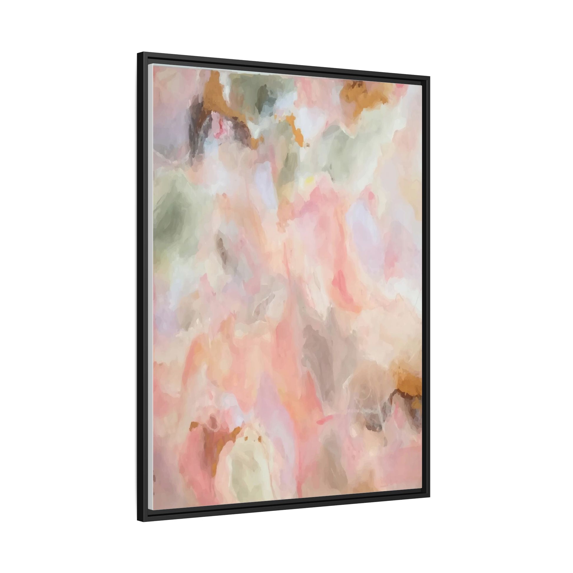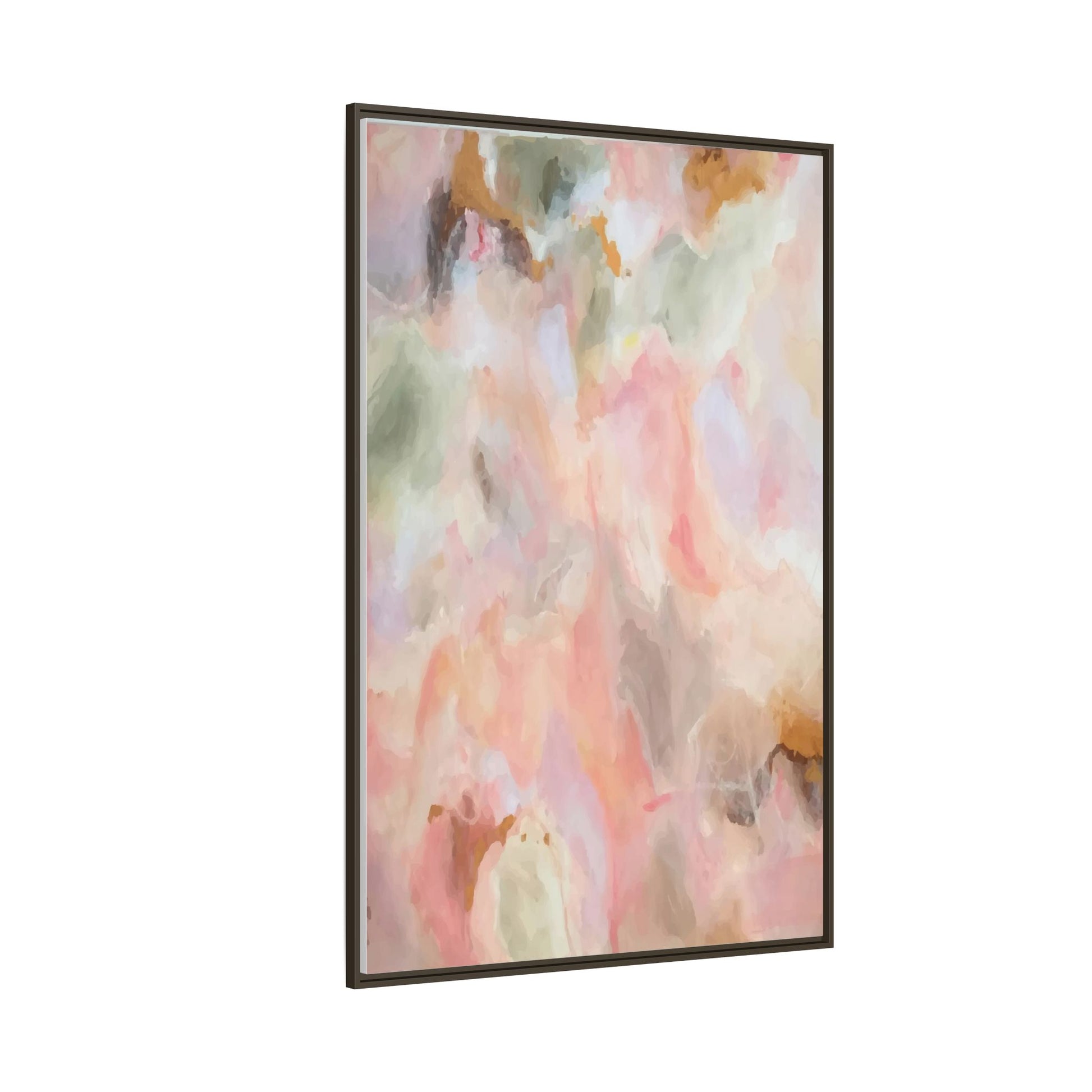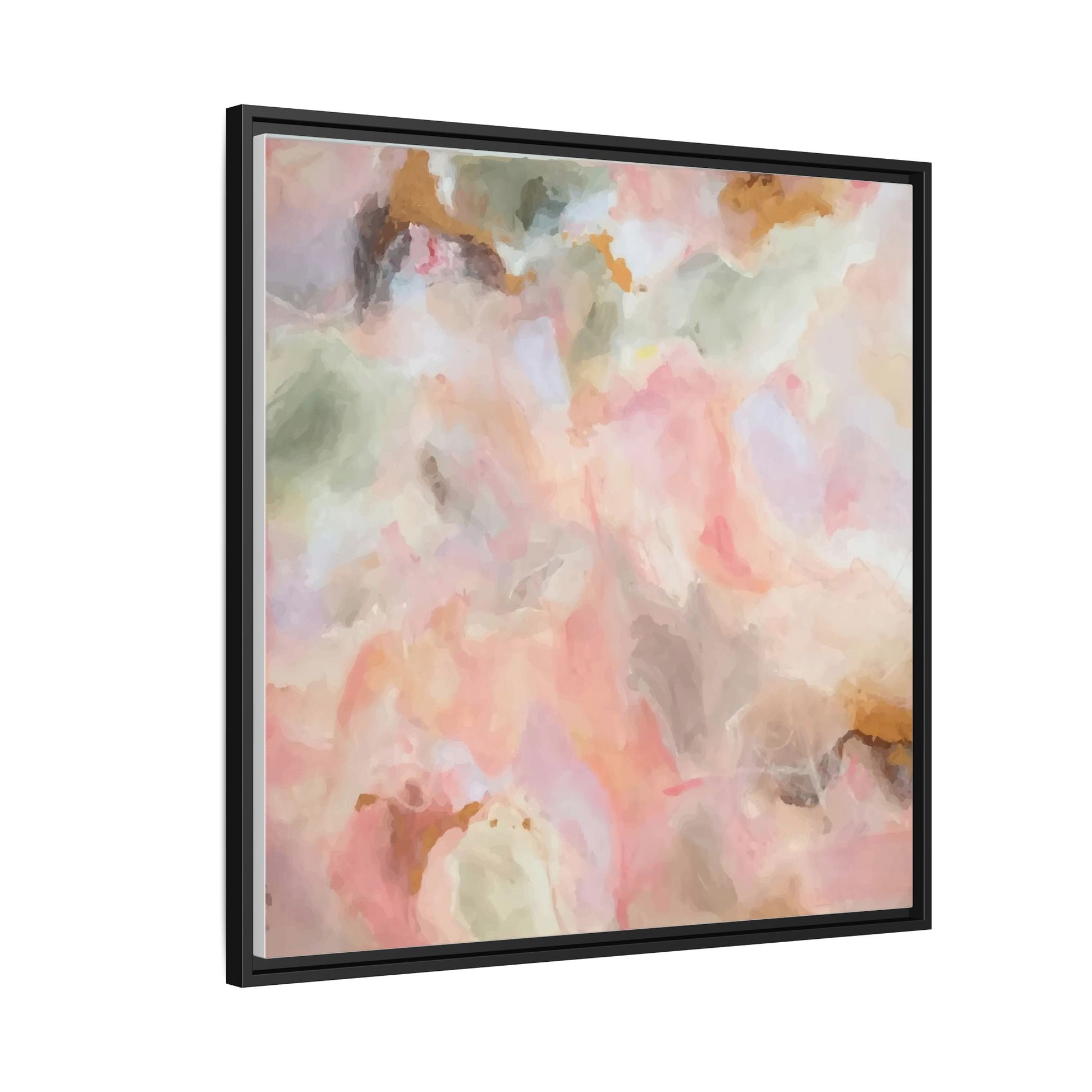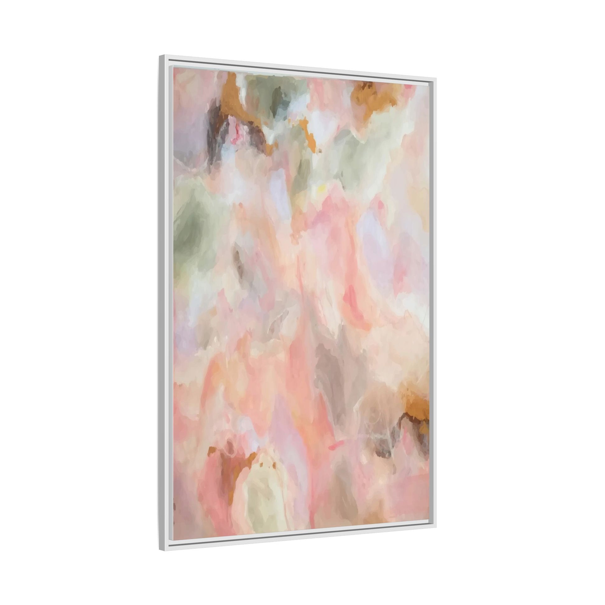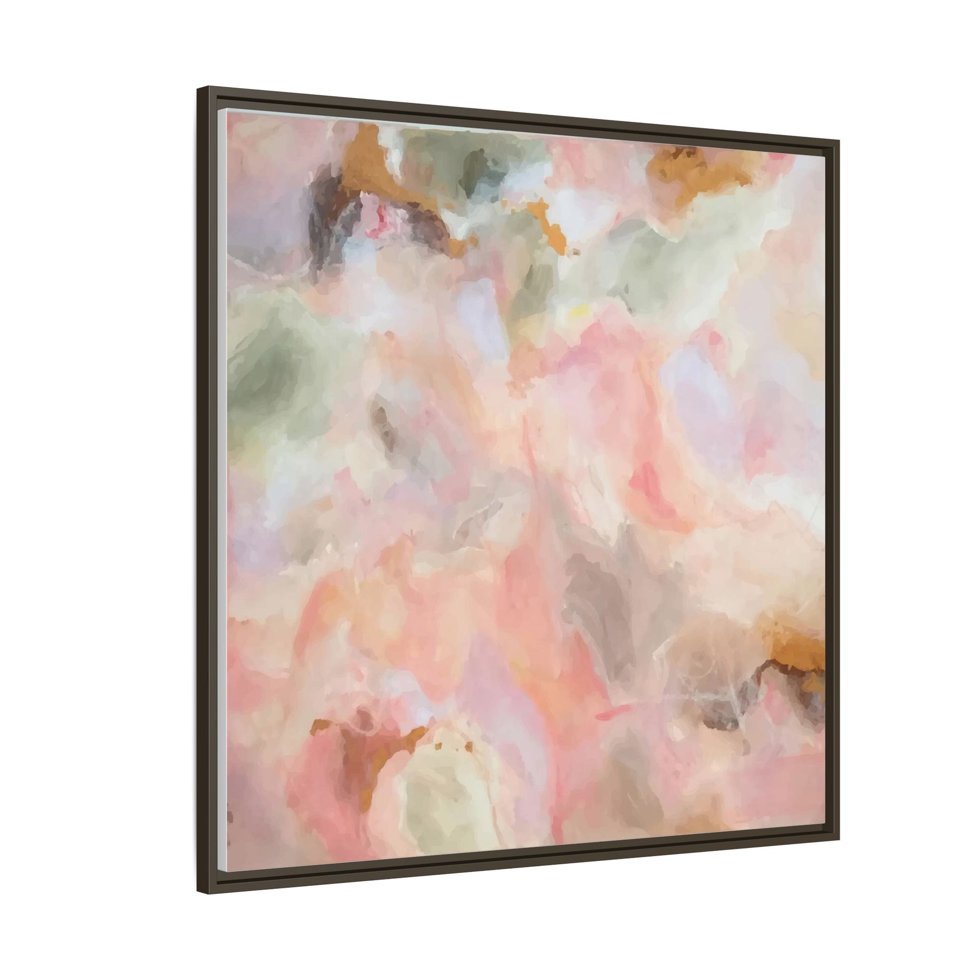 This ethereal abstract artwork showcases a delicate watercolor-style composition featuring soft, blended colors reminiscent of a dreamy cloudscape. The palette is predominantly composed of muted pinks, gentle greens, warm yellows, and subtle grays, creating a harmonious and soothing visual experience. Fluid brush strokes and translucent layers give the image a sense of depth and movement, with colors bleeding and blending into each other in organic, cloud-like formations. The painting appears to have a watercolor or digital painting technique, with edges that are soft and undefined, allowing colors to merge and create subtle transitions. The overall effect is calming and contemplative, evoking the sensation of gazing into a pastel-tinted sky or a abstract landscape viewed through a soft, diffused lens.