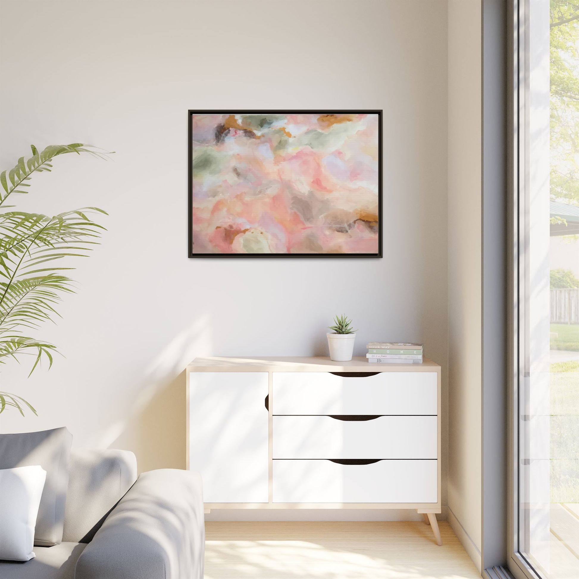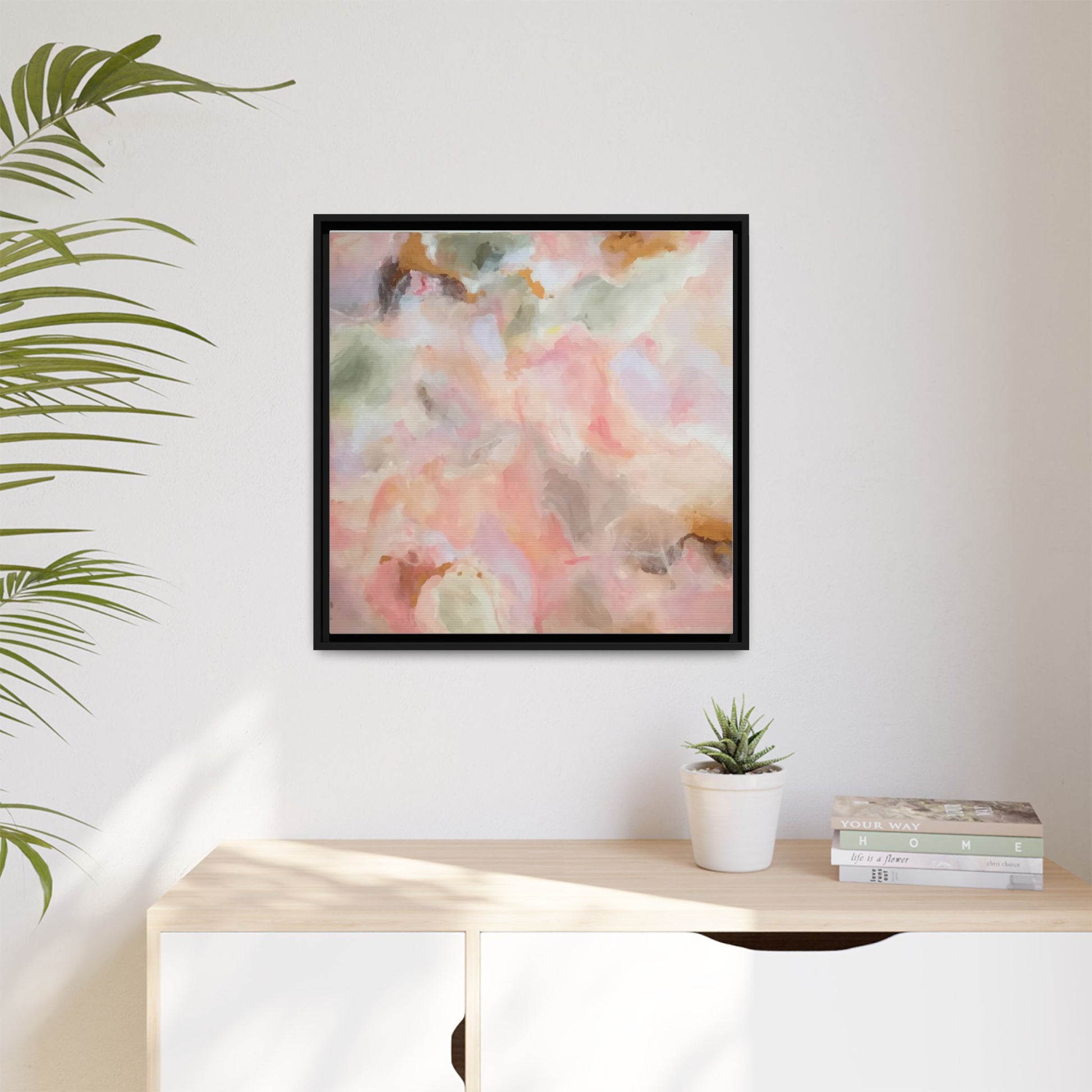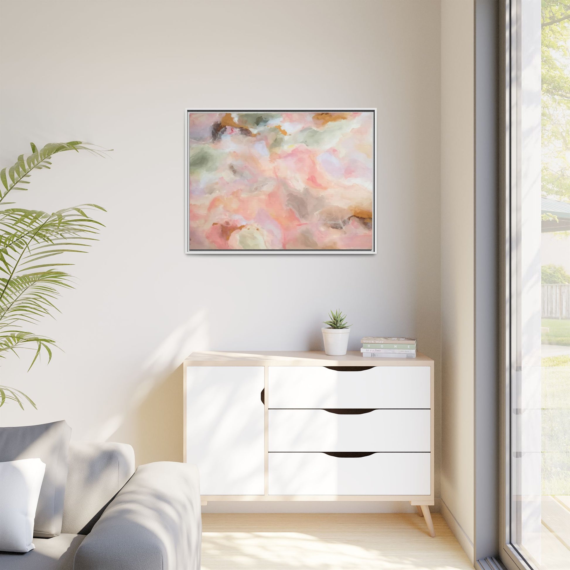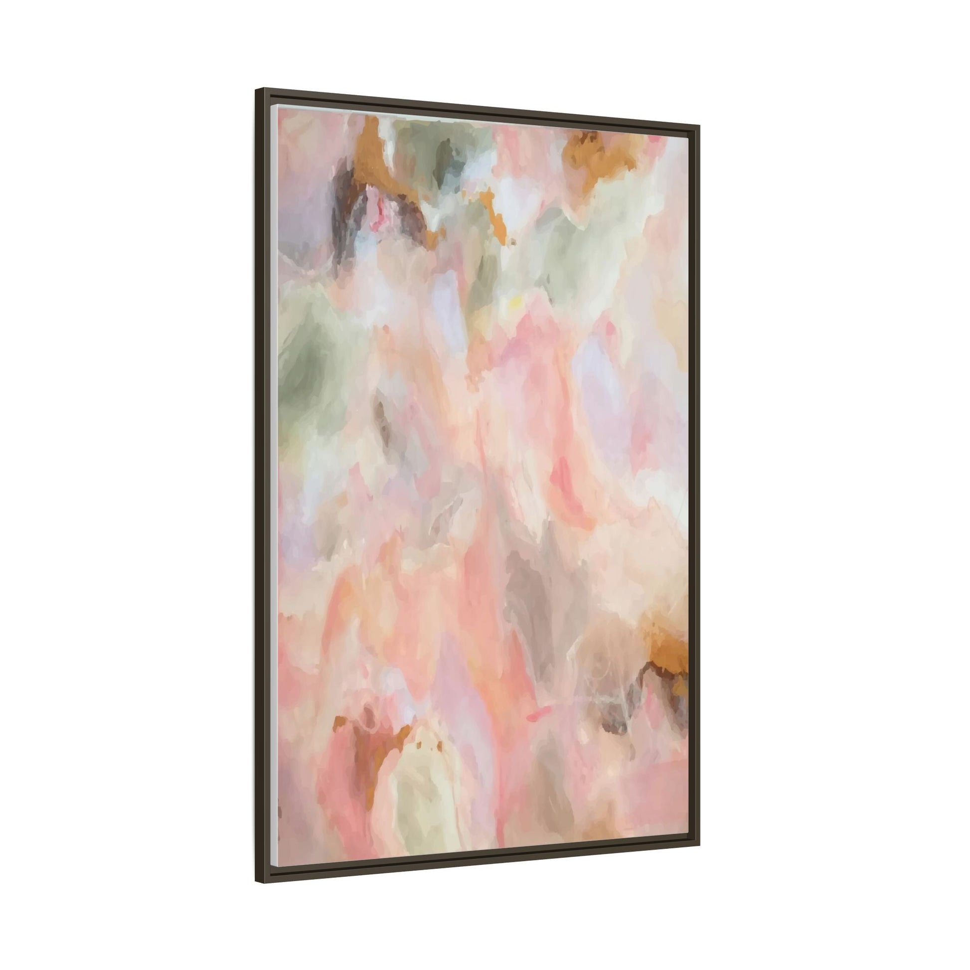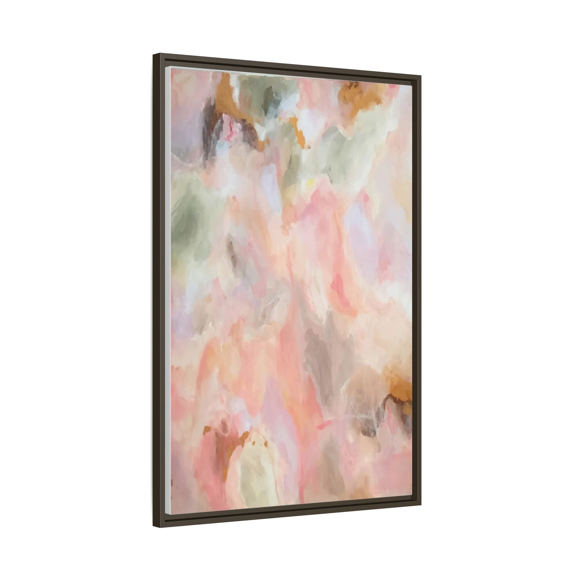 This ethereal abstract artwork showcases a delicate watercolor-style composition featuring soft, blended colors reminiscent of a dreamy cloudscape. The palette is predominantly composed of muted pinks, gentle greens, warm yellows, and subtle grays, creating a harmonious and soothing visual experience. Fluid brush strokes and translucent layers give the image a sense of depth and movement, with colors bleeding and blending into each other in organic, cloud-like formations. The painting appears to have a watercolor or digital painting technique, with edges that are soft and undefined, allowing colors to merge and create subtle transitions. The overall effect is calming and contemplative, evoking the sensation of gazing into a pastel-tinted sky or a abstract landscape viewed through a soft, diffused lens.