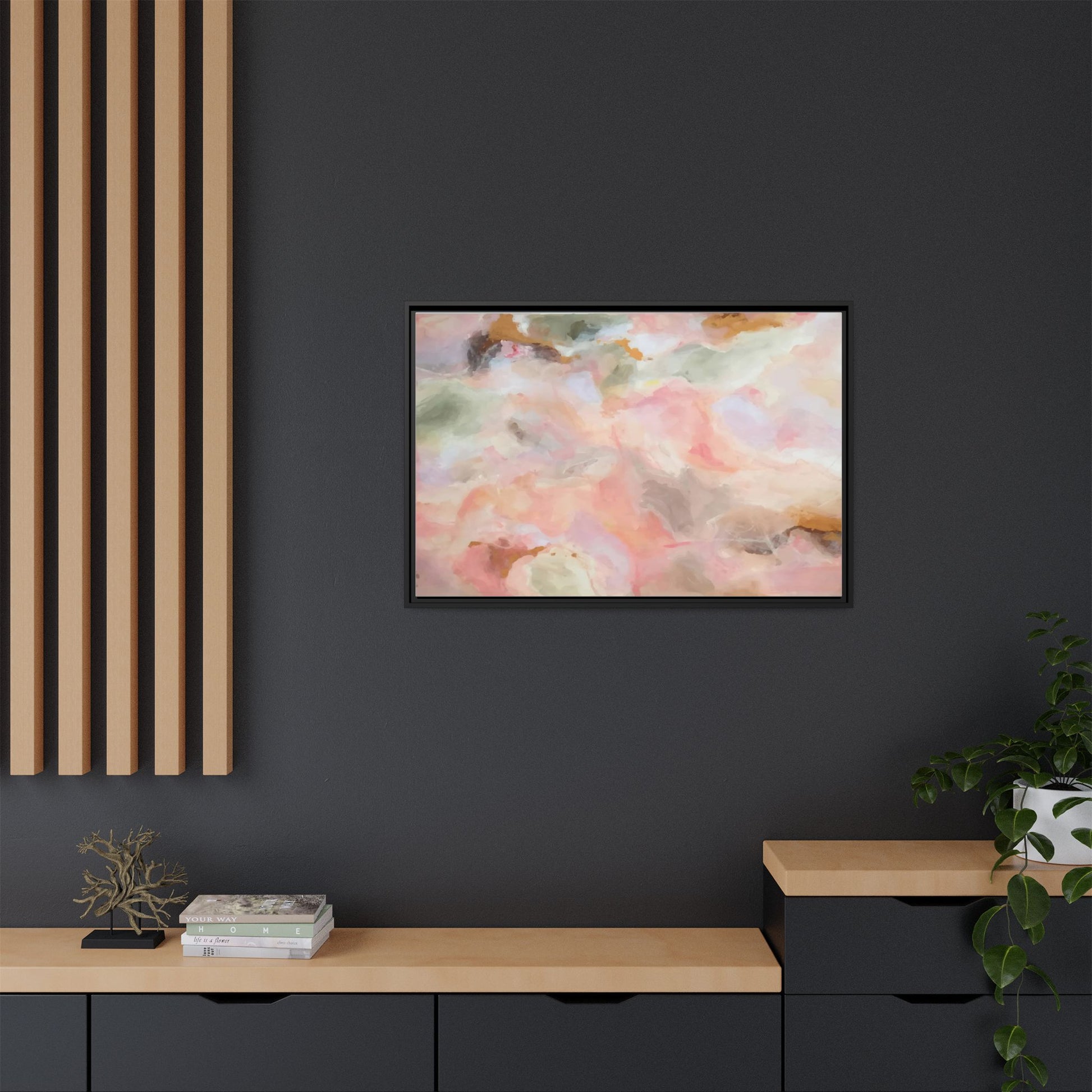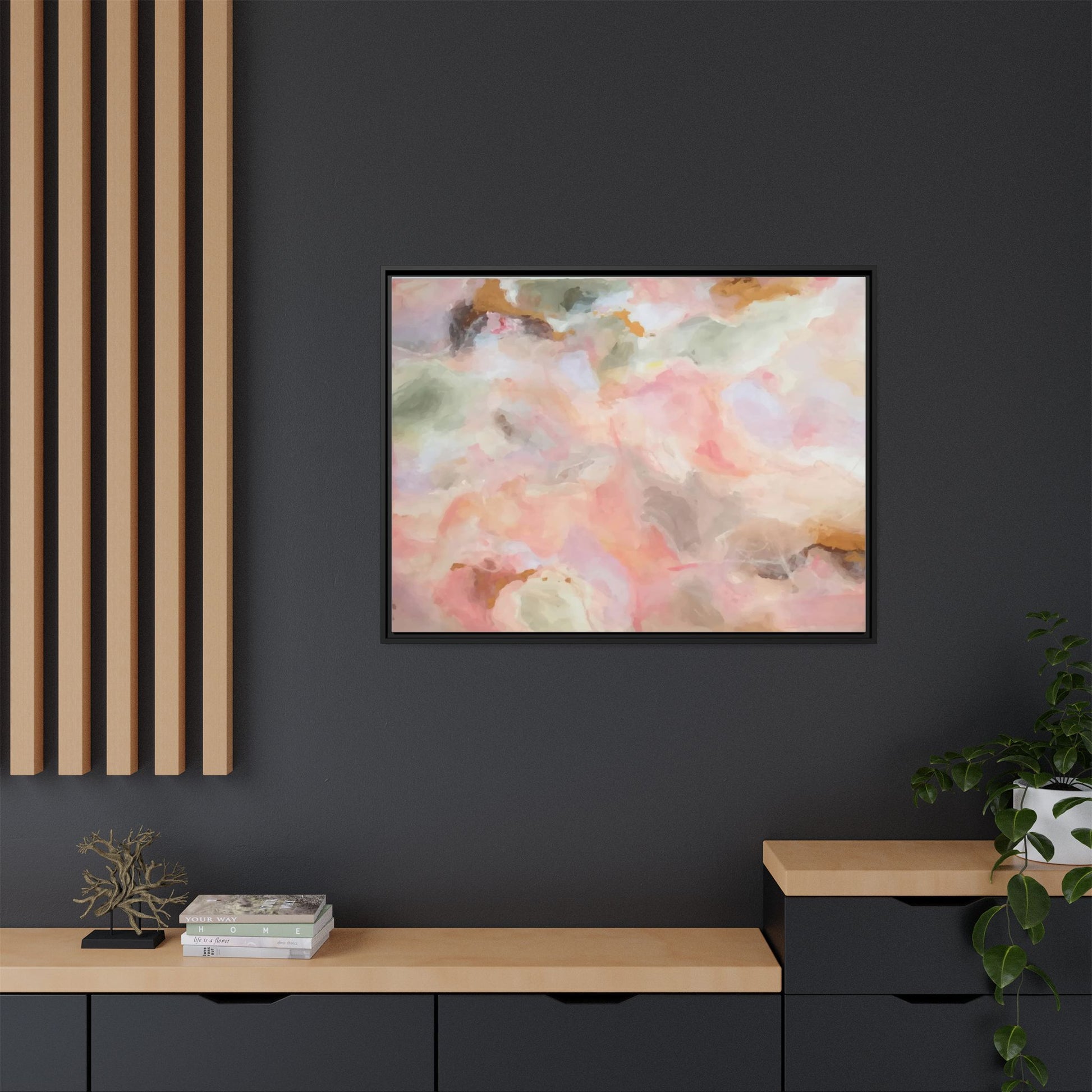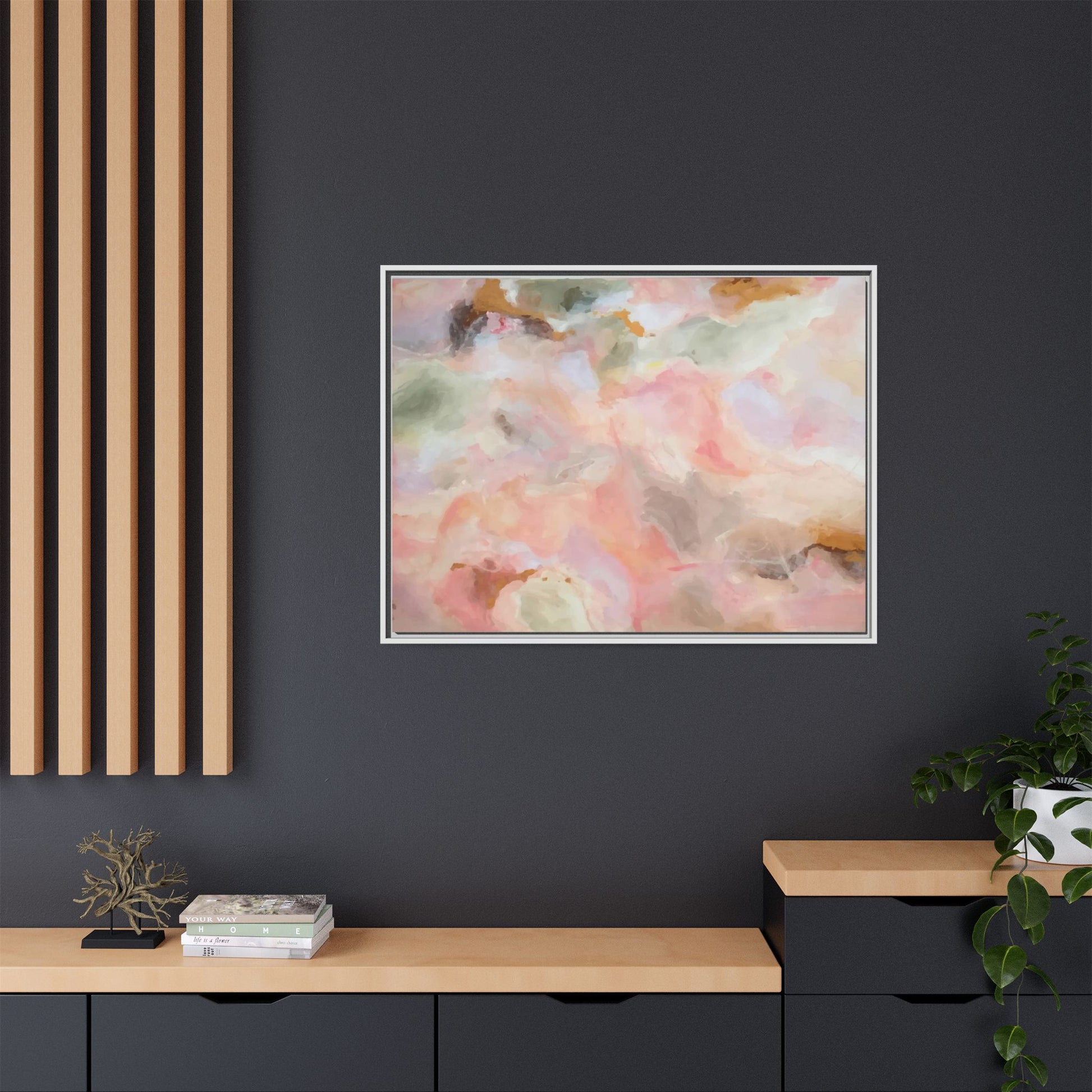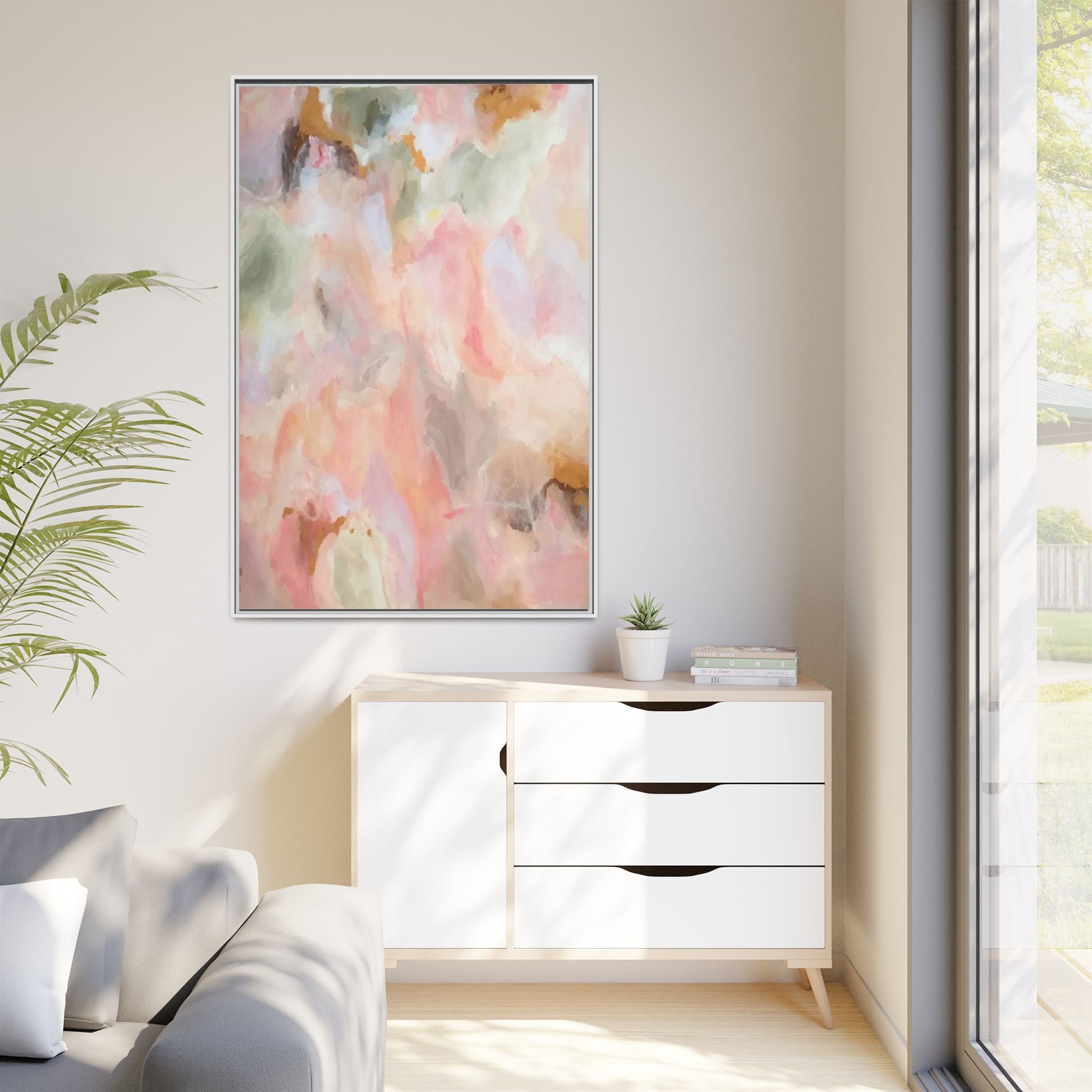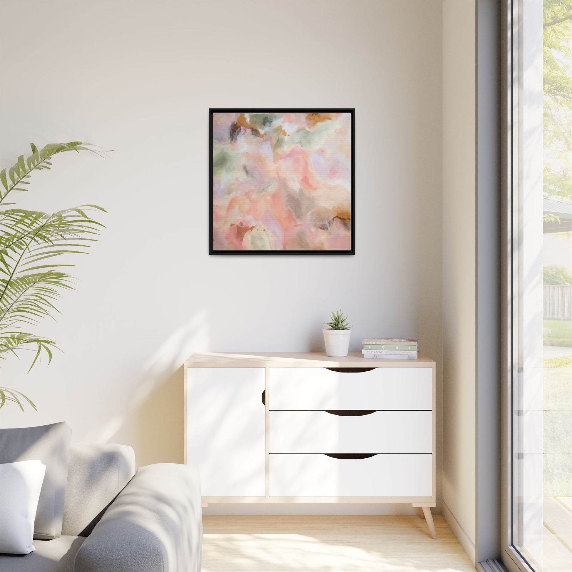 This ethereal abstract artwork showcases a delicate watercolor-style composition featuring soft, blended colors reminiscent of a dreamy cloudscape. The palette is predominantly composed of muted pinks, gentle greens, warm yellows, and subtle grays, creating a harmonious and soothing visual experience. Fluid brush strokes and translucent layers give the image a sense of depth and movement, with colors bleeding and blending into each other in organic, cloud-like formations. The painting appears to have a watercolor or digital painting technique, with edges that are soft and undefined, allowing colors to merge and create subtle transitions. The overall effect is calming and contemplative, evoking the sensation of gazing into a pastel-tinted sky or a abstract landscape viewed through a soft, diffused lens.