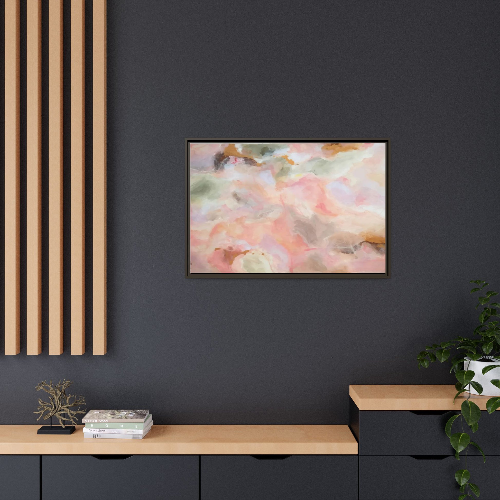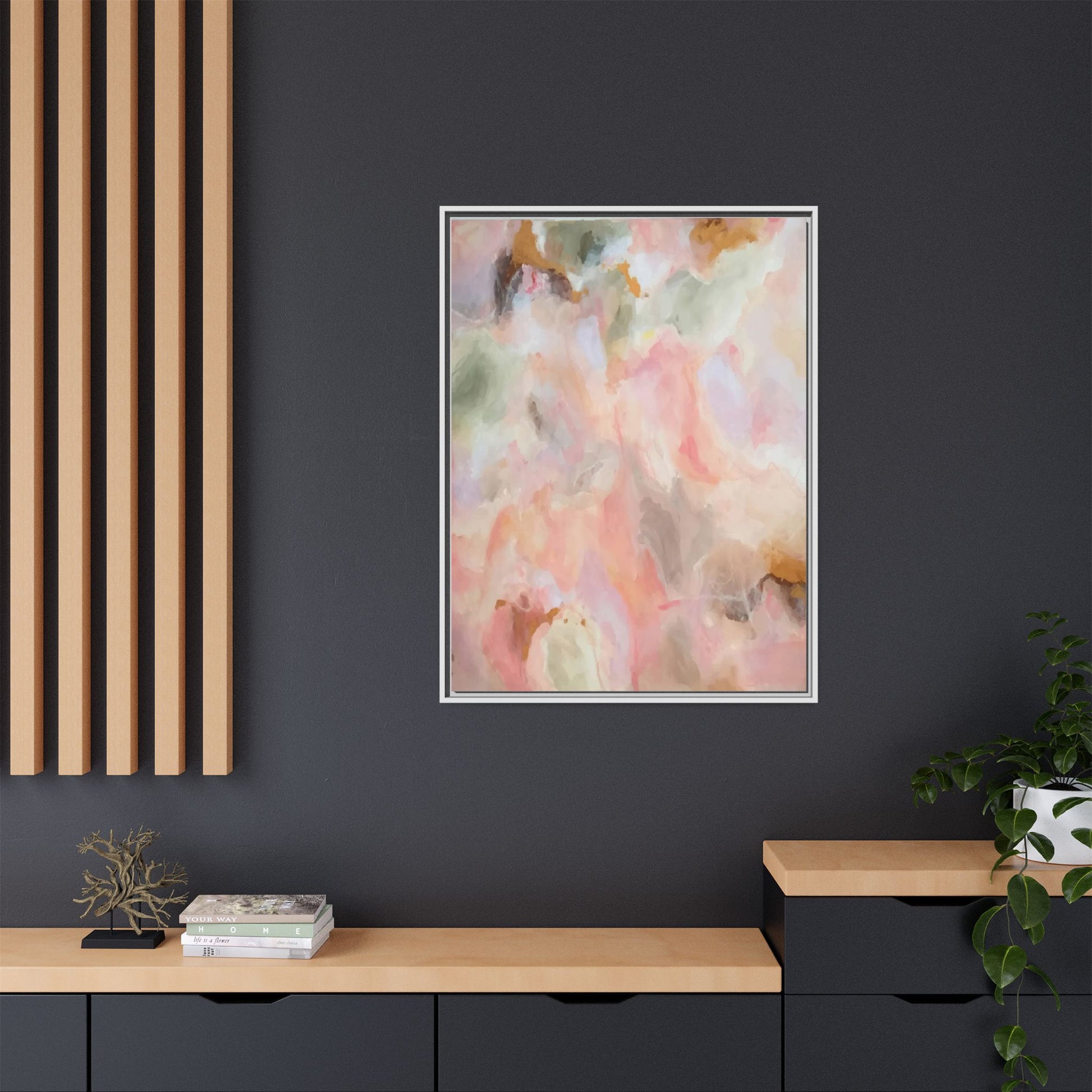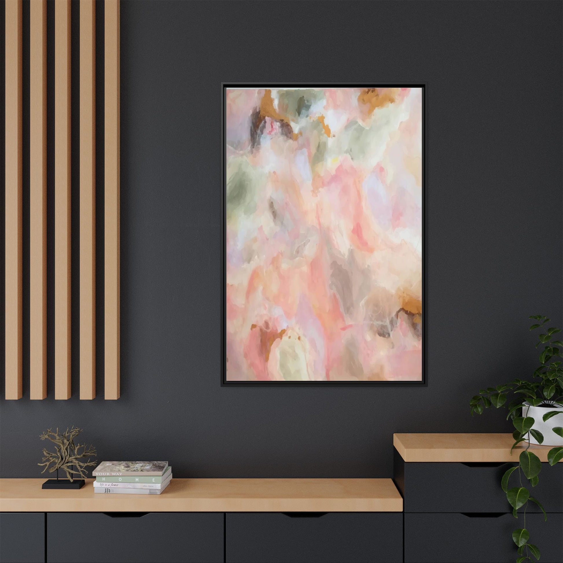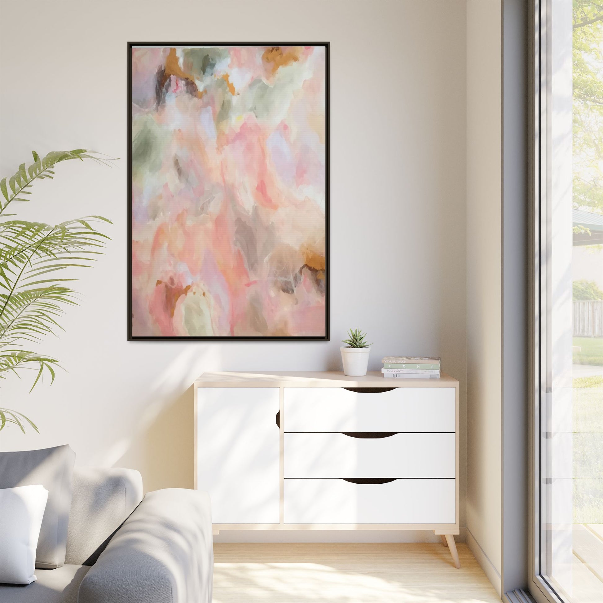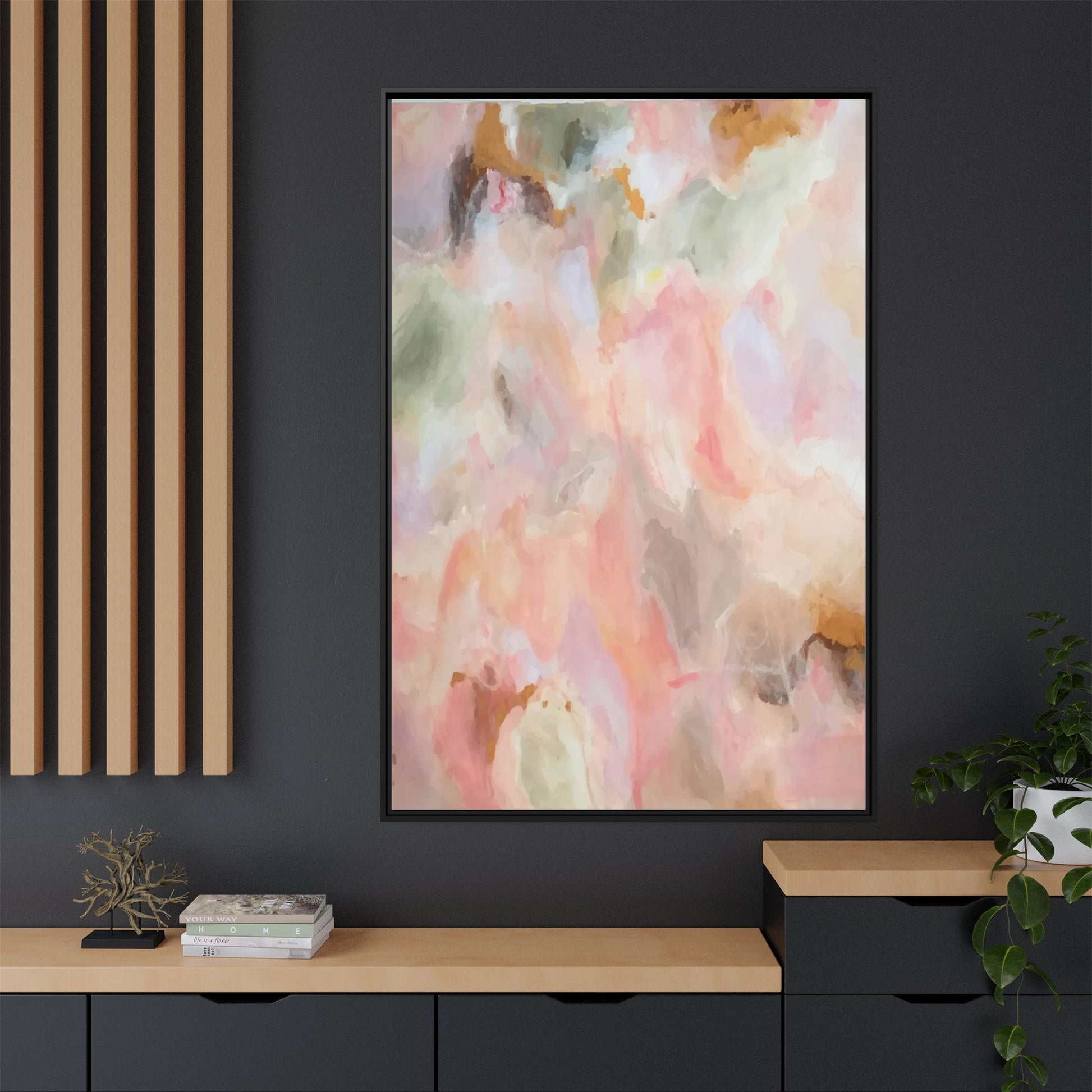 This ethereal abstract artwork showcases a delicate watercolor-style composition featuring soft, blended colors reminiscent of a dreamy cloudscape. The palette is predominantly composed of muted pinks, gentle greens, warm yellows, and subtle grays, creating a harmonious and soothing visual experience. Fluid brush strokes and translucent layers give the image a sense of depth and movement, with colors bleeding and blending into each other in organic, cloud-like formations. The painting appears to have a watercolor or digital painting technique, with edges that are soft and undefined, allowing colors to merge and create subtle transitions. The overall effect is calming and contemplative, evoking the sensation of gazing into a pastel-tinted sky or a abstract landscape viewed through a soft, diffused lens.