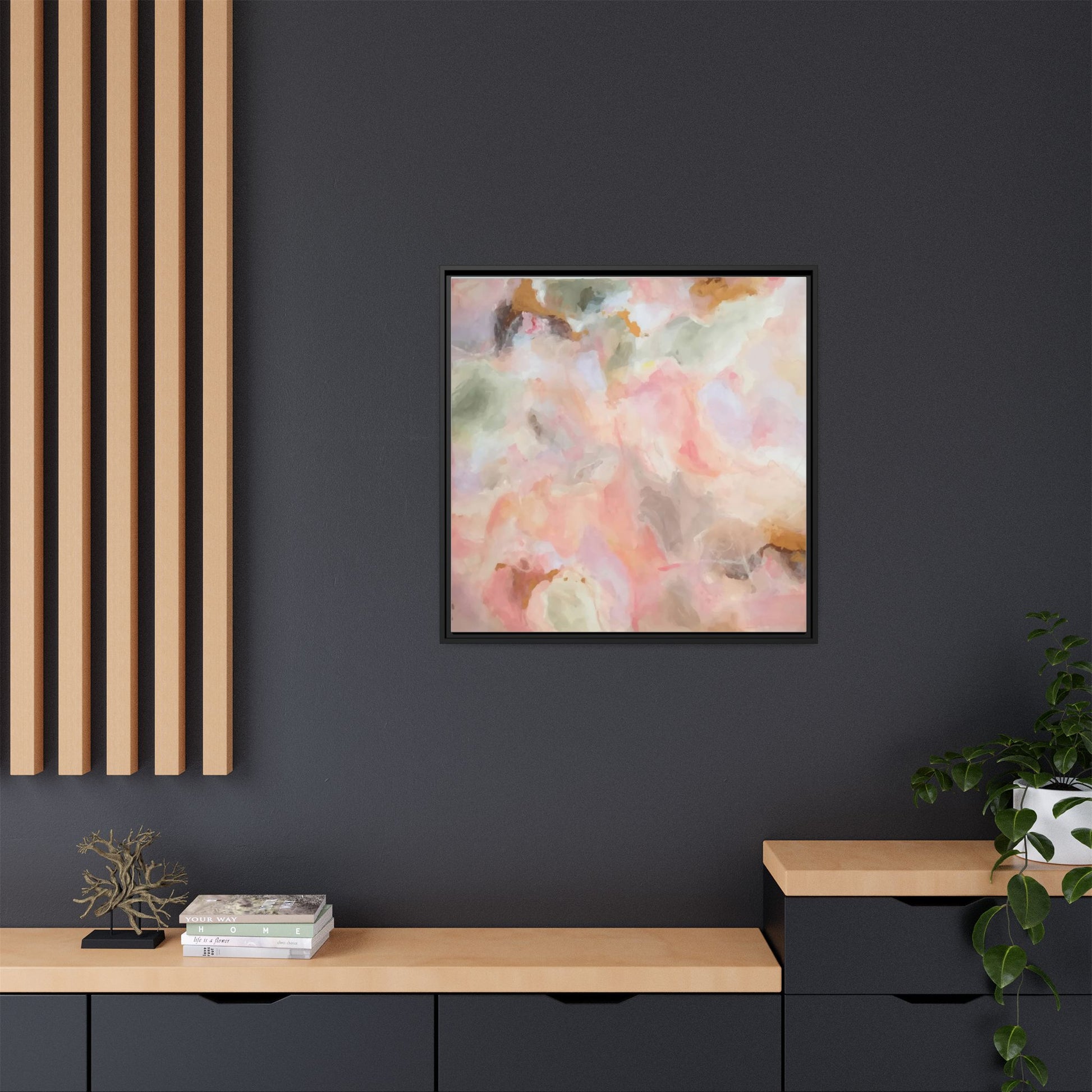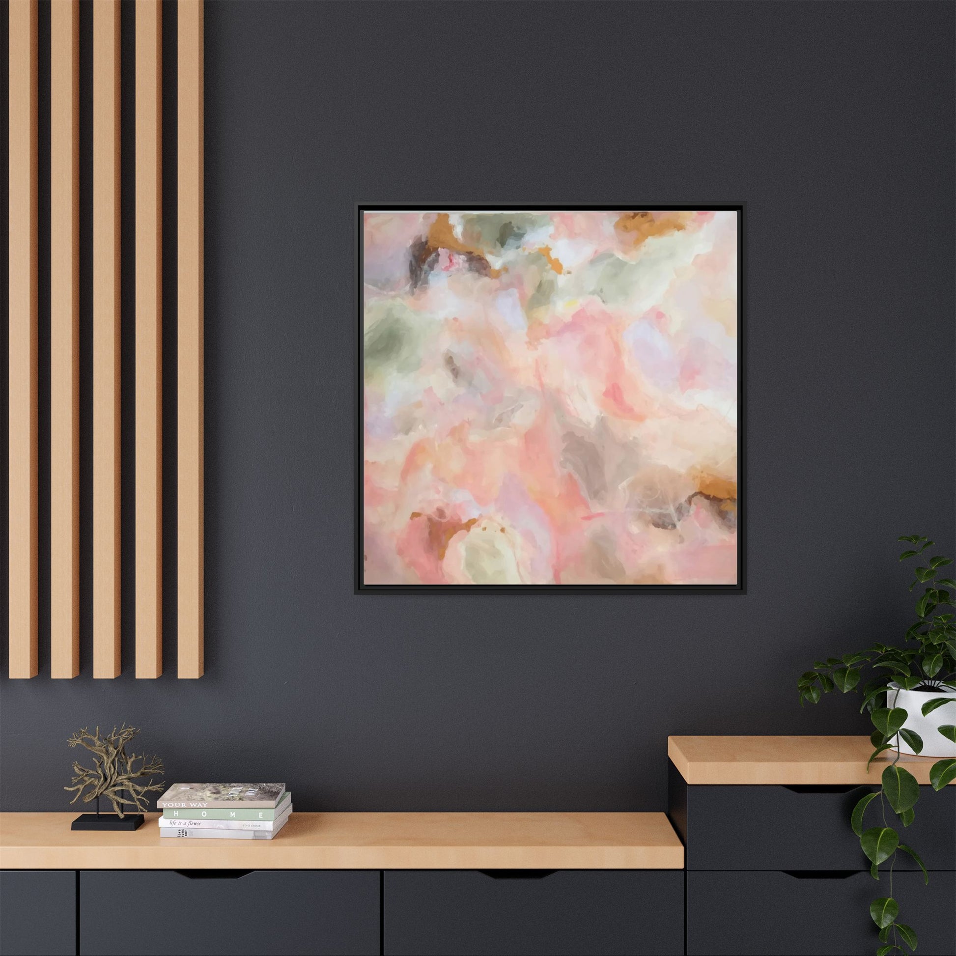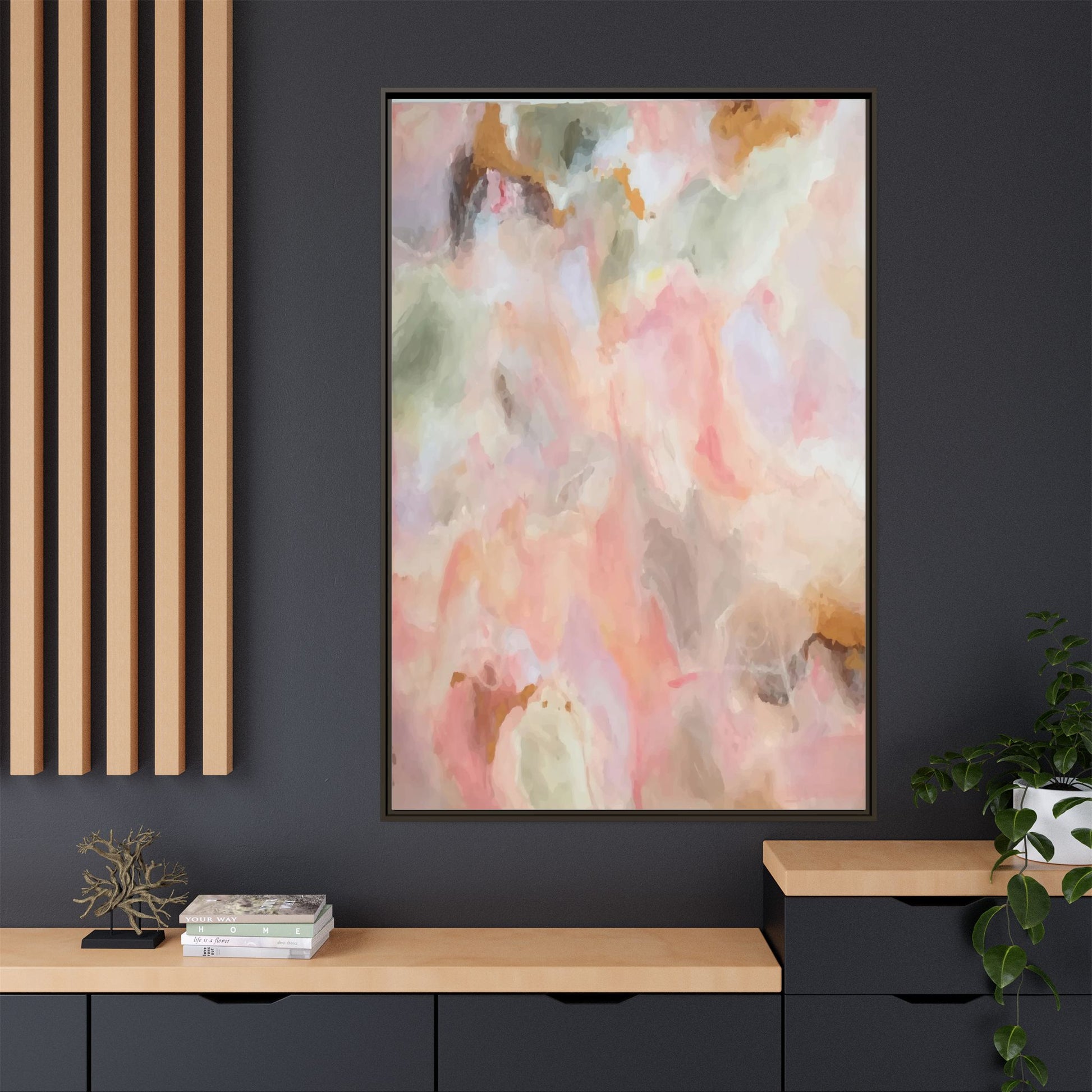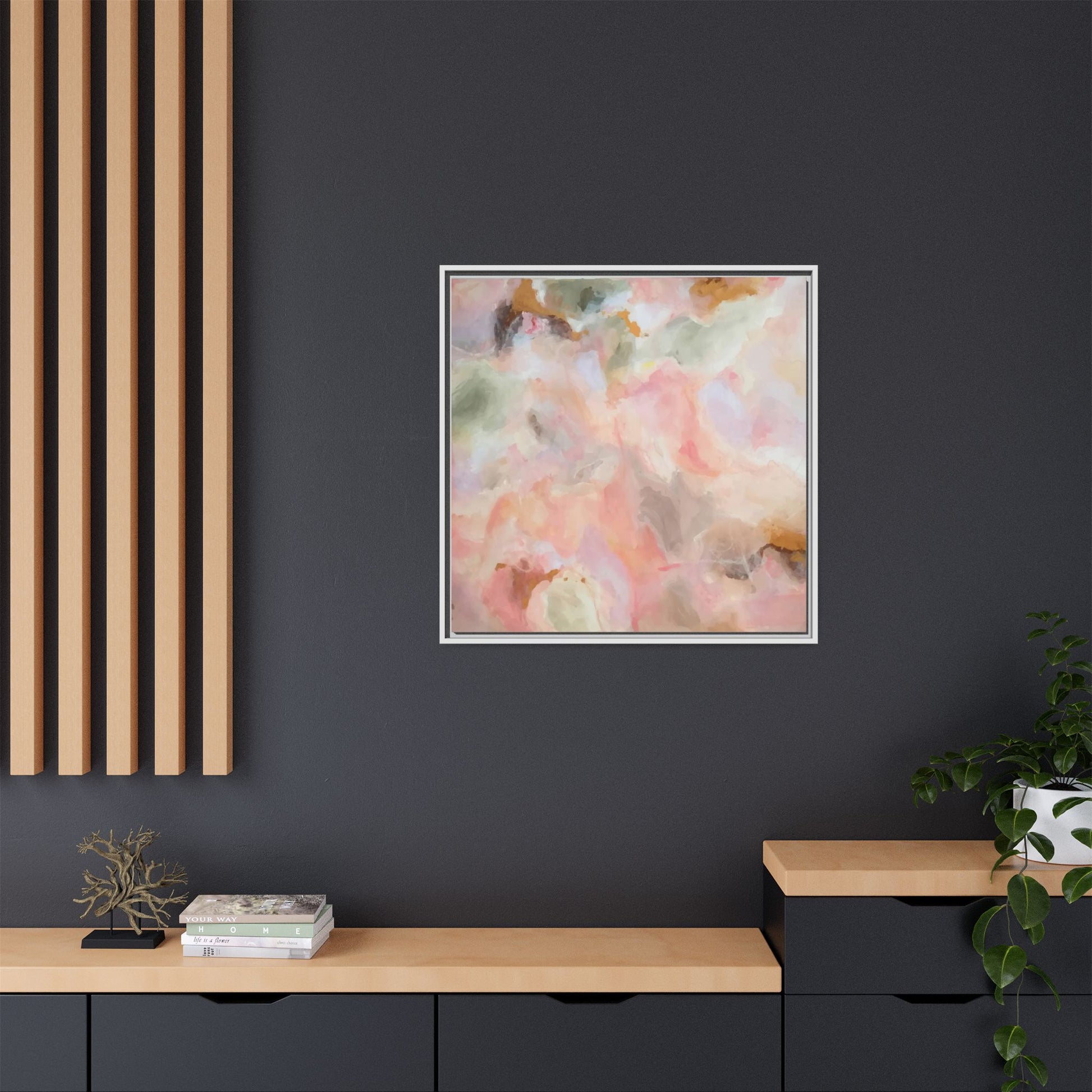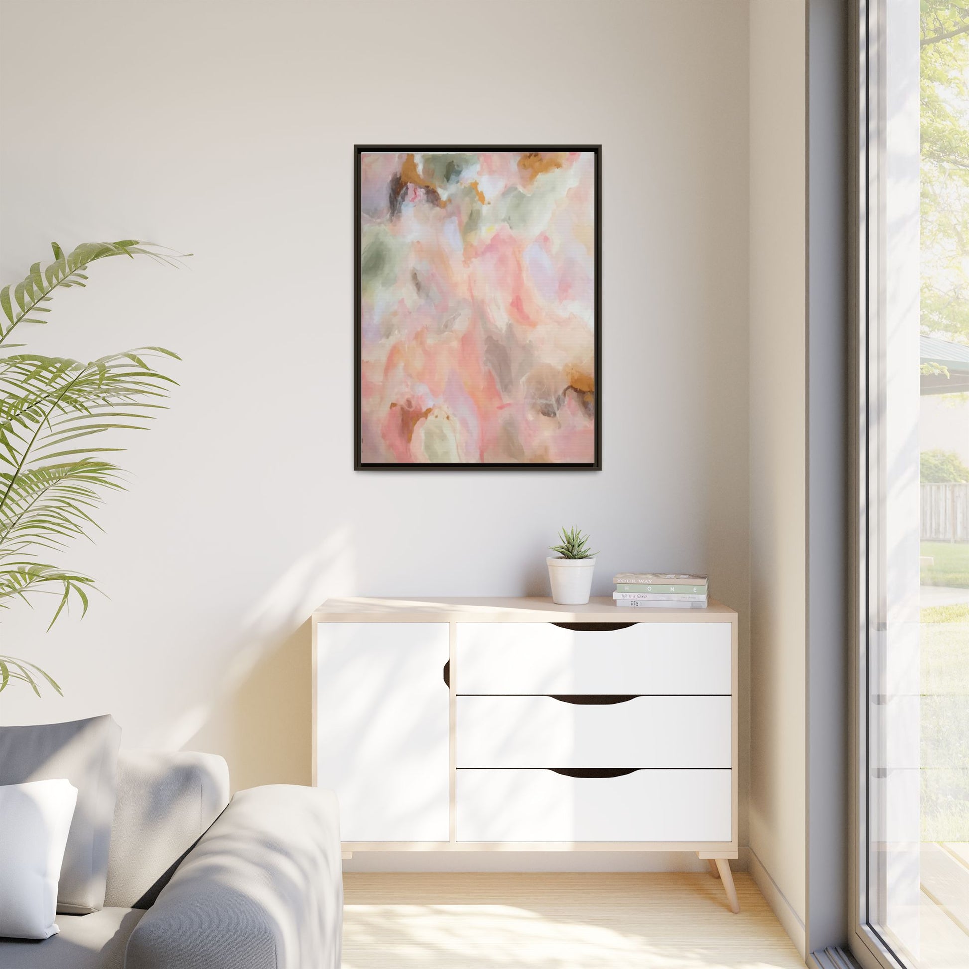 This ethereal abstract artwork showcases a delicate watercolor-style composition featuring soft, blended colors reminiscent of a dreamy cloudscape. The palette is predominantly composed of muted pinks, gentle greens, warm yellows, and subtle grays, creating a harmonious and soothing visual experience. Fluid brush strokes and translucent layers give the image a sense of depth and movement, with colors bleeding and blending into each other in organic, cloud-like formations. The painting appears to have a watercolor or digital painting technique, with edges that are soft and undefined, allowing colors to merge and create subtle transitions. The overall effect is calming and contemplative, evoking the sensation of gazing into a pastel-tinted sky or a abstract landscape viewed through a soft, diffused lens.