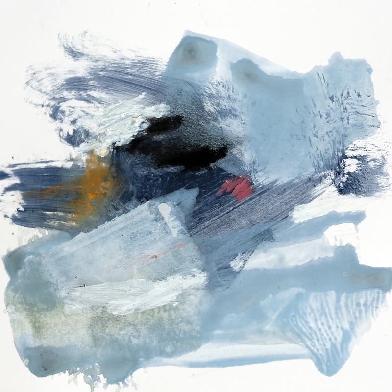 A dynamic interplay of sweeping brushstrokes and contrasting hues, creating an abstract landscape where intensity meets calm, like a storm fading to serenity.