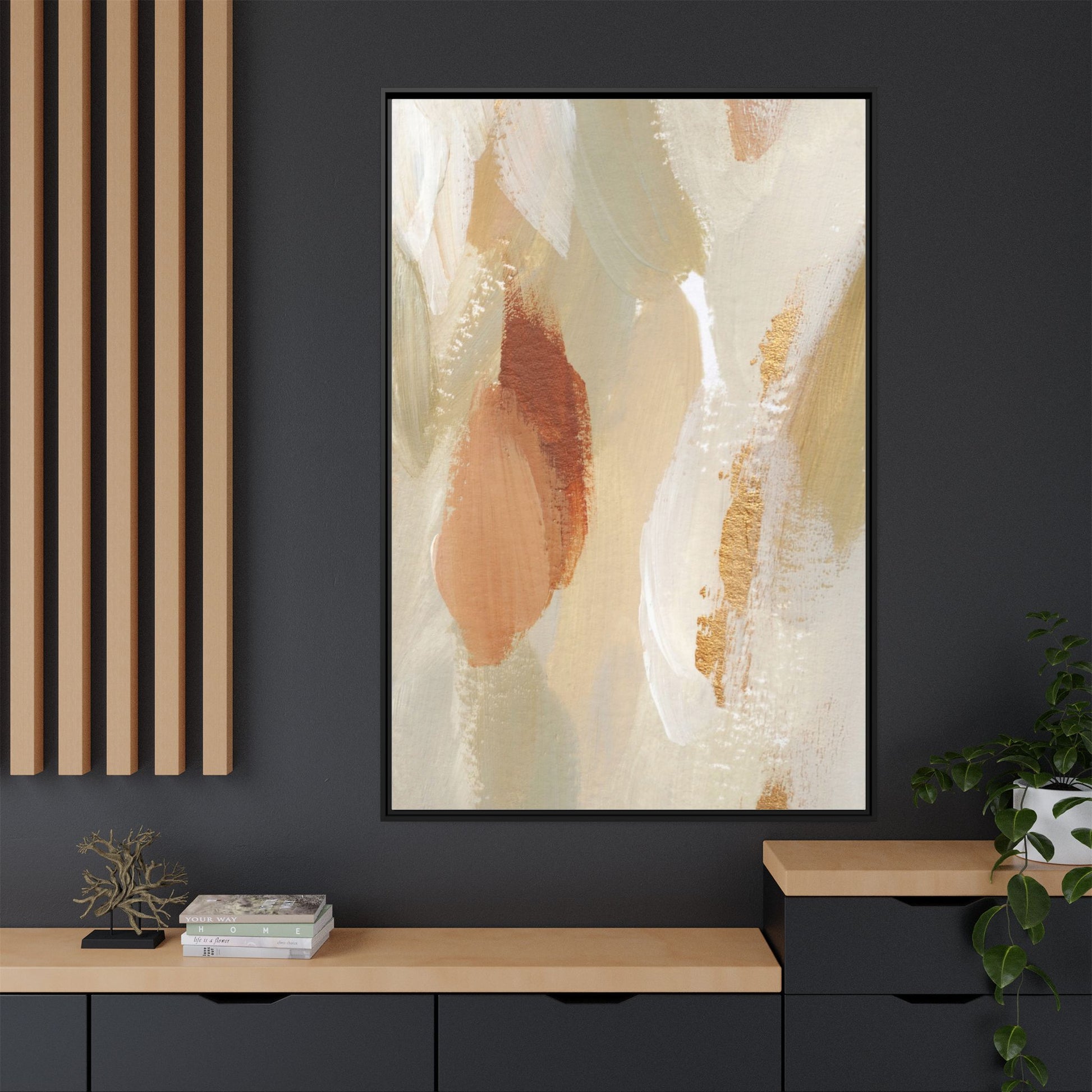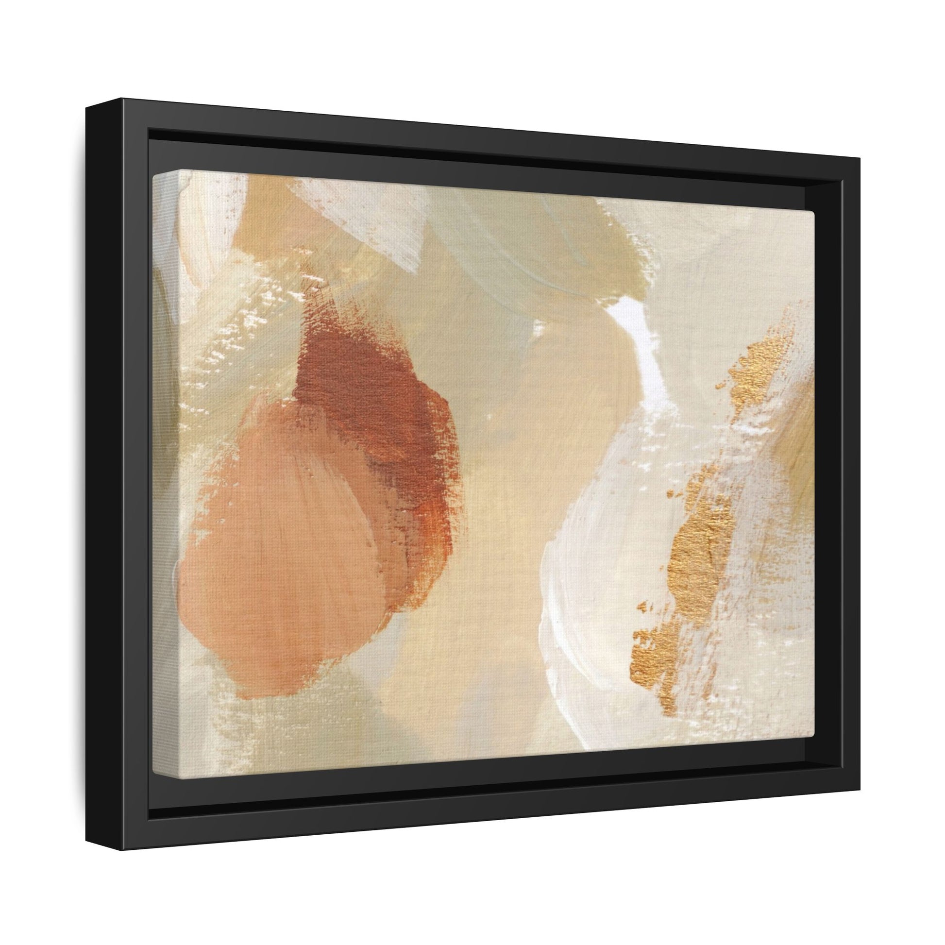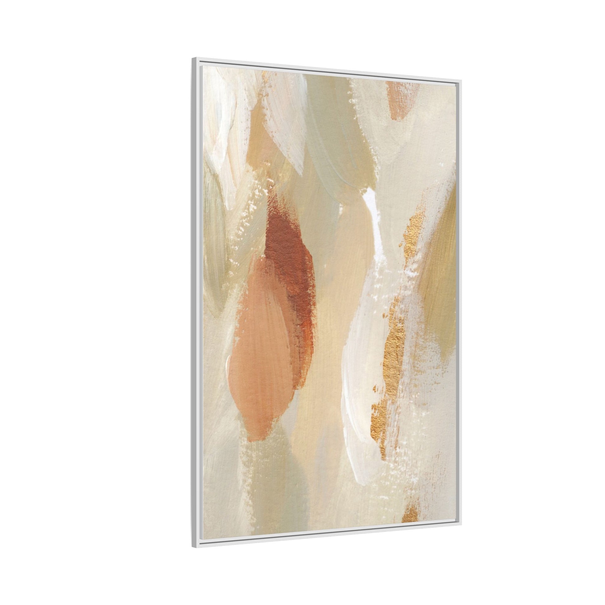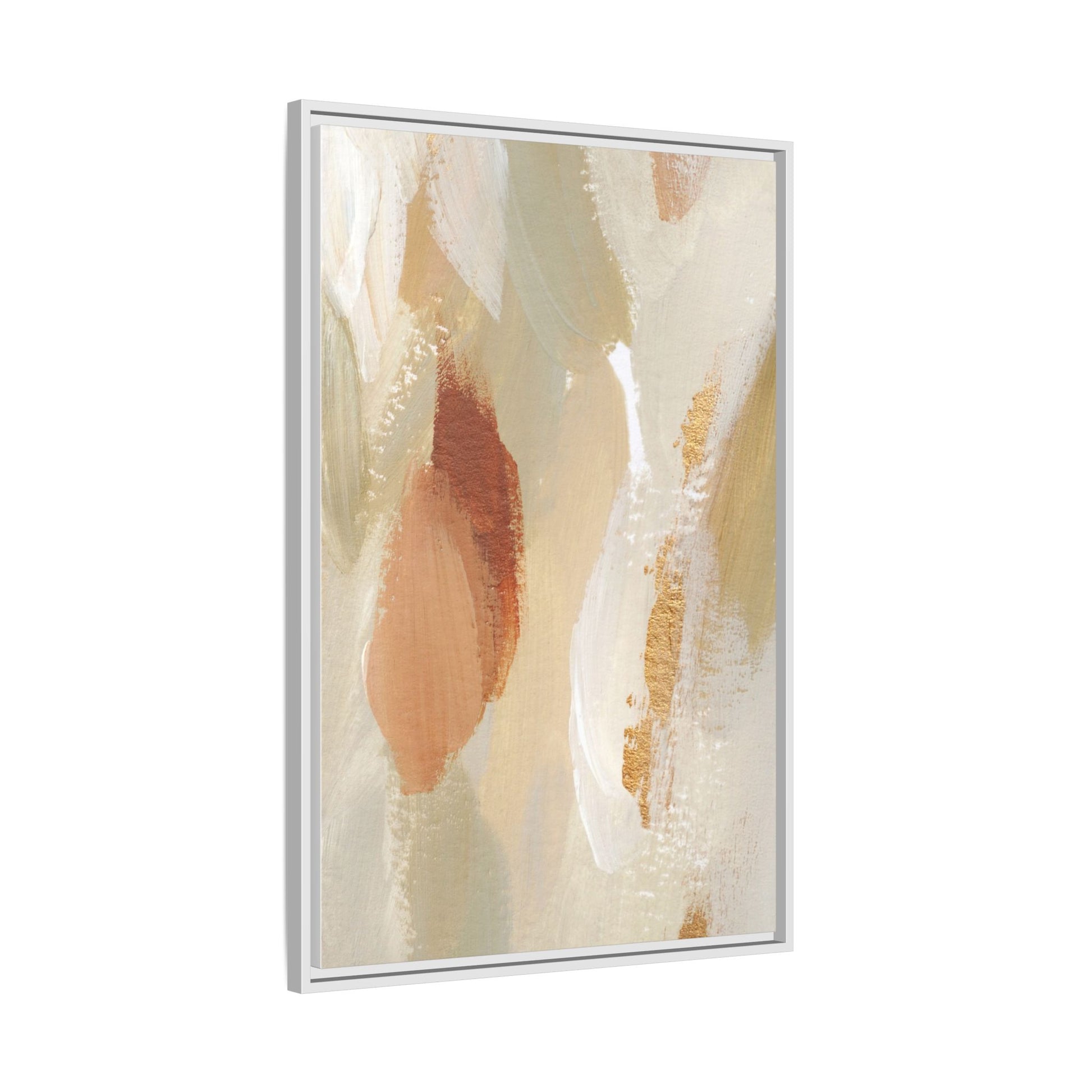 This abstract painting showcases a delicate composition of soft, organic shapes in muted earth tones. Warm peach, rust, cream, and golden hues blend seamlessly across the canvas, creating a gentle and ethereal landscape of color. The brushstrokes appear fluid and textured, with layers of paint creating depth and subtle variations in tone. Soft, blended edges give the artwork a dreamy and contemplative quality, reminiscent of natural forms like petals or clouds. The overall effect is a serene and harmonious abstract piece that invites viewers to explore its nuanced color palette and subtle textural details.