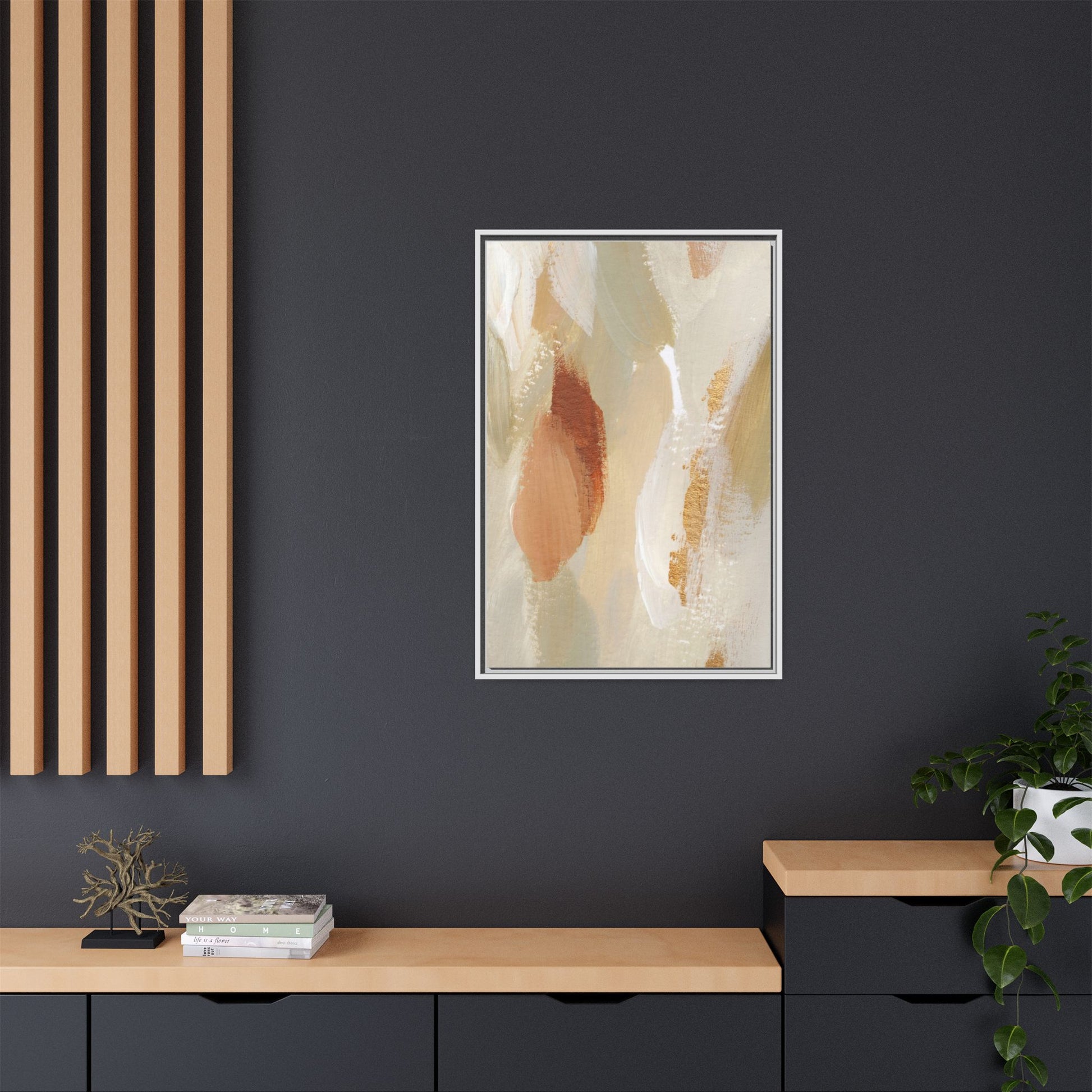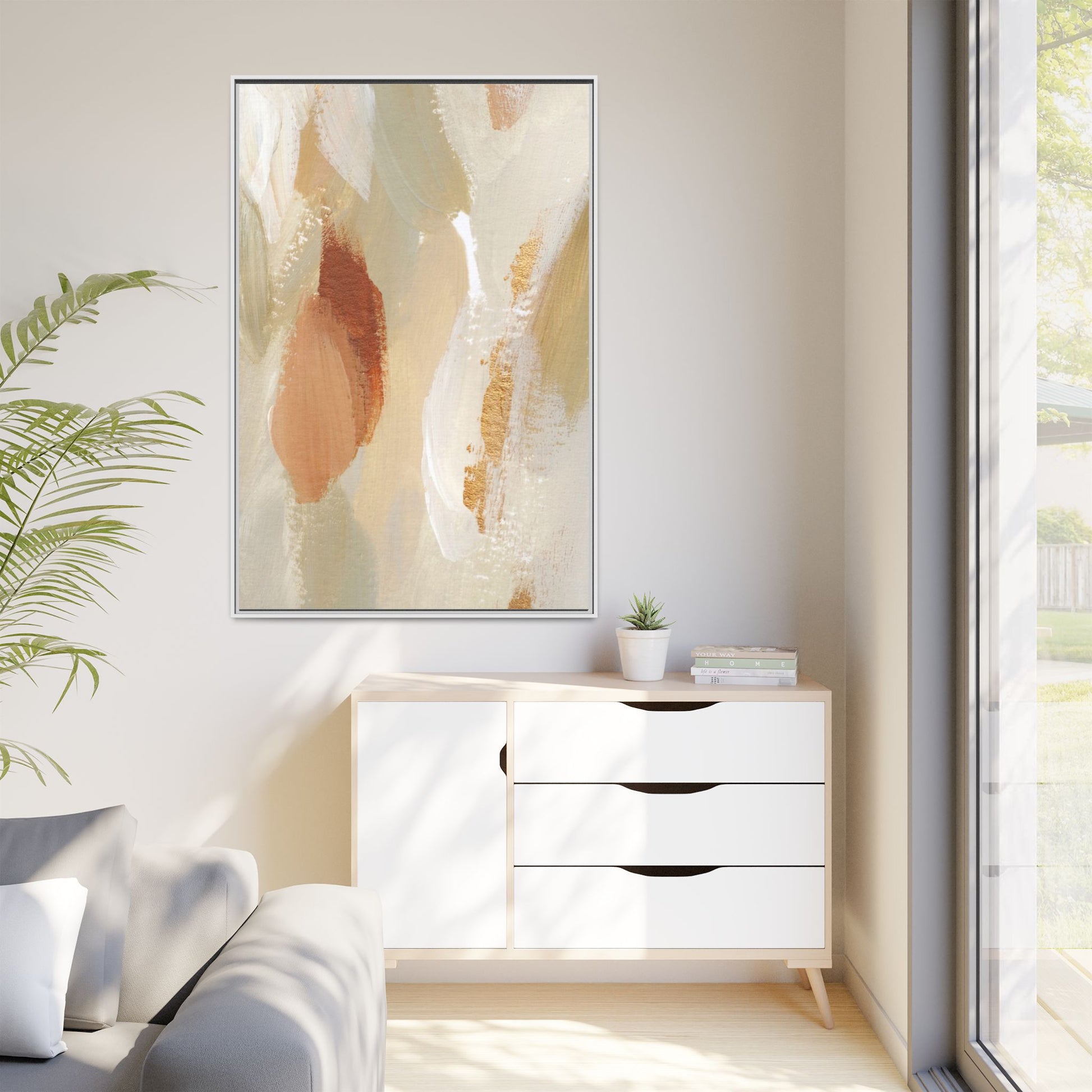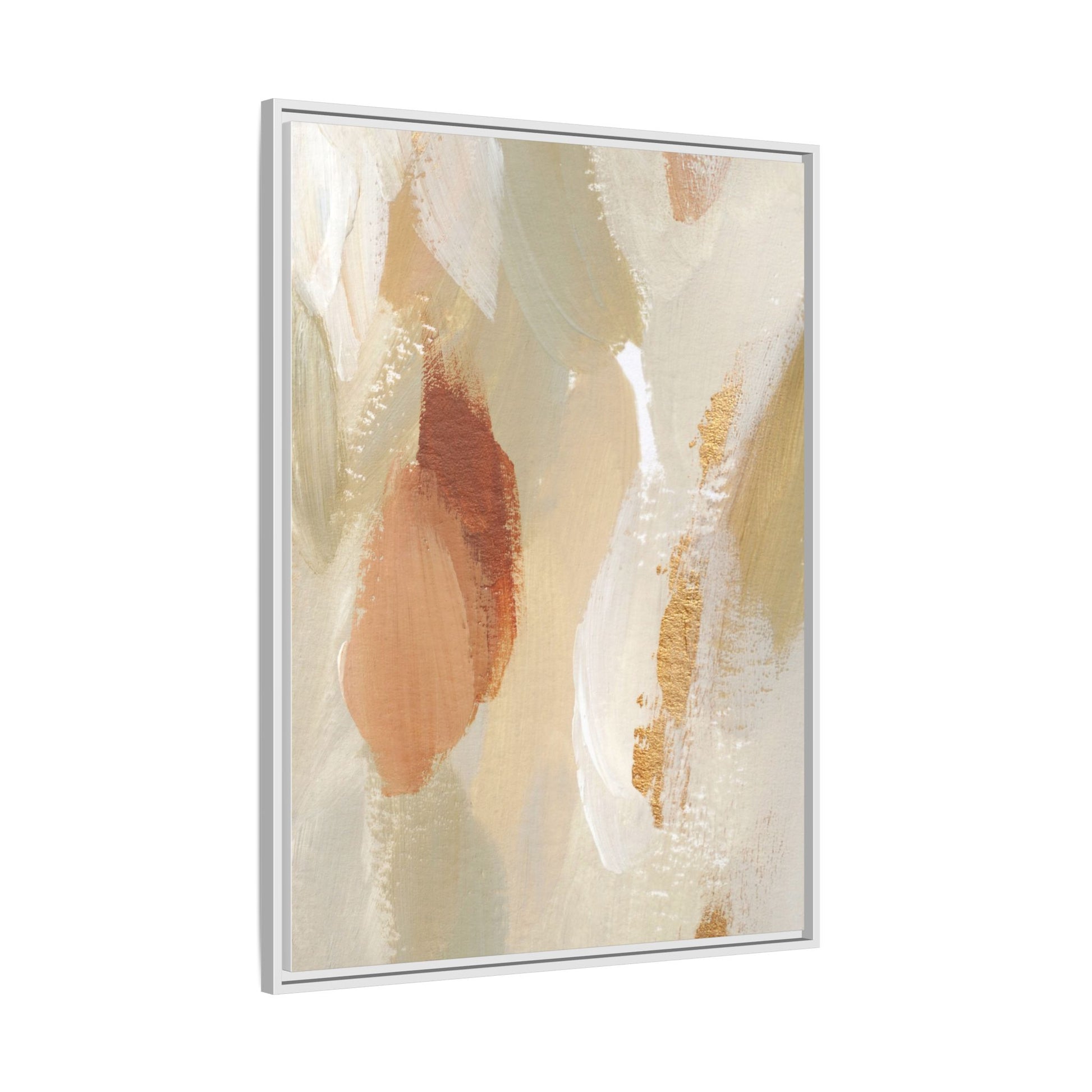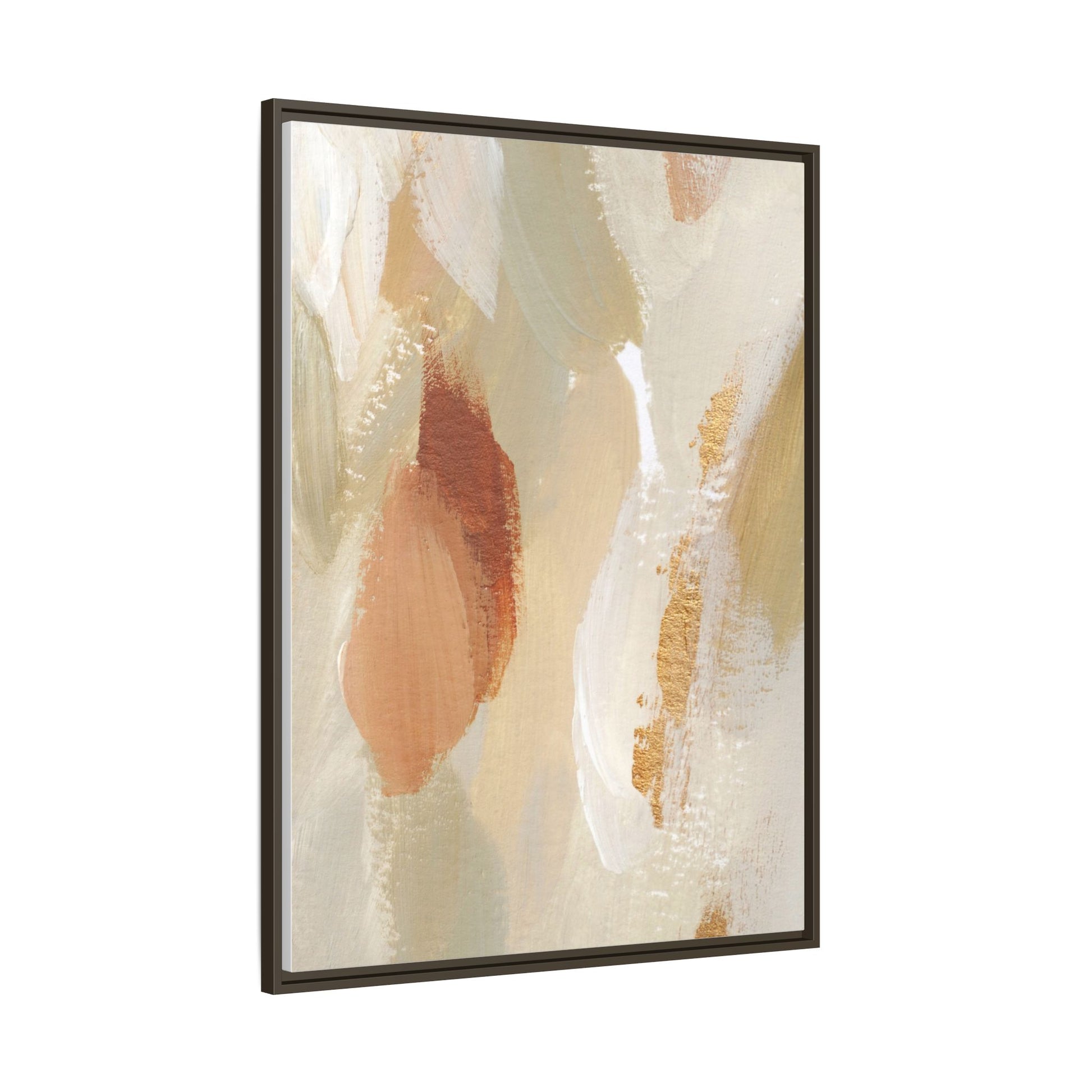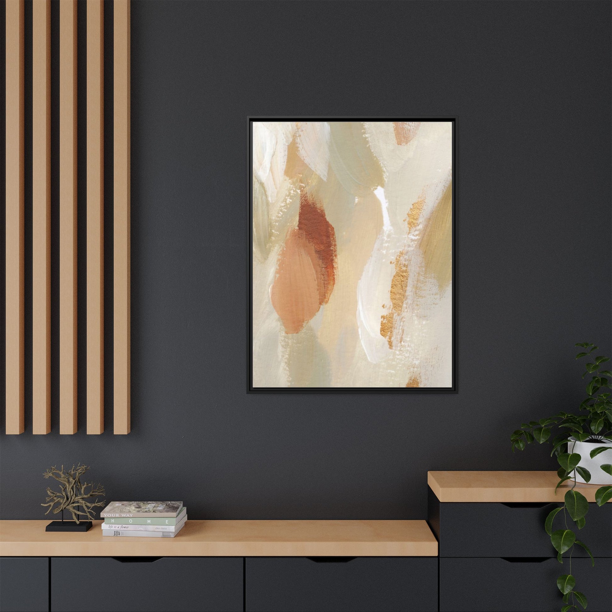 This abstract painting showcases a delicate composition of soft, organic shapes in muted earth tones. Warm peach, rust, cream, and golden hues blend seamlessly across the canvas, creating a gentle and ethereal landscape of color. The brushstrokes appear fluid and textured, with layers of paint creating depth and subtle variations in tone. Soft, blended edges give the artwork a dreamy and contemplative quality, reminiscent of natural forms like petals or clouds. The overall effect is a serene and harmonious abstract piece that invites viewers to explore its nuanced color palette and subtle textural details.