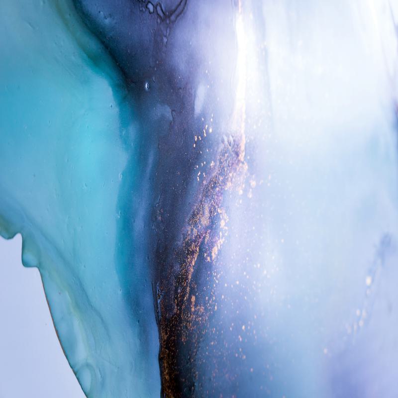 A swirling convergence of ethereal blues and deep shadows, veined with glimmers of golden light, creating a sense of vast, flowing energy and mysterious depth.