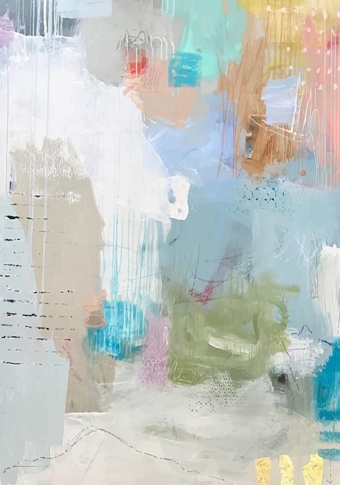 A serene interplay of muted colors and abstract forms evokes a distant, dreamlike landscape, where boundaries blur into a soothing expanse.