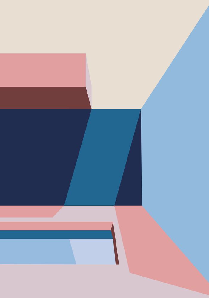 Angular forms intersect with soft hues, creating a rhythmic dance of structure and serenity.