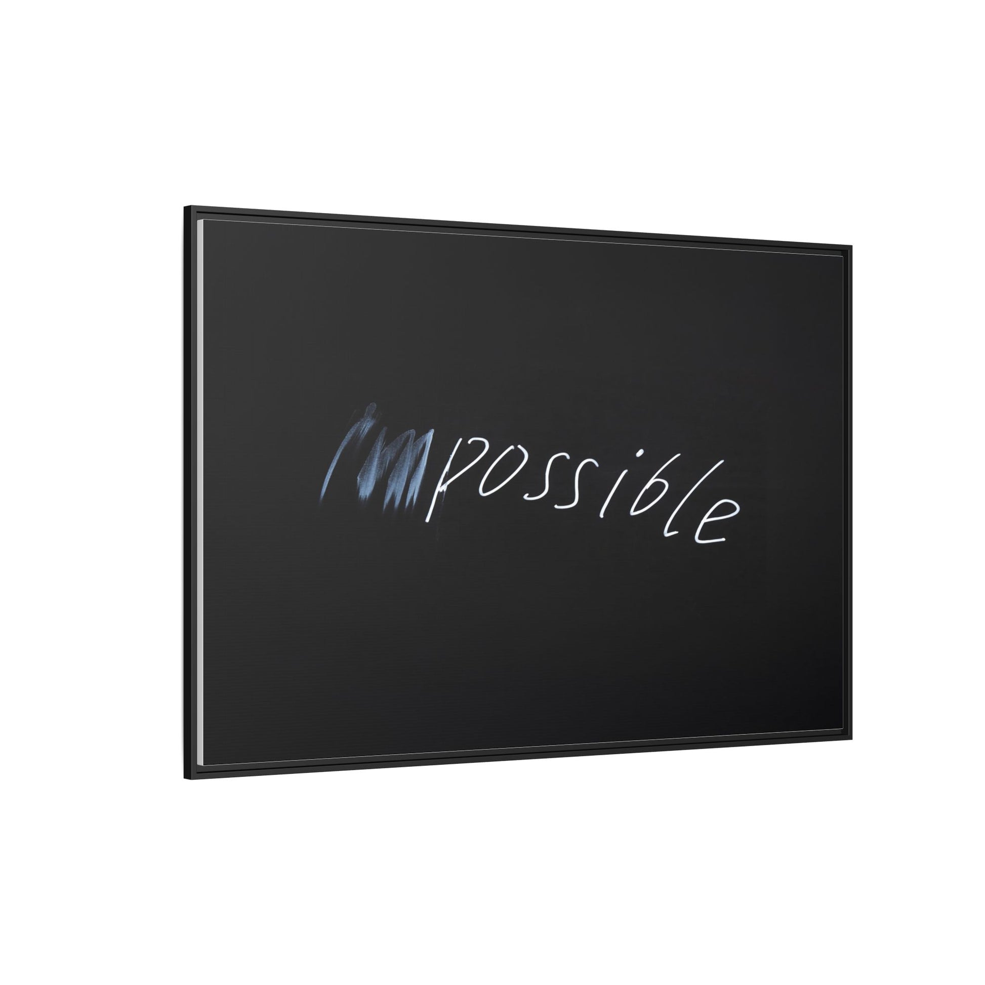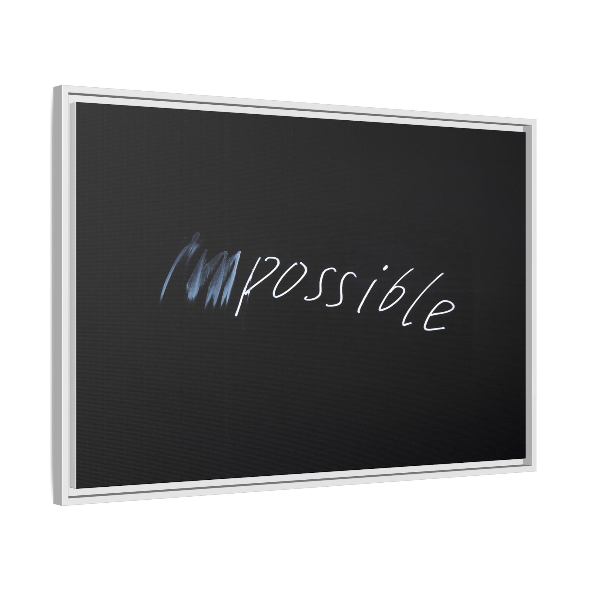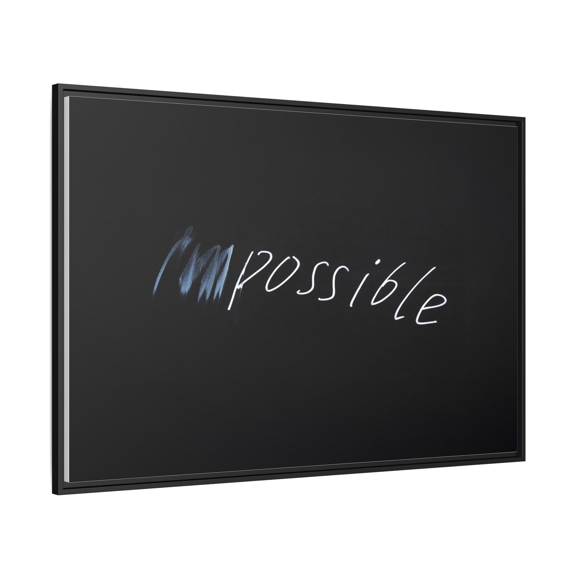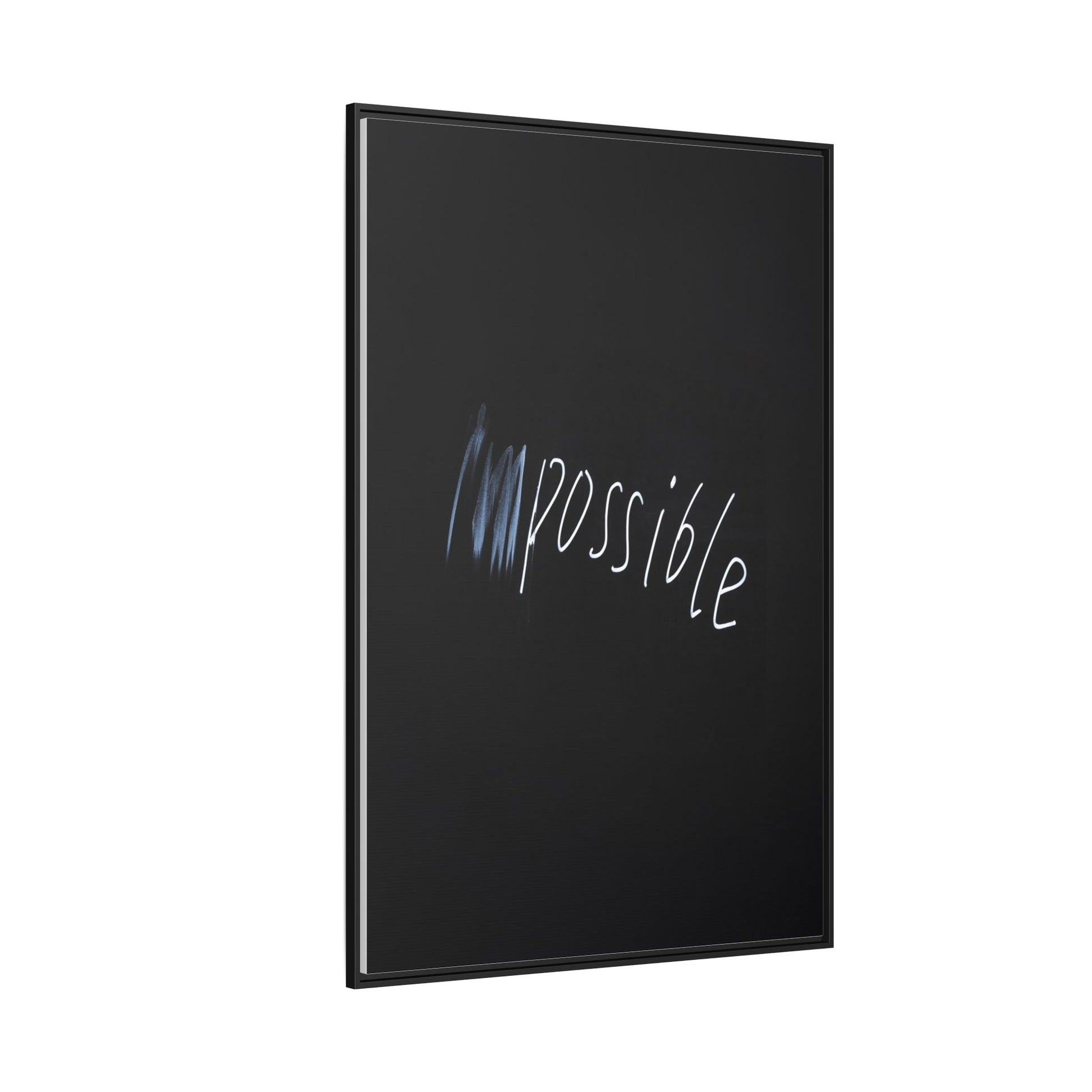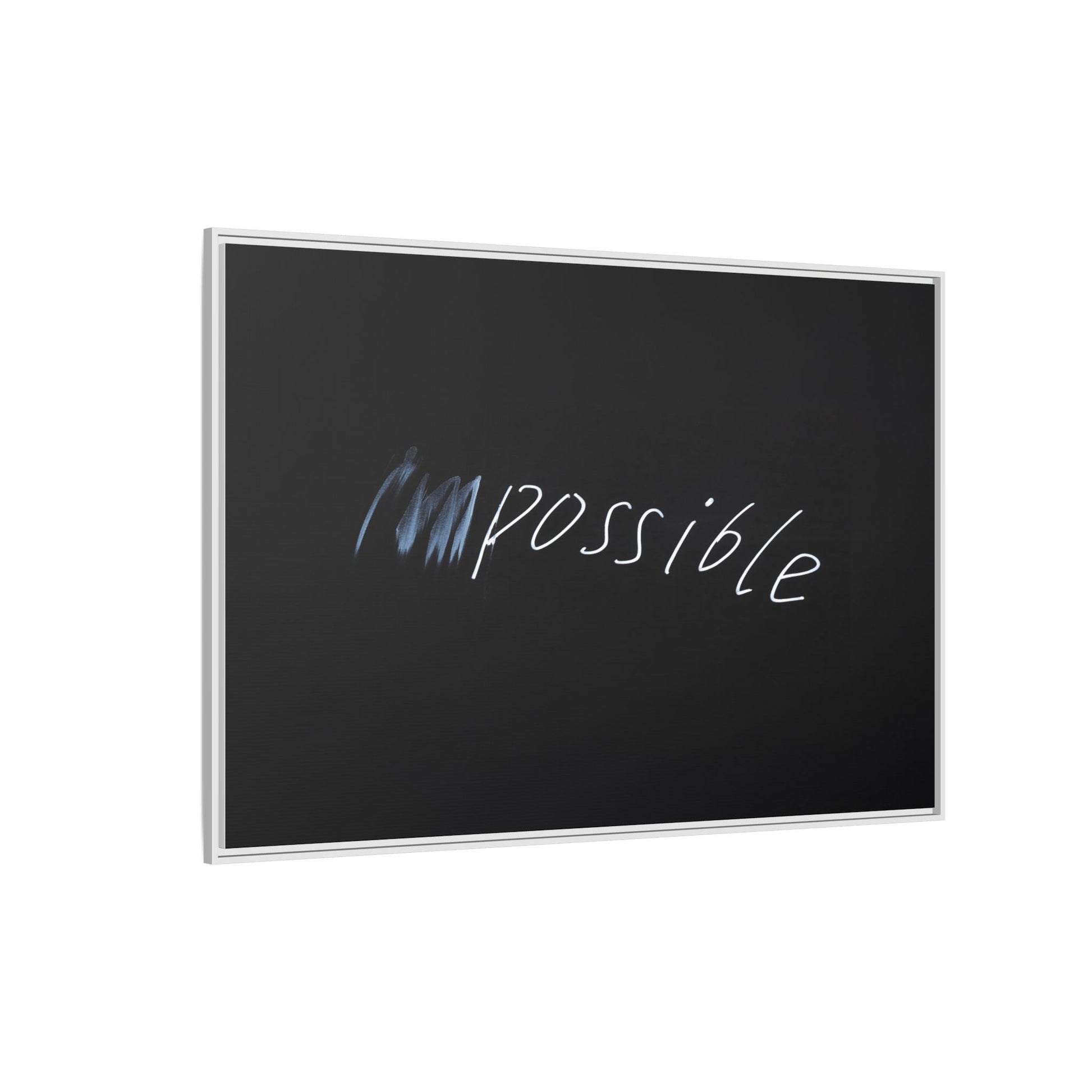 This striking image depicts the word "Impossible" written in white, luminescent lettering against a deep black background. The text appears to be hand-drawn with a glowing effect, creating a sense of dynamism and movement. The first part of the word seems to be slightly blurred or smeared, giving an impression of transformation or breaking through barriers. The high-contrast design emphasizes the visual impact of the word, making it stand out dramatically against the dark backdrop. The overall aesthetic suggests a conceptual or motivational theme, hinting at overcoming limitations and challenging perceived boundaries.
