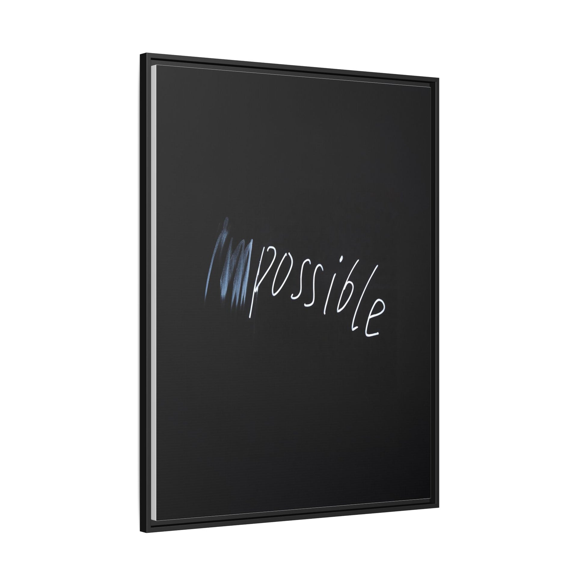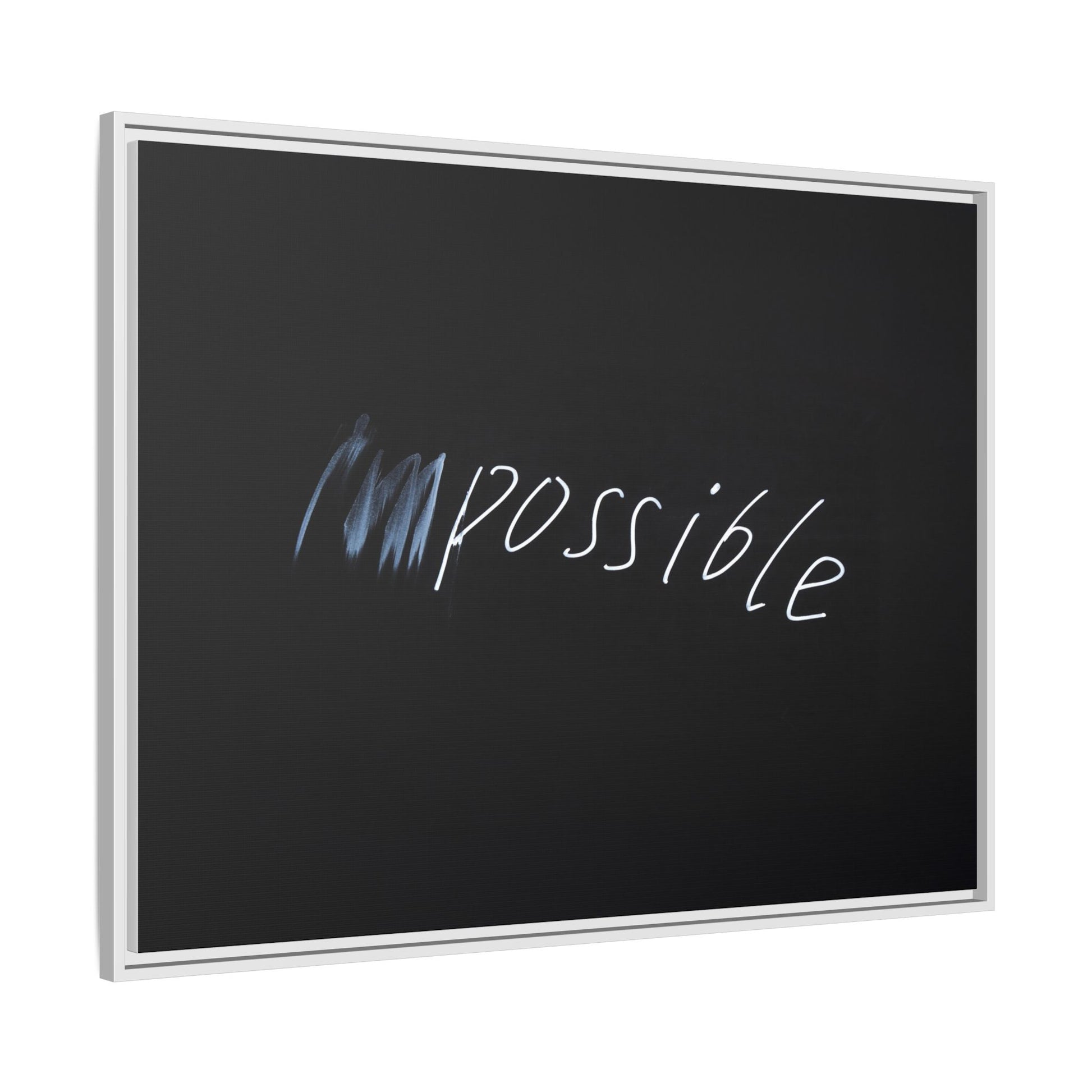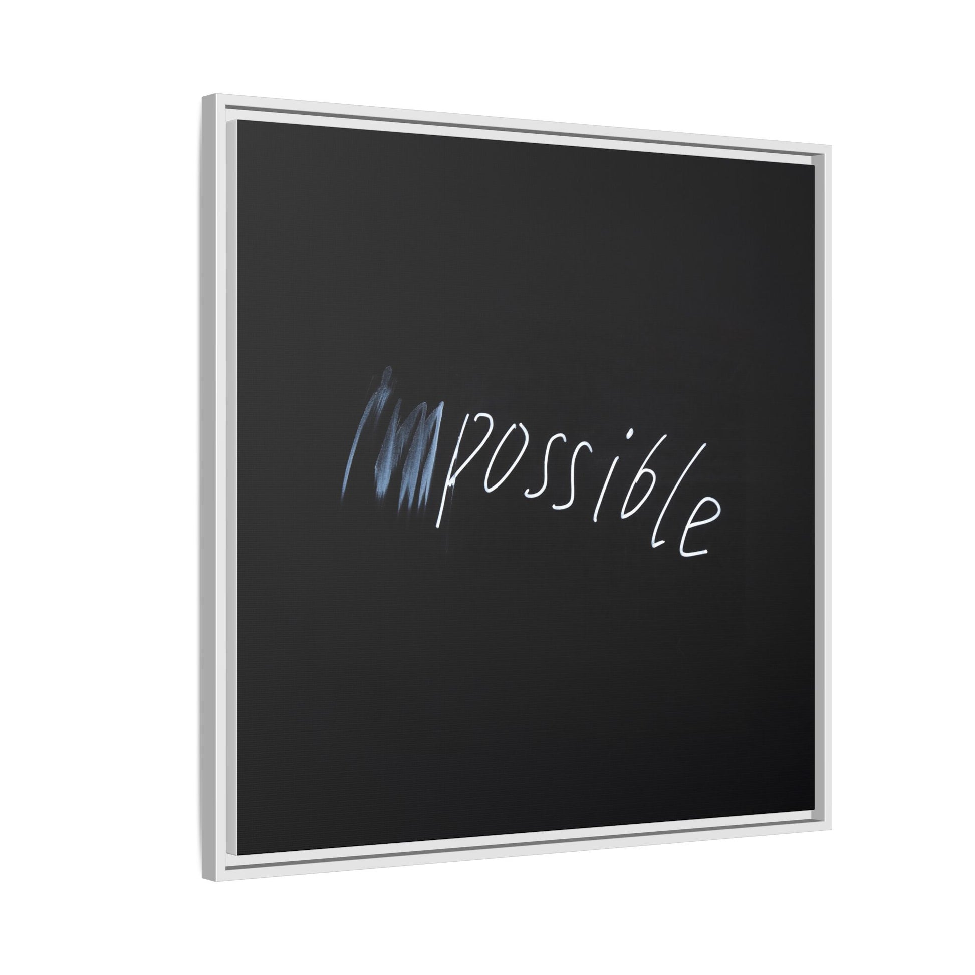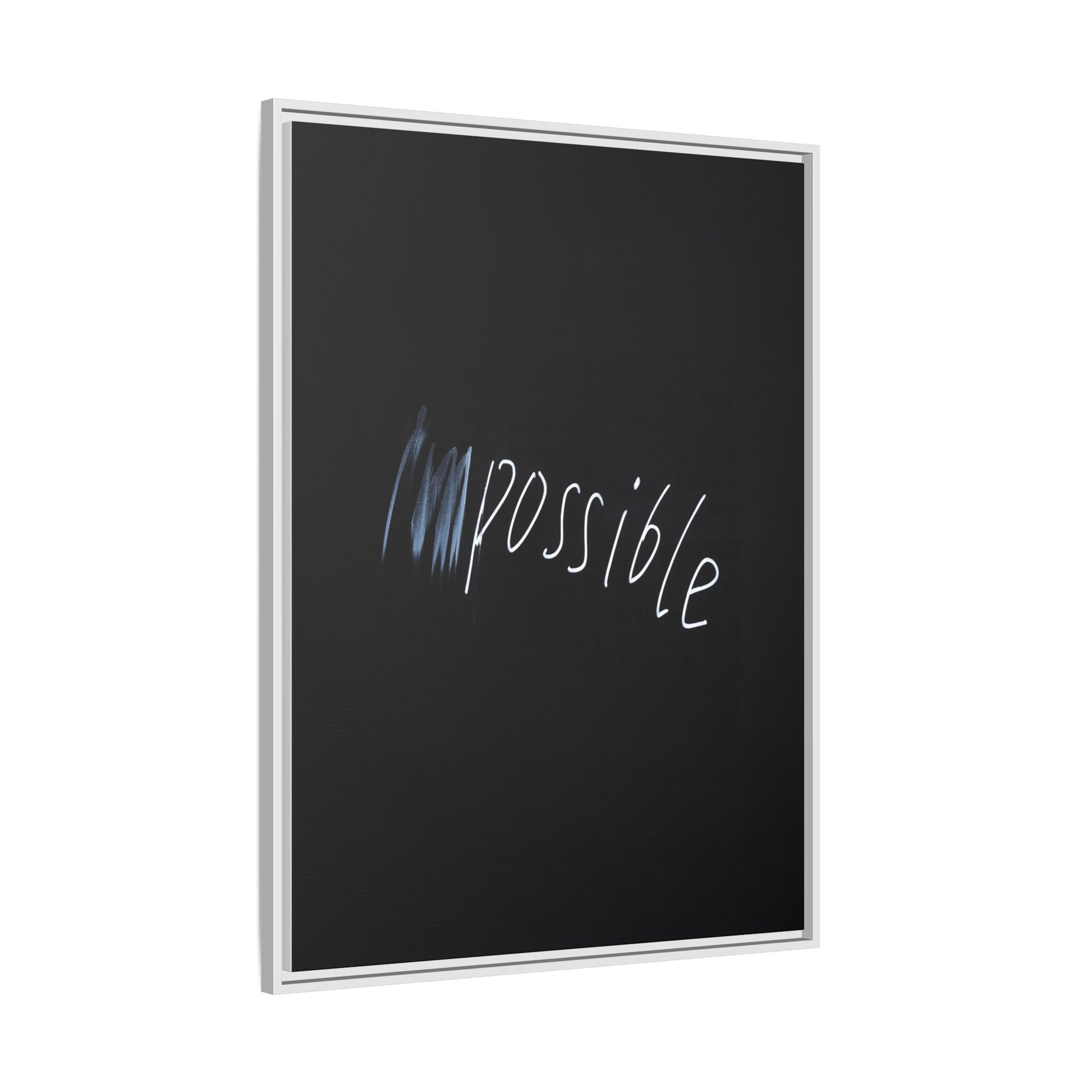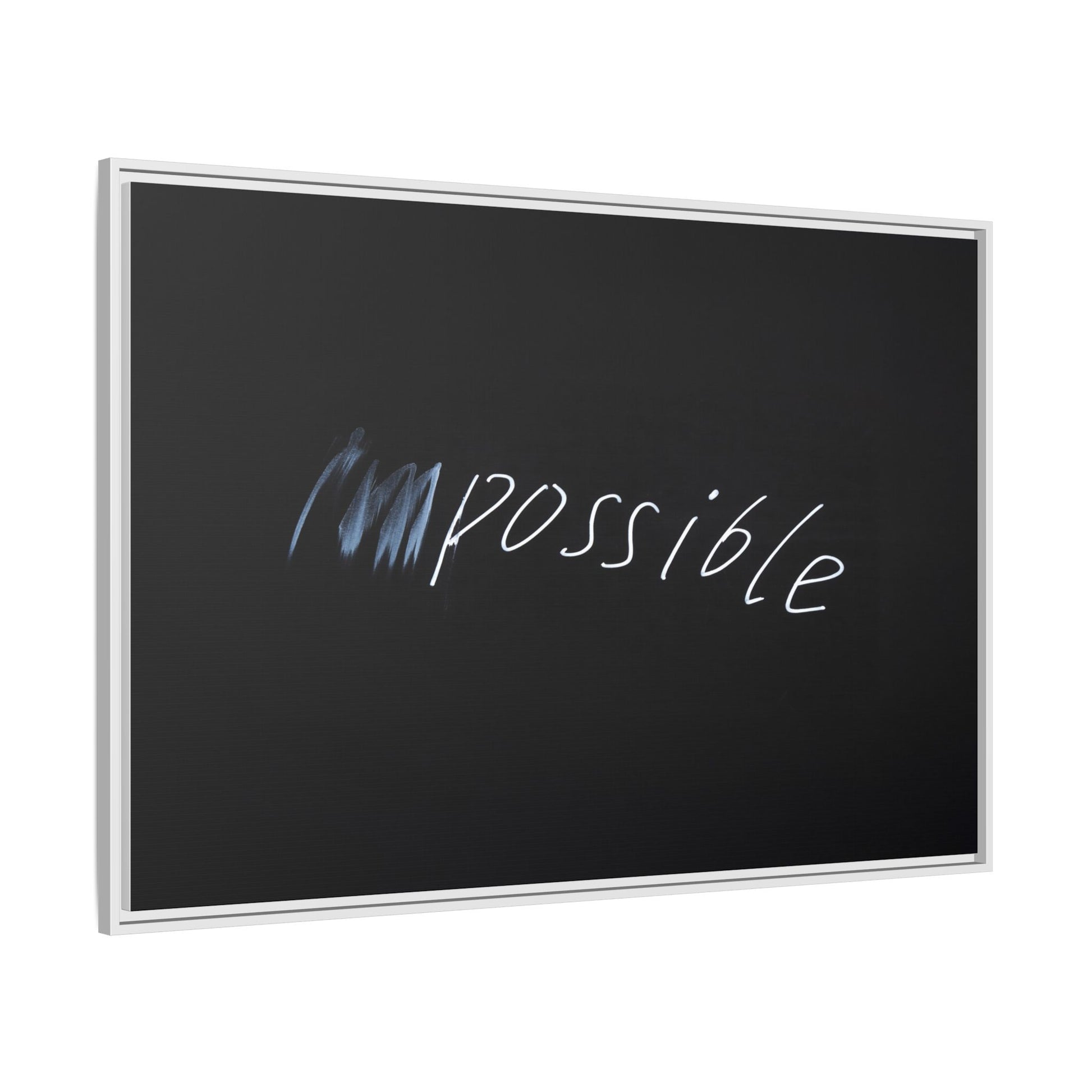This striking image depicts the word "Impossible" written in white, luminescent lettering against a deep black background. The text appears to be hand-drawn with a glowing effect, creating a sense of dynamism and movement. The first part of the word seems to be slightly blurred or smeared, giving an impression of transformation or breaking through barriers. The high-contrast design emphasizes the visual impact of the word, making it stand out dramatically against the dark backdrop. The overall aesthetic suggests a conceptual or motivational theme, hinting at overcoming limitations and challenging perceived boundaries.