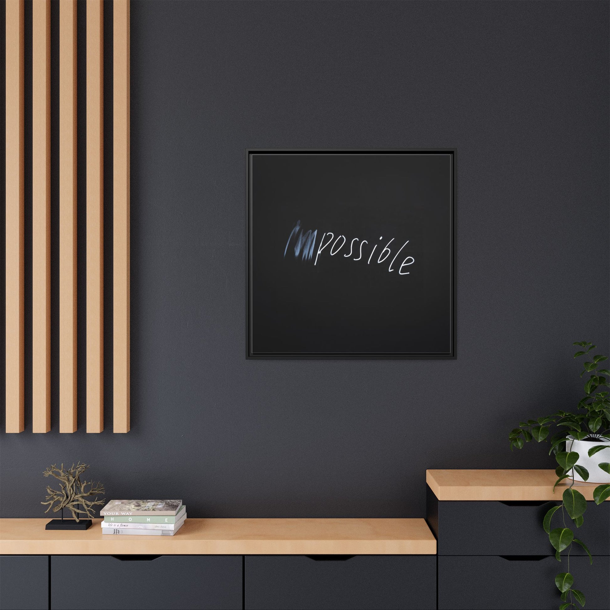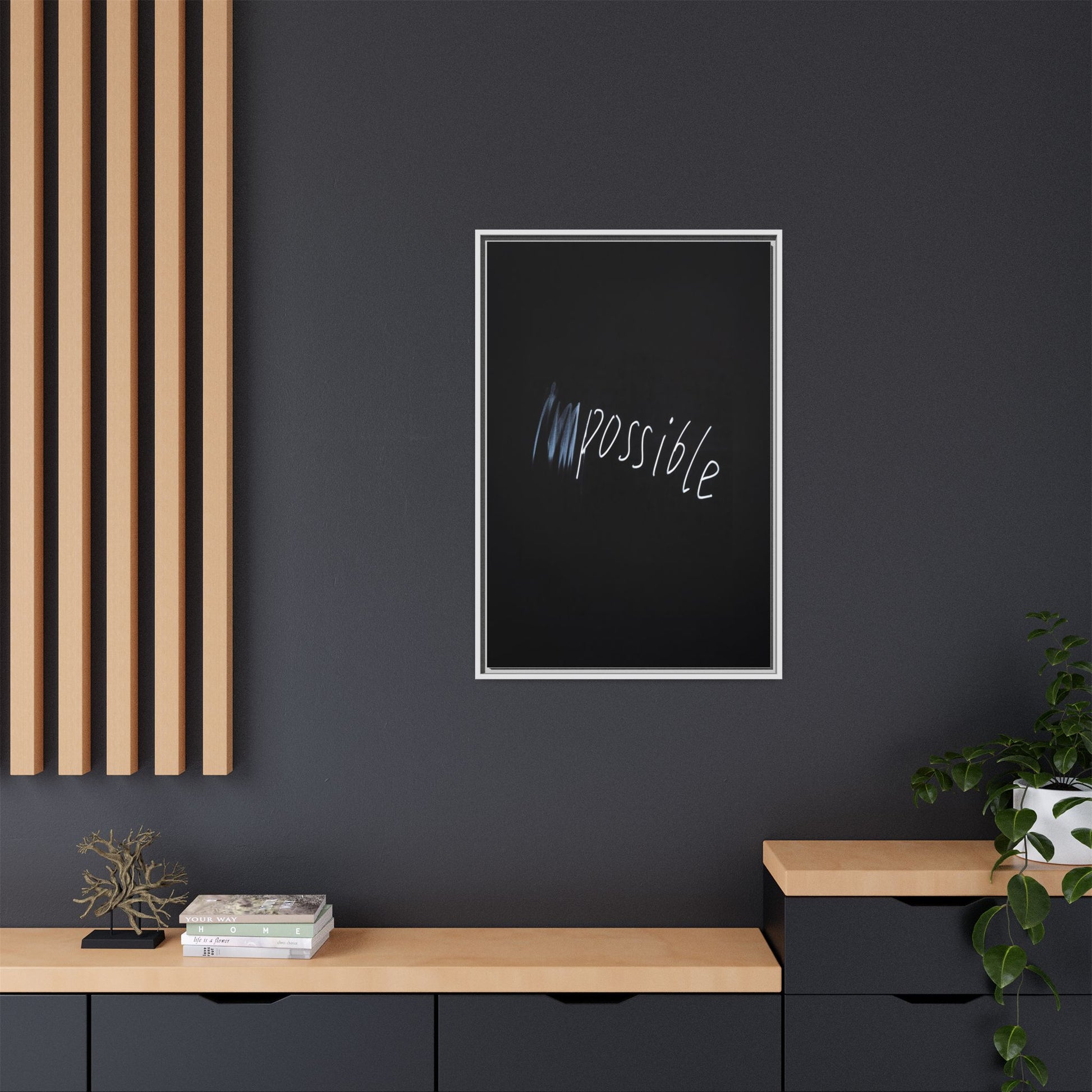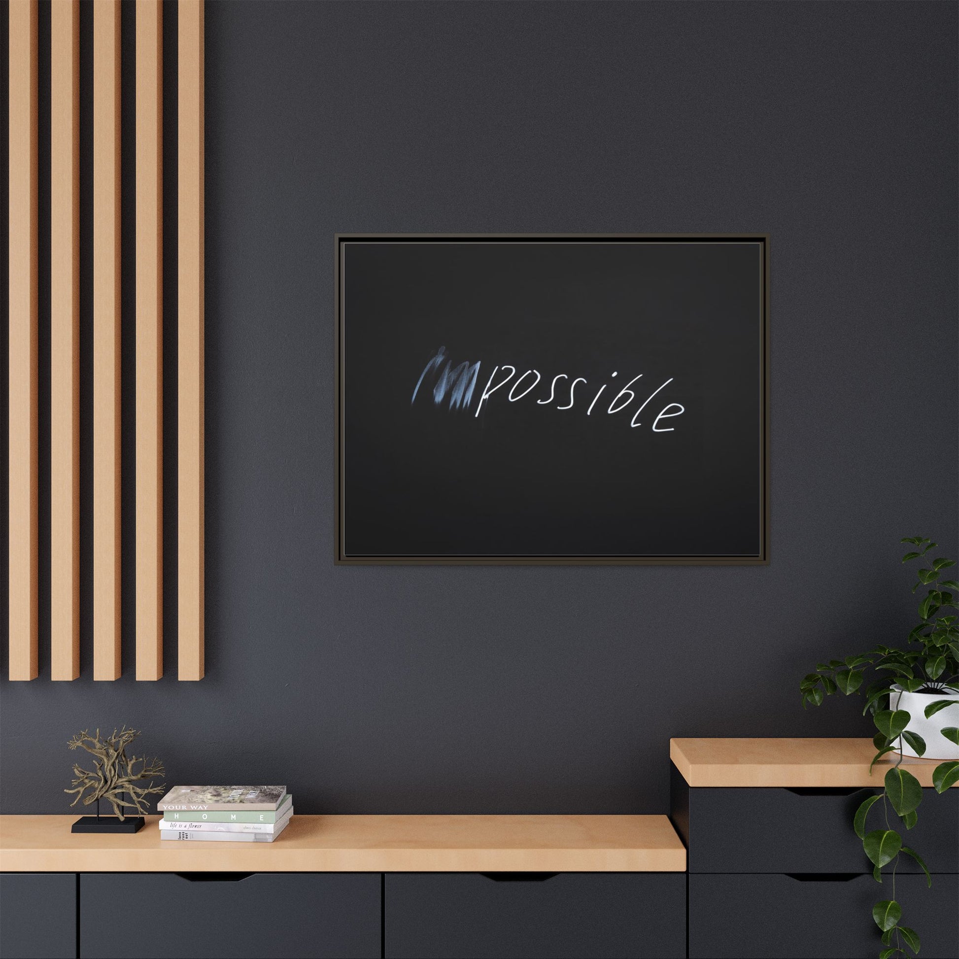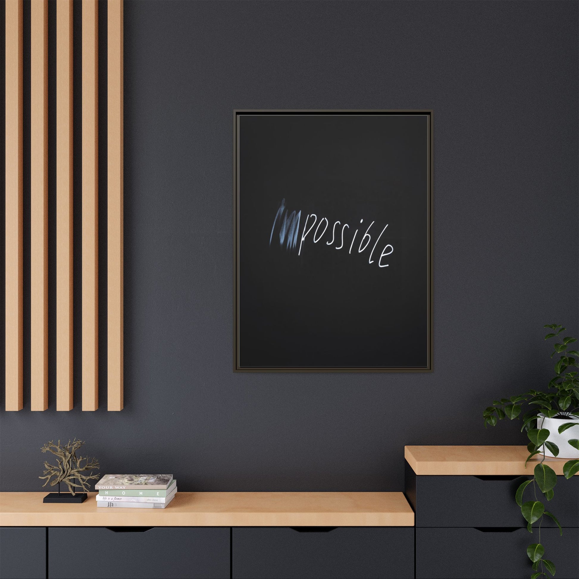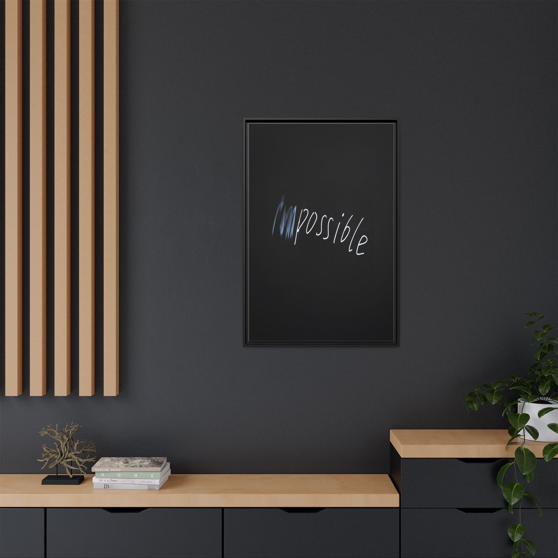 This striking image depicts the word "Impossible" written in white, luminescent lettering against a deep black background. The text appears to be hand-drawn with a glowing effect, creating a sense of dynamism and movement. The first part of the word seems to be slightly blurred or smeared, giving an impression of transformation or breaking through barriers. The high-contrast design emphasizes the visual impact of the word, making it stand out dramatically against the dark backdrop. The overall aesthetic suggests a conceptual or motivational theme, hinting at overcoming limitations and challenging perceived boundaries.