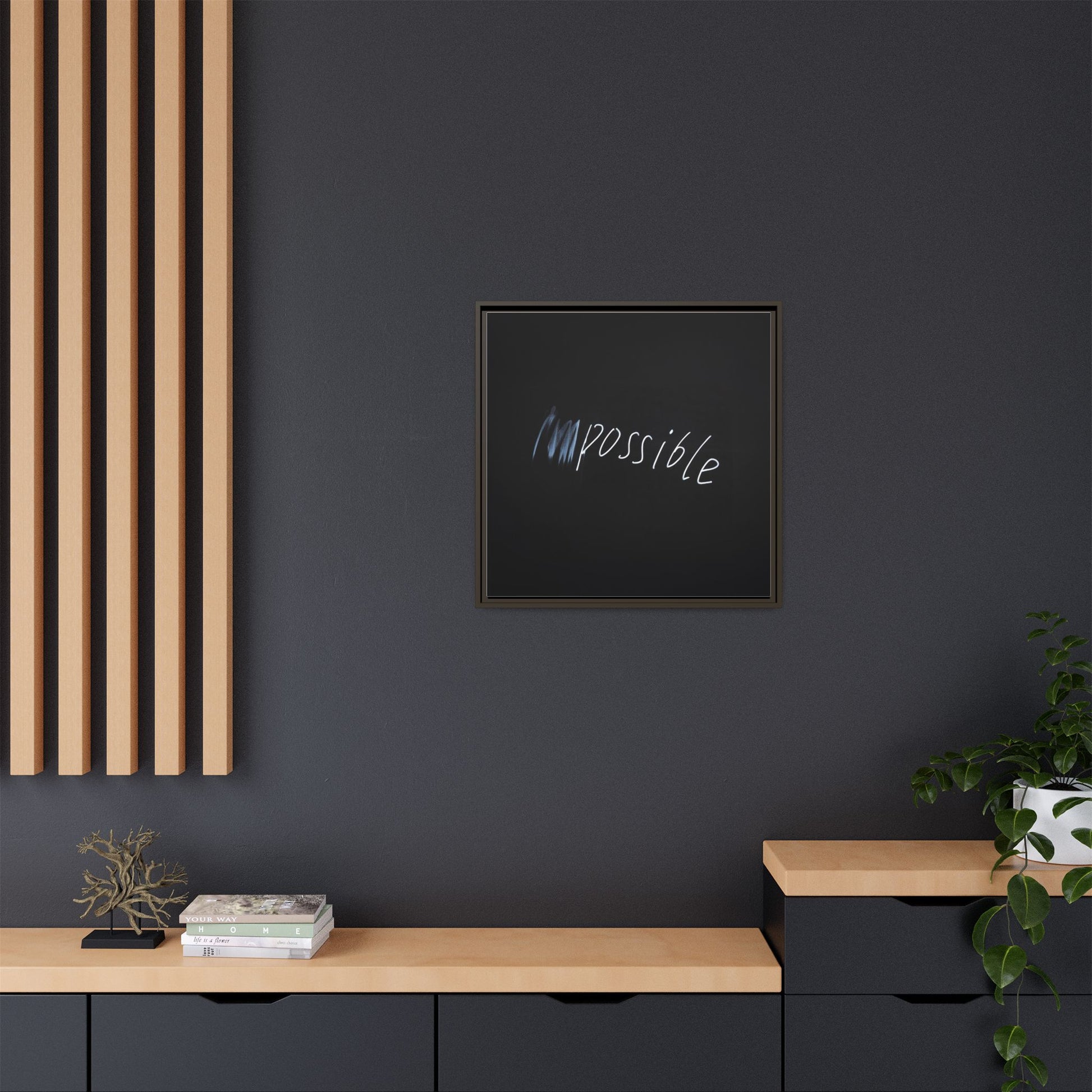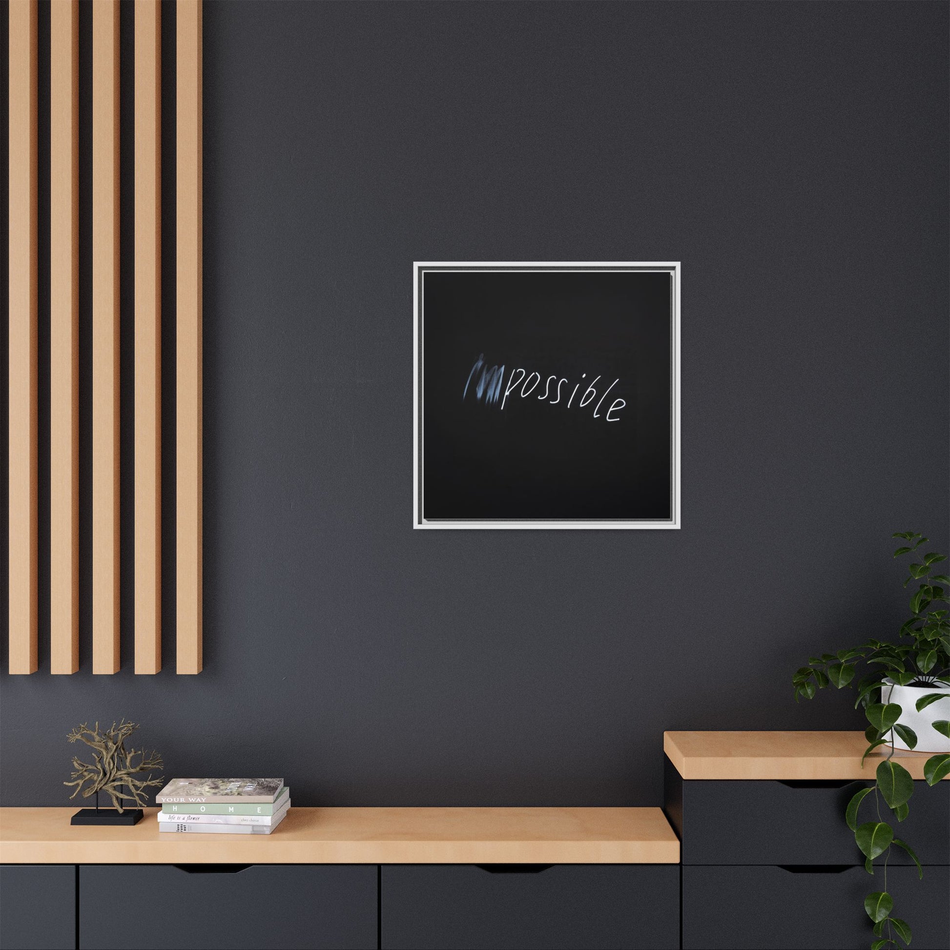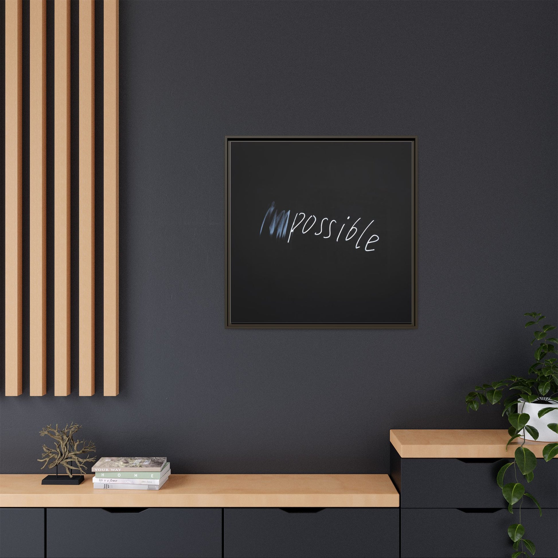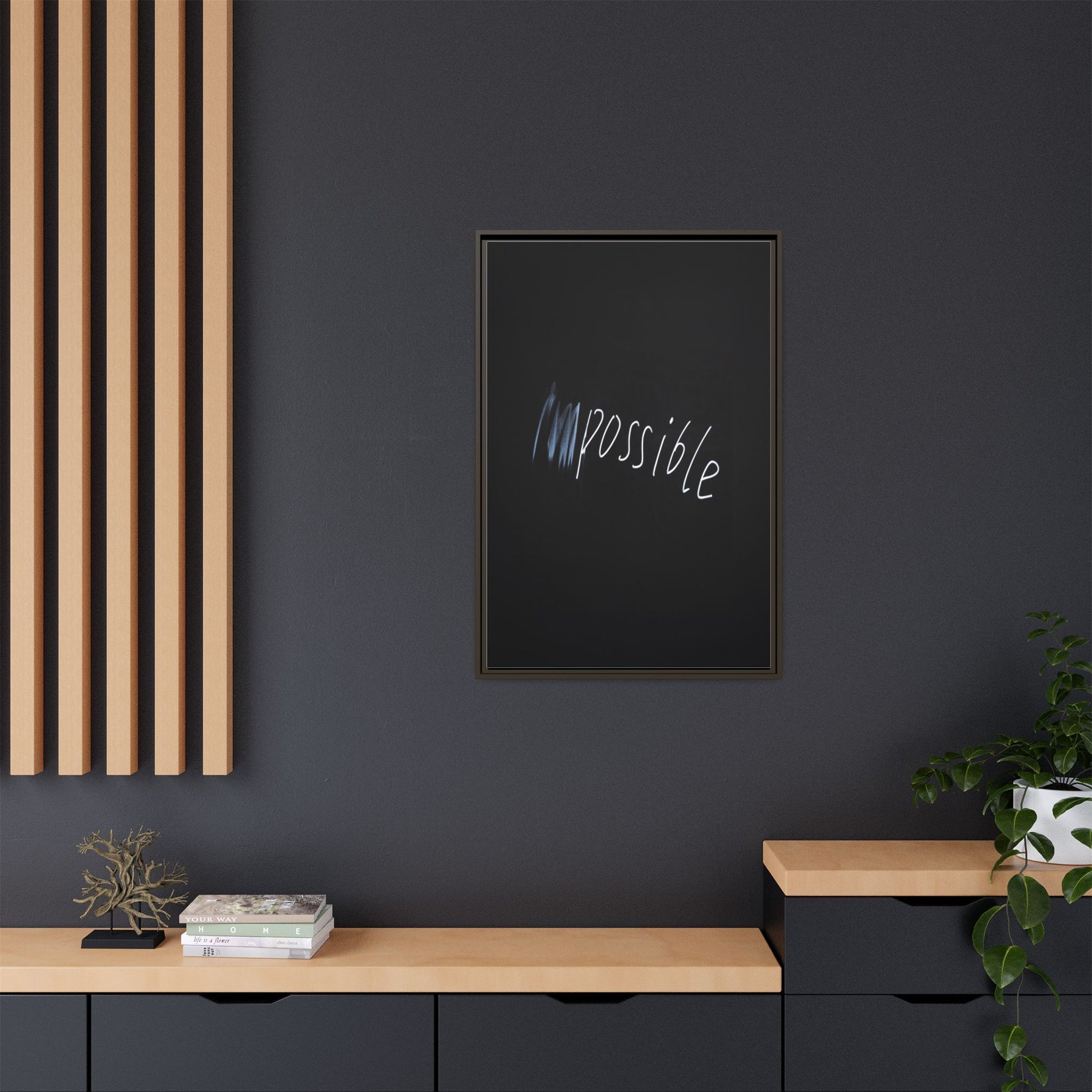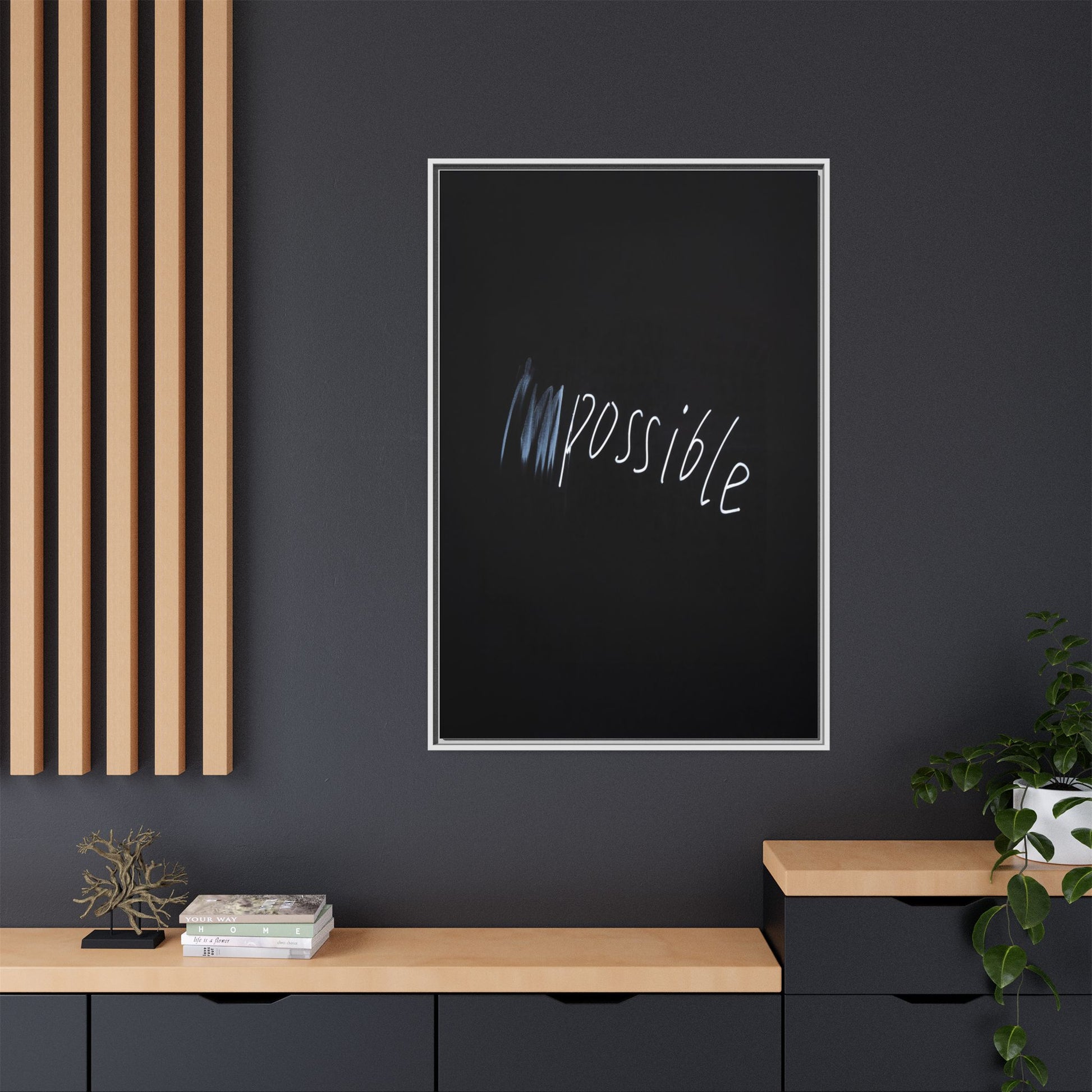This striking image depicts the word "Impossible" written in white, luminescent lettering against a deep black background. The text appears to be hand-drawn with a glowing effect, creating a sense of dynamism and movement. The first part of the word seems to be slightly blurred or smeared, giving an impression of transformation or breaking through barriers. The high-contrast design emphasizes the visual impact of the word, making it stand out dramatically against the dark backdrop. The overall aesthetic suggests a conceptual or motivational theme, hinting at overcoming limitations and challenging perceived boundaries.