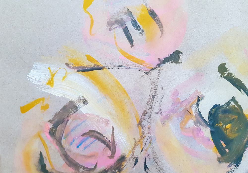 An abstract dance of soft pastels and earthy strokes, this piece flows with whimsical motion, capturing fleeting emotions and subtle movement.