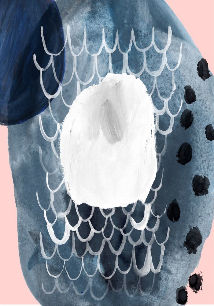 An interplay of textures, reminiscent of ocean depths and floating clouds, with delicate patterns emerging from the misty blues.