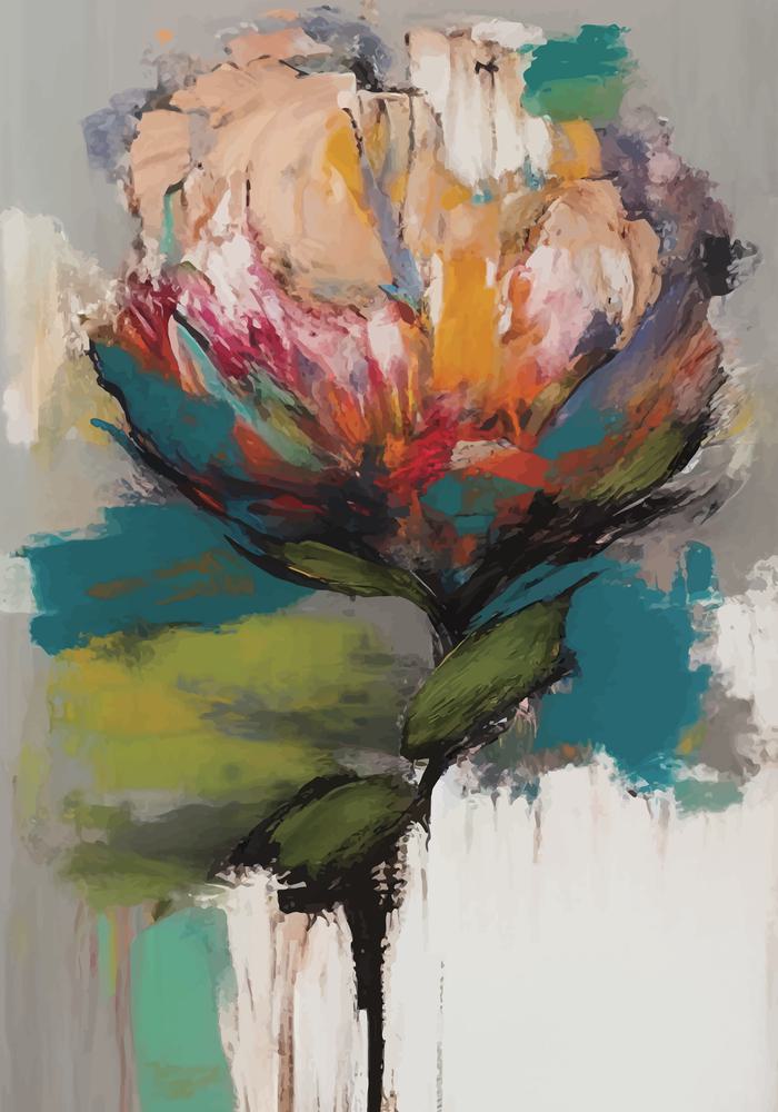 An abstract bloom unfurls with vibrant, swirling hues, capturing the essence of nature's chaotic artistry. The flower's impressionistic form speaks to the dynamic interplay between structure and spontaneity.