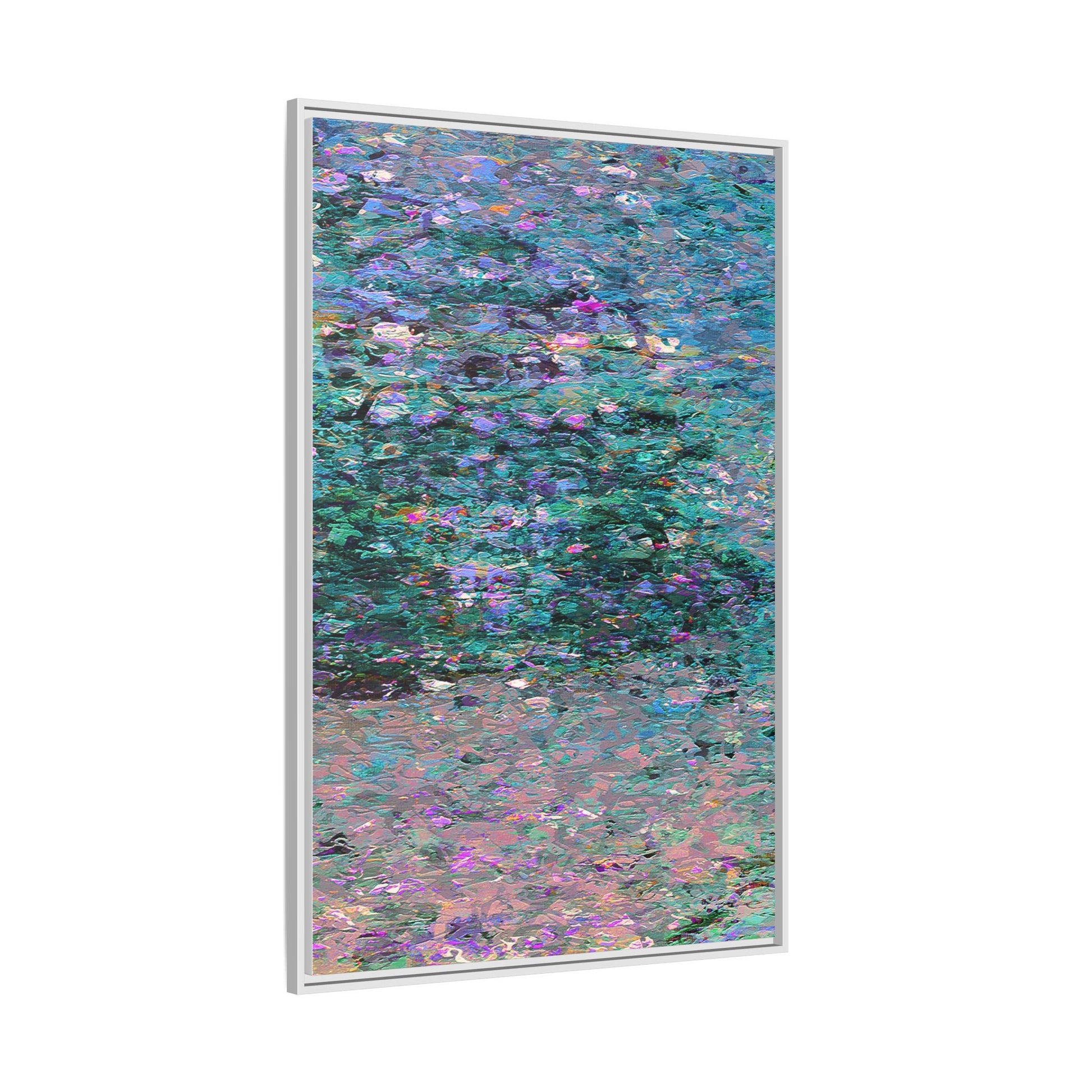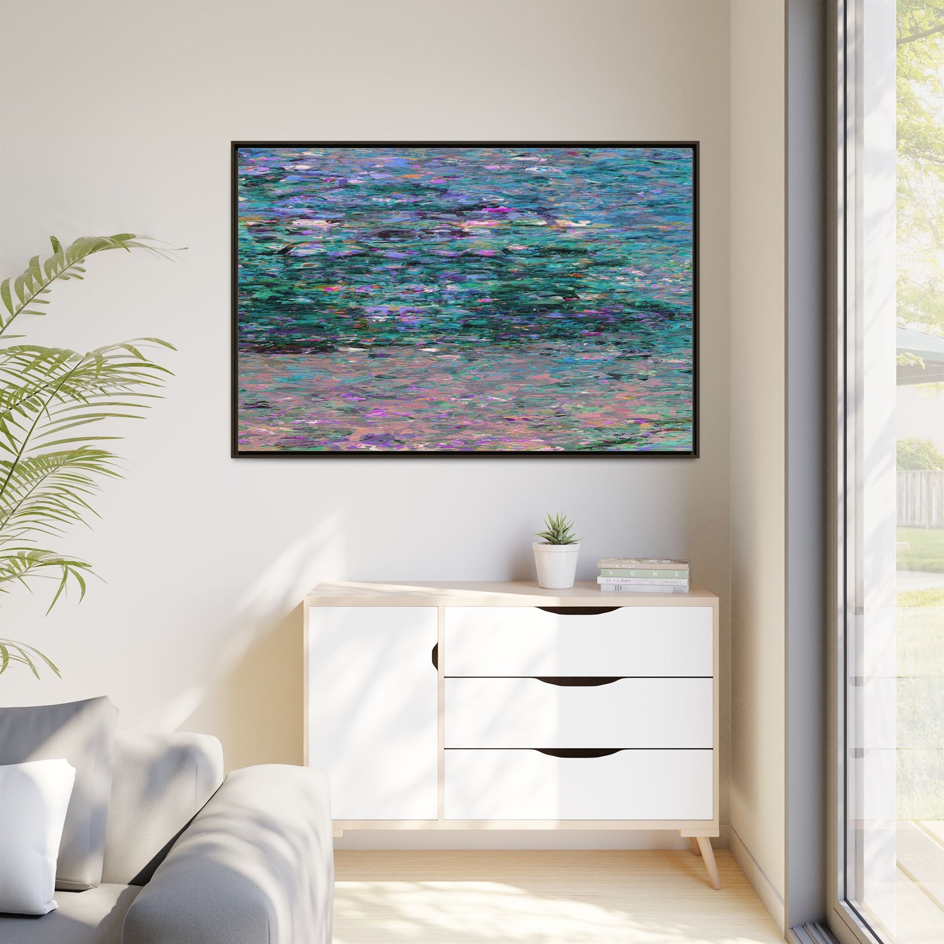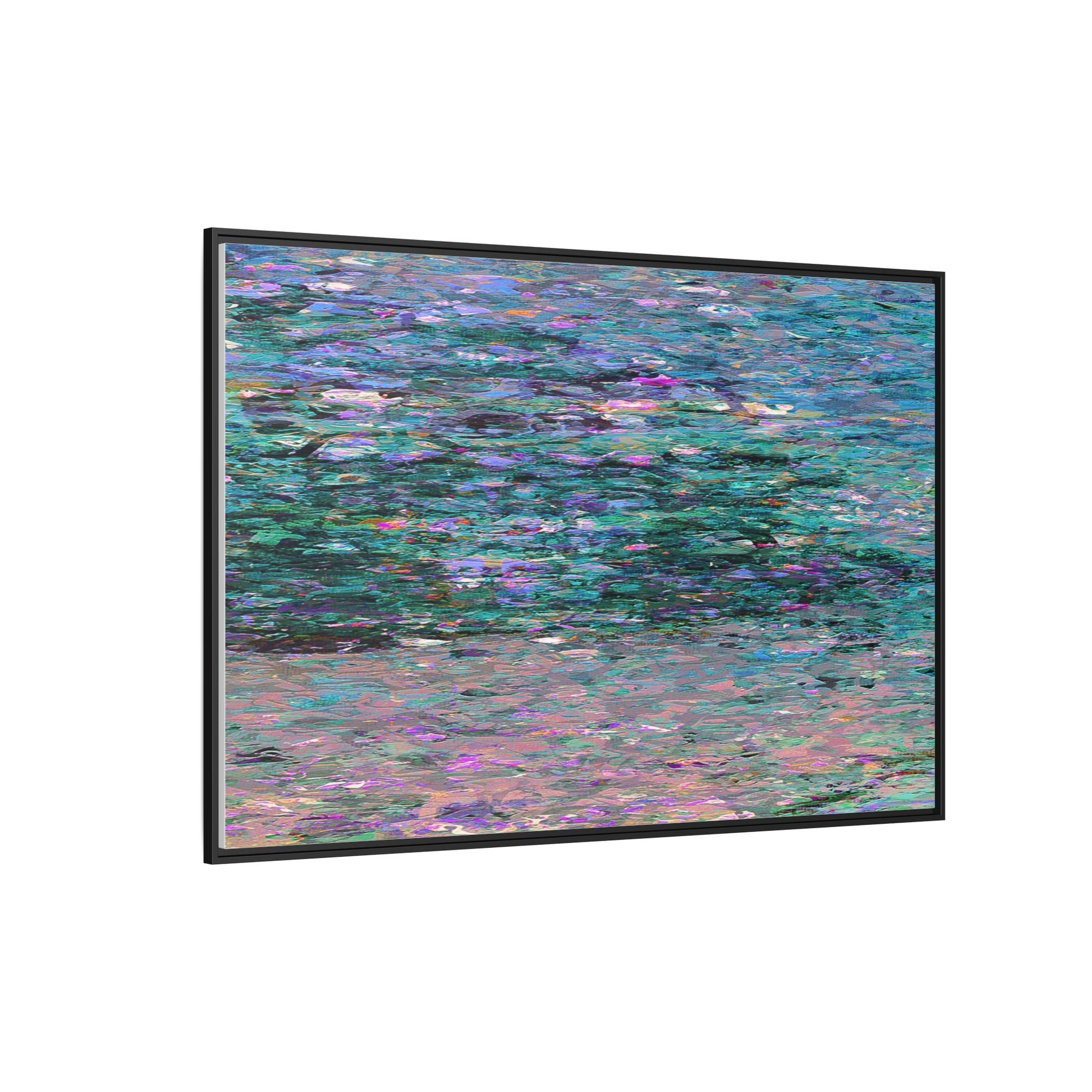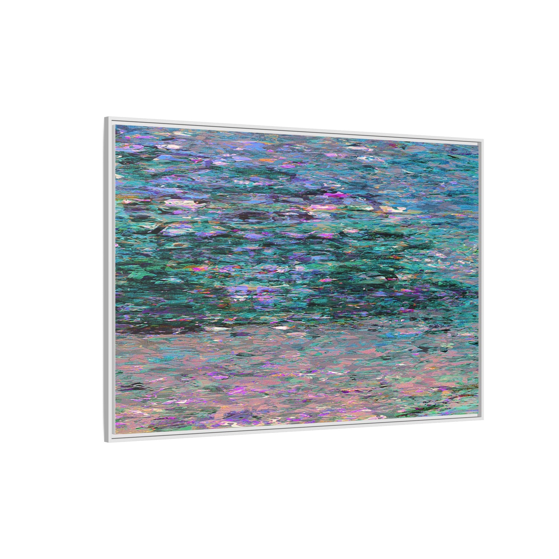 This image appears to be a glitch art or digital distortion piece, characterized by a mesmerizing blend of teal, purple, pink, and blue pixel-like textures. The visual creates a sense of digital turbulence, with horizontal bands of pixelated colors bleeding and blending into each other in a chaotic yet harmonious pattern. Layers of digital noise create a sense of depth and movement, with some areas appearing more dense and saturated while others seem more translucent and fragmented. The color palette suggests a digital landscape that is simultaneously organic and artificial, reminiscent of corrupted digital data or a malfunctioning screen. The overall effect is a hypnotic, abstract representation of digital interference that blurs the lines between error and intentional artistic expression.