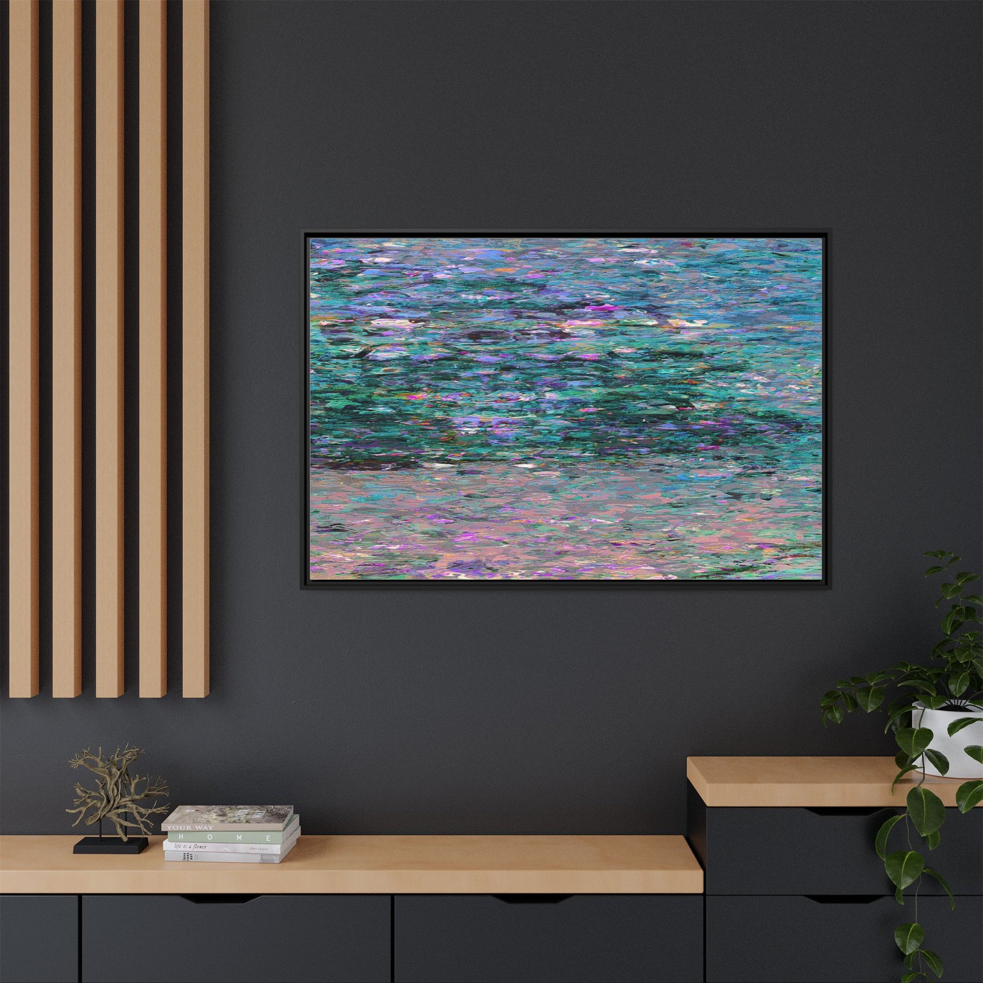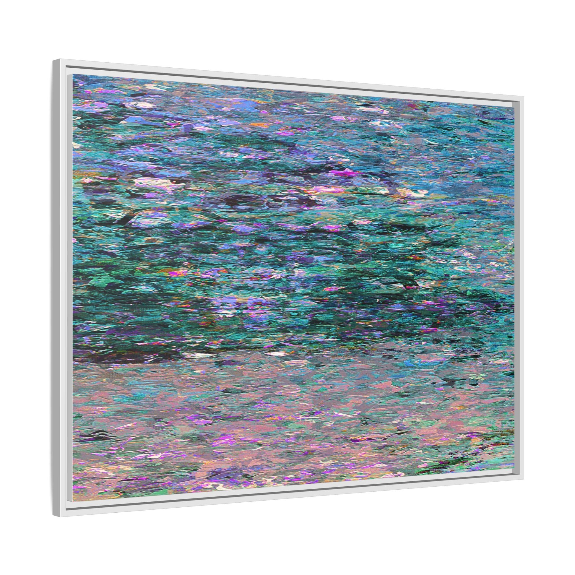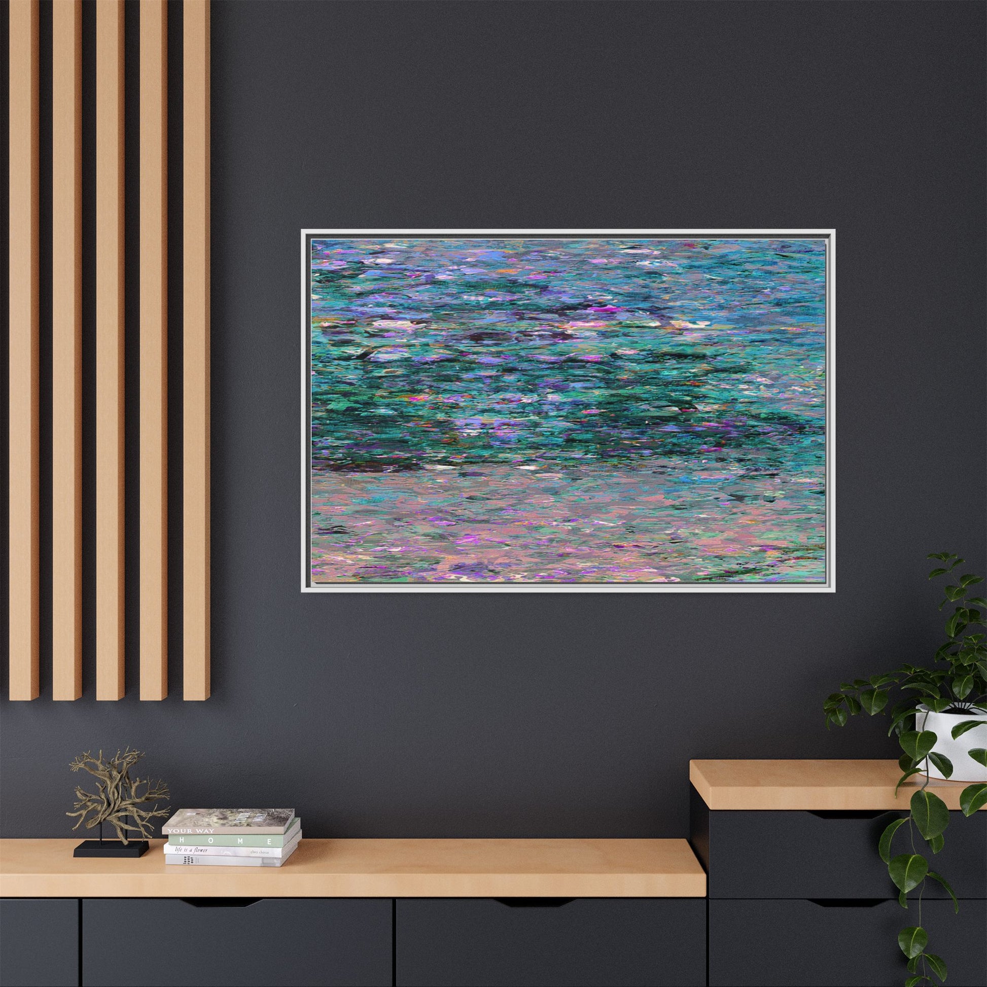 This image appears to be a glitch art or digital distortion piece, characterized by a mesmerizing blend of teal, purple, pink, and blue pixel-like textures. The visual creates a sense of digital turbulence, with horizontal bands of pixelated colors bleeding and blending into each other in a chaotic yet harmonious pattern. Layers of digital noise create a sense of depth and movement, with some areas appearing more dense and saturated while others seem more translucent and fragmented. The color palette suggests a digital landscape that is simultaneously organic and artificial, reminiscent of corrupted digital data or a malfunctioning screen. The overall effect is a hypnotic, abstract representation of digital interference that blurs the lines between error and intentional artistic expression.