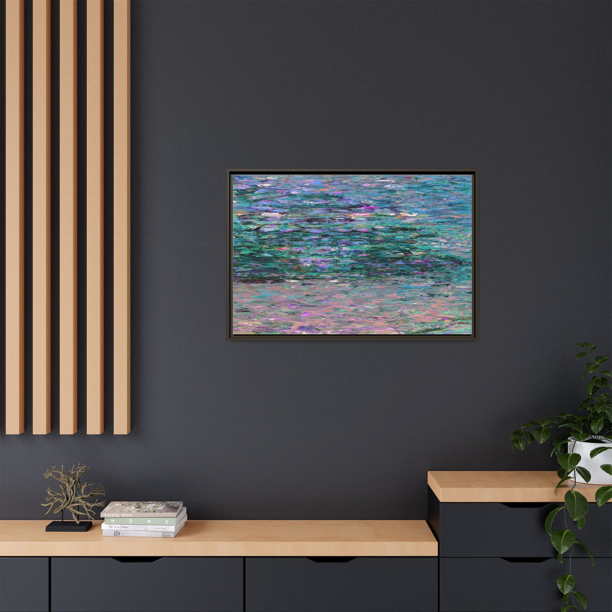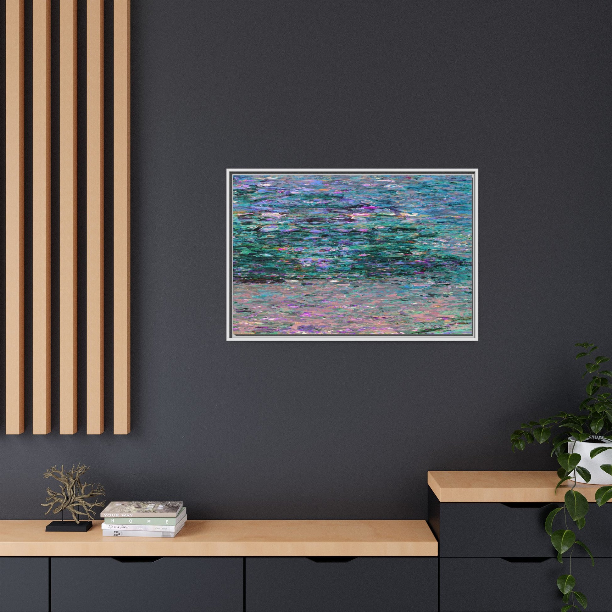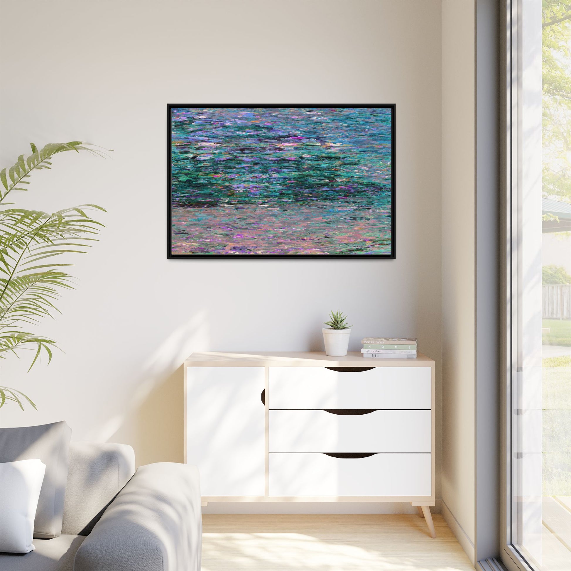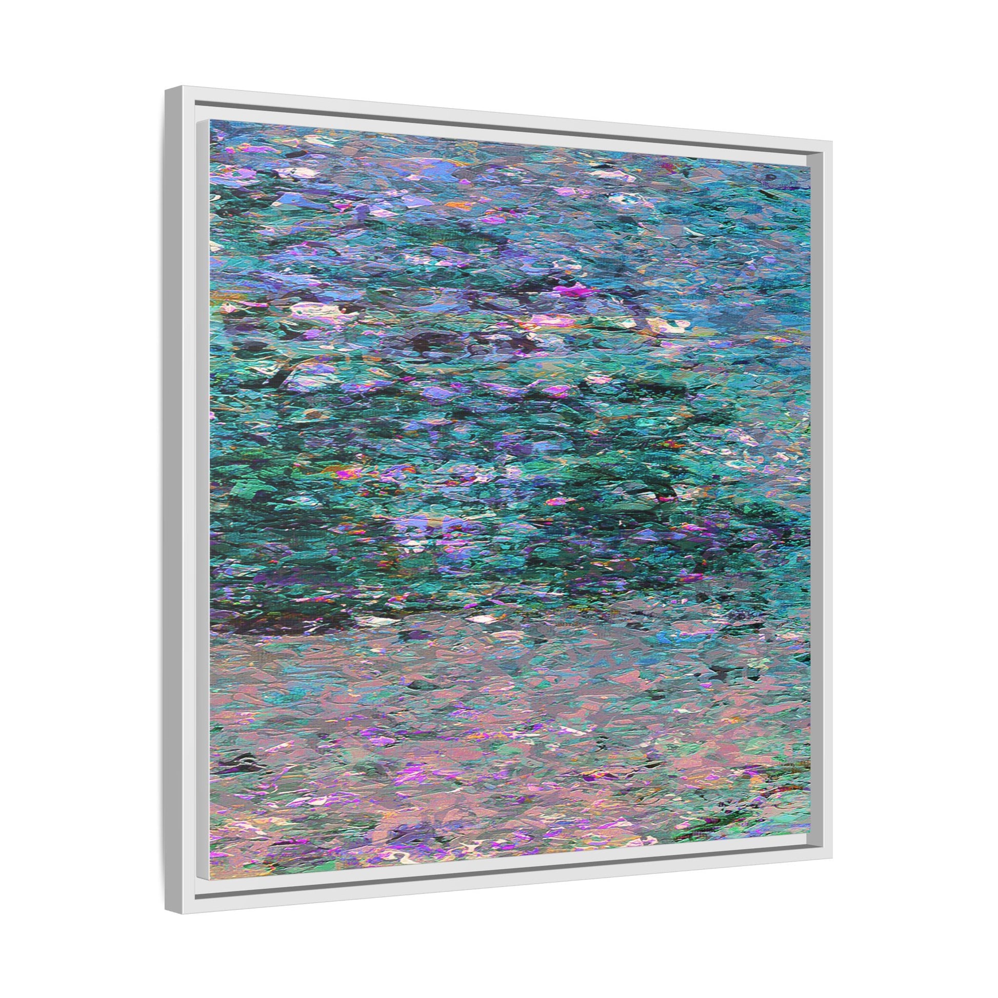 This image appears to be a glitch art or digital distortion piece, characterized by a mesmerizing blend of teal, purple, pink, and blue pixel-like textures. The visual creates a sense of digital turbulence, with horizontal bands of pixelated colors bleeding and blending into each other in a chaotic yet harmonious pattern. Layers of digital noise create a sense of depth and movement, with some areas appearing more dense and saturated while others seem more translucent and fragmented. The color palette suggests a digital landscape that is simultaneously organic and artificial, reminiscent of corrupted digital data or a malfunctioning screen. The overall effect is a hypnotic, abstract representation of digital interference that blurs the lines between error and intentional artistic expression.