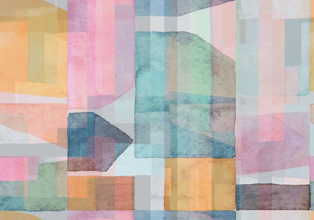 A dance of translucent layers and soft geometry, where hues blend and boundaries waver, creating a harmonious mosaic of color and form.