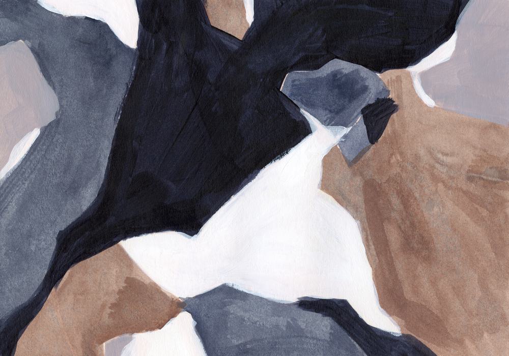 An abstract dance of forms converges, where shadows and textures weave through muted earth with celestial grace.