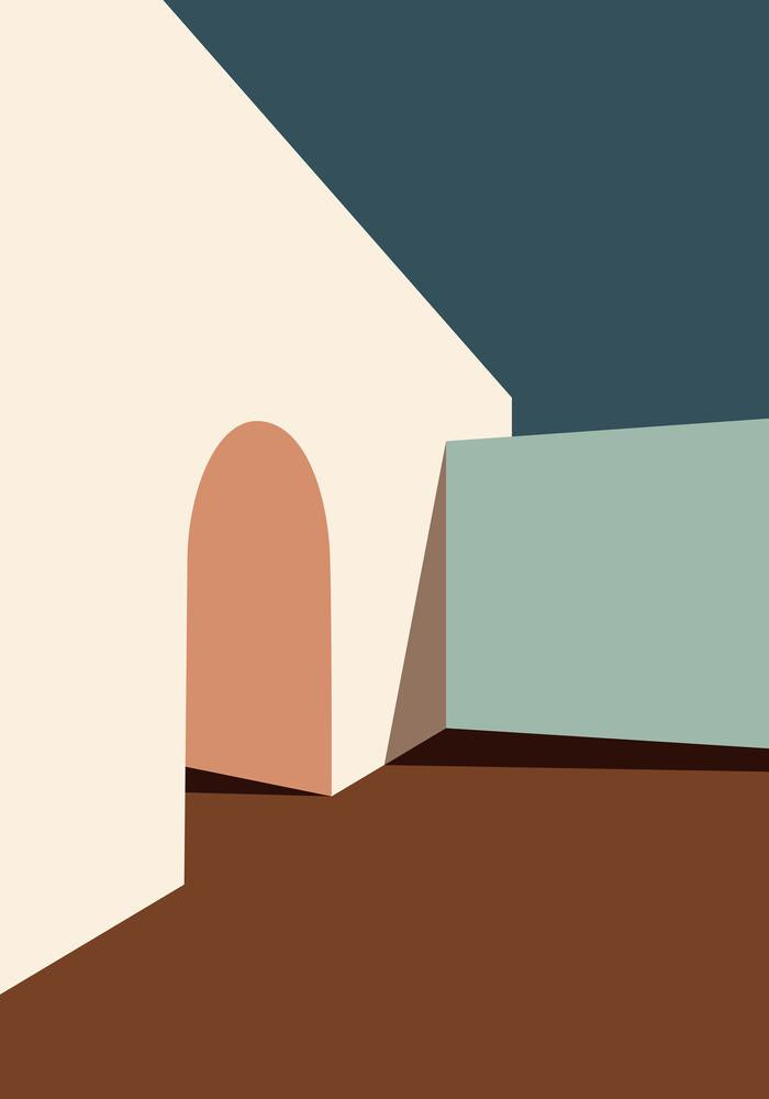 A geometric dance of shapes and tones, capturing an abstract interplay of forms. The image evokes a sense of architectural mystery.