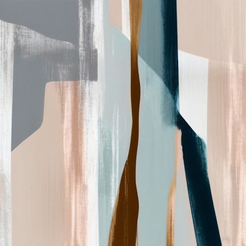 Vertical forms interlace in an abstract dance of shadows and light, suggesting a silent dialogue between solidity and transparency.