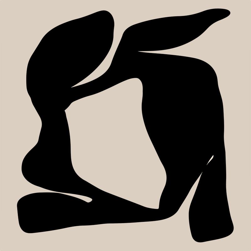 An abstract dance of organic shapes entwines gracefully, silhouetted against a tranquil backdrop, evoking a sense of fluid mystery.