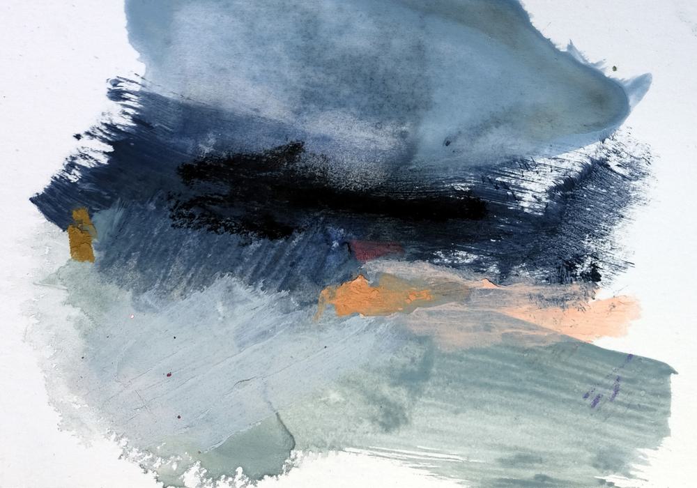Ethereal brushstrokes blend into each other, evoking the feeling of a storm rolling across an open sky, distant and mysterious.