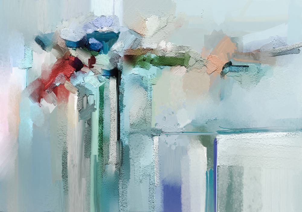 A dance of fluid forms and textures echoing the whispers of a serene sky, infused with dynamic splashes.