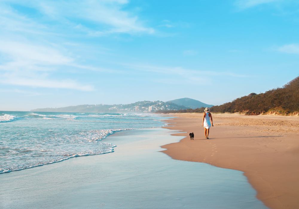 A gentle stroll at dawn, where sea and sky whisper secrets along an endless shore.