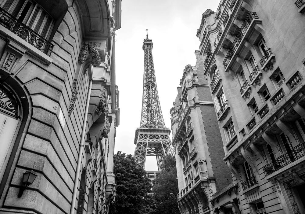 A harmonious convergence of architectural grace, where historic façades frame a towering icon, whispering tales of a city's heart.