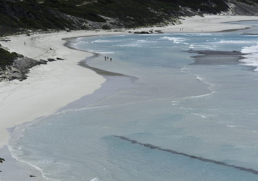 A serene coastline unfolds with gentle waves caressing the sand, evoking a tranquil dialogue between sea and shore.