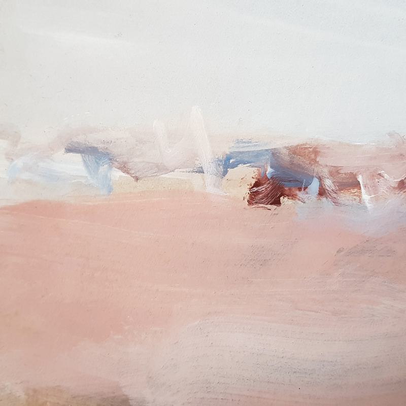 ** A serene landscape unfolds, capturing the delicate dance of pastel hues. The gentle brushstrokes evoke a soft horizon blurred by early light, where earth meets sky in a harmonious embrace.