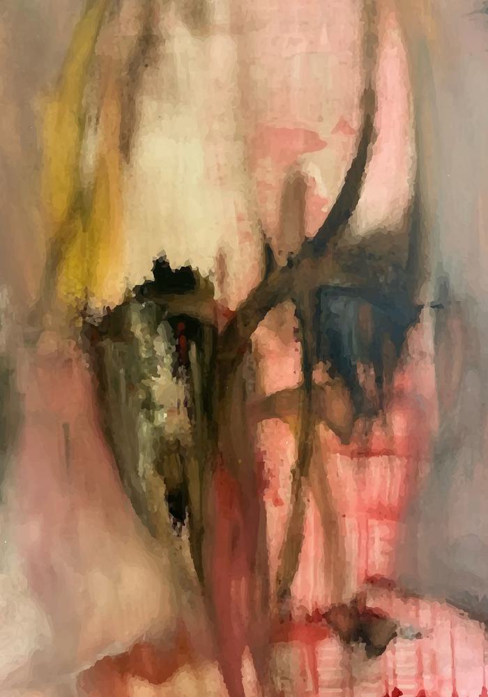 A haunting interplay of blurred forms and soft hues, where the boundaries of identity and emotion merge into a tapestry of abstraction.