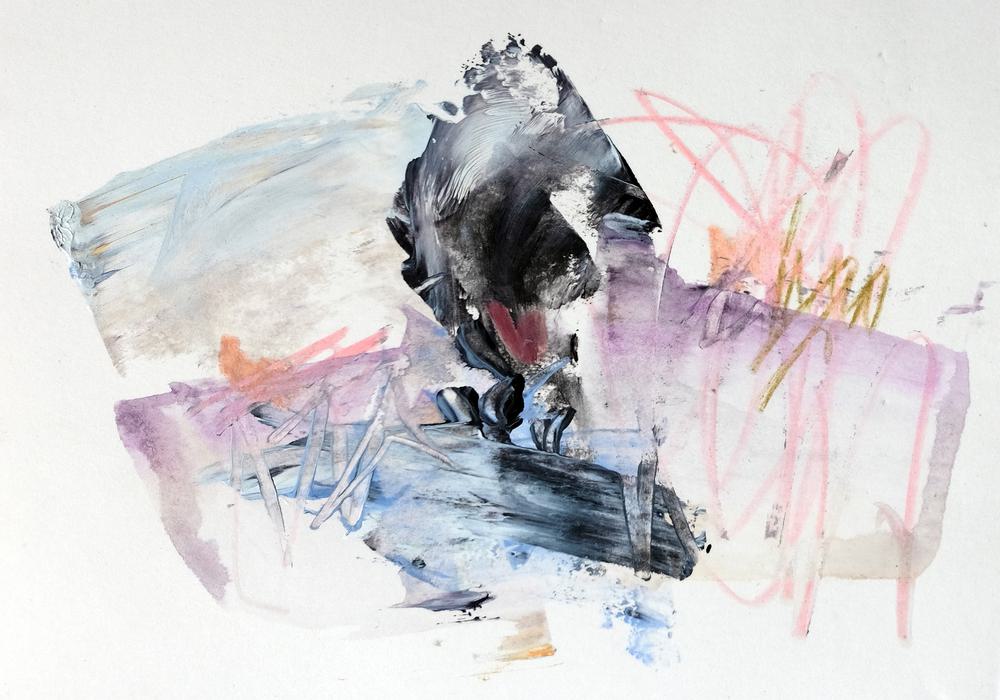 A dynamic interplay of shadows and pastel hues, intertwining in an ethereal dance. The center emerges as an abstract form, hinting at movement and mystery on a textured plane.