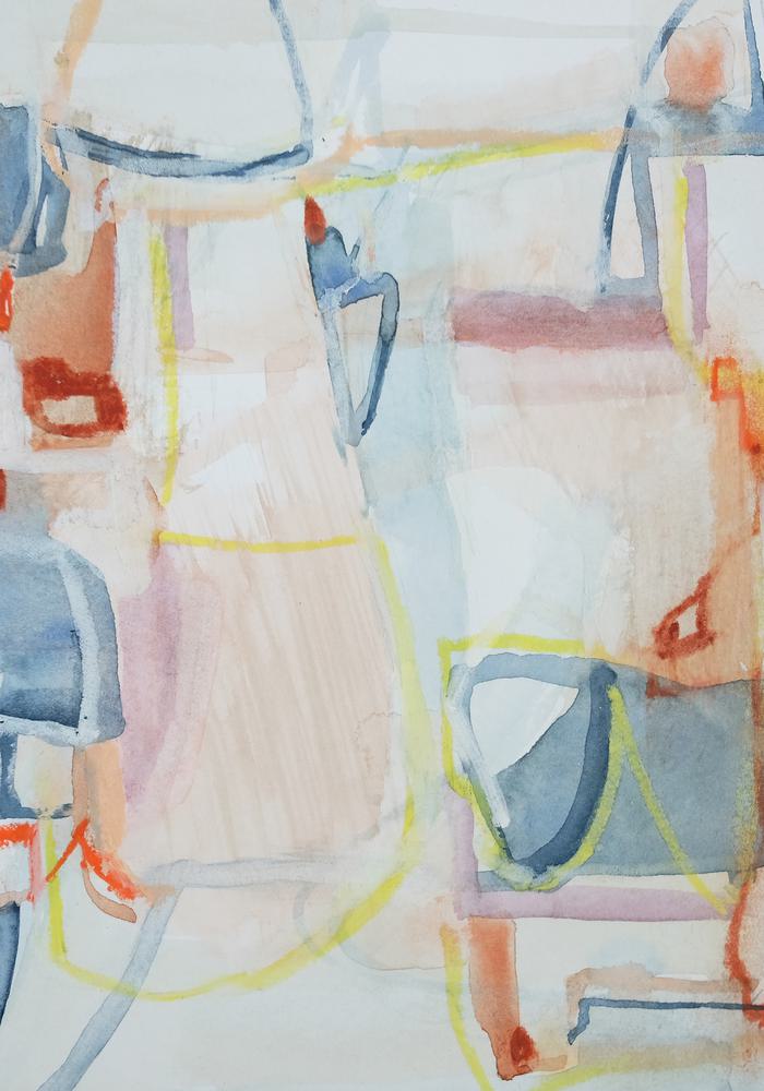 An intricate dance of abstract shapes and fluid lines, merging together like whispered tales in watercolor. Soft colors blend and intersect, creating a subtle, woven tapestry of visual harmony.