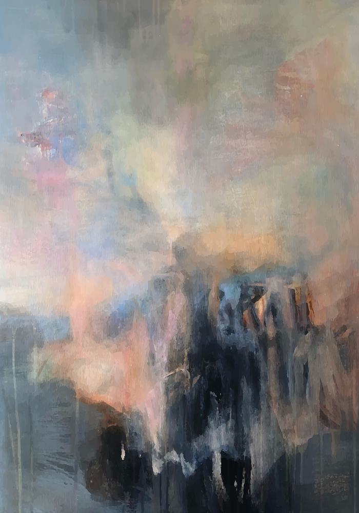A swirling fusion of light and shadow, where ethereal hues cascade and converge like a tempest of dreams unfolding in slow motion.