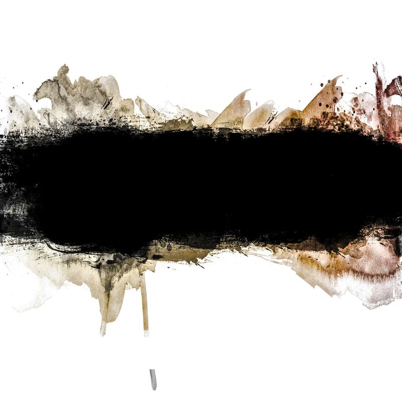 A black wave flows horizontally, flanked by textured earthy tones that evoke a feeling of turbulent tranquility.
