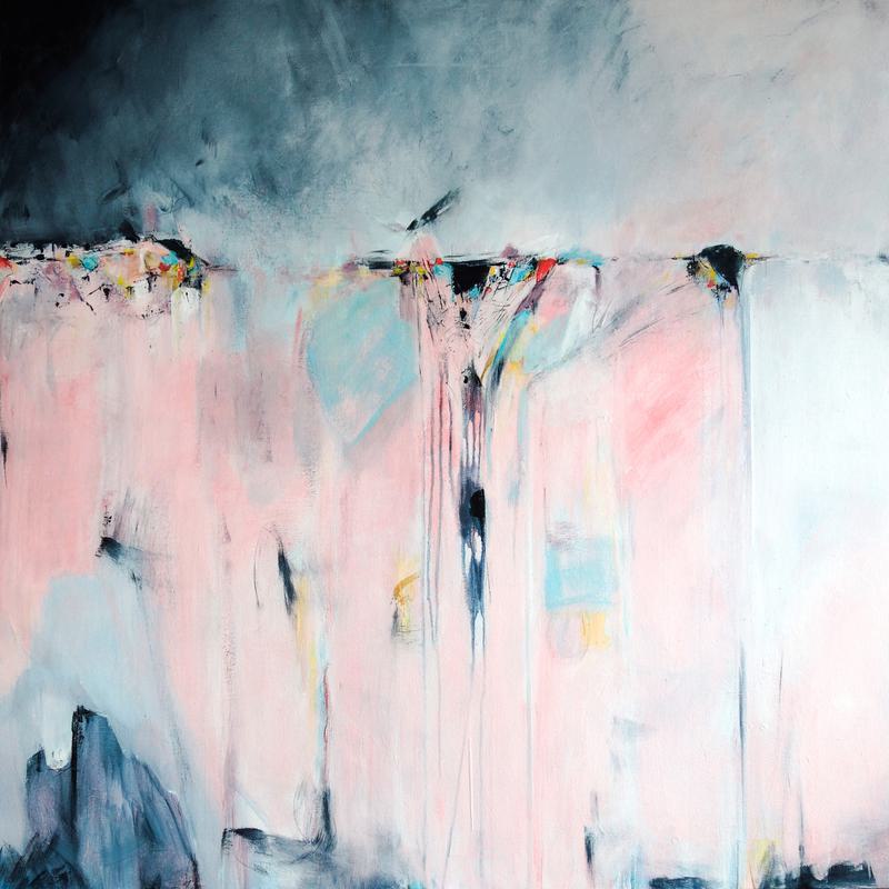 Ethereal layers cascade like soft memories across a dreamscape, where pastel hues blend with shadowed whispers.