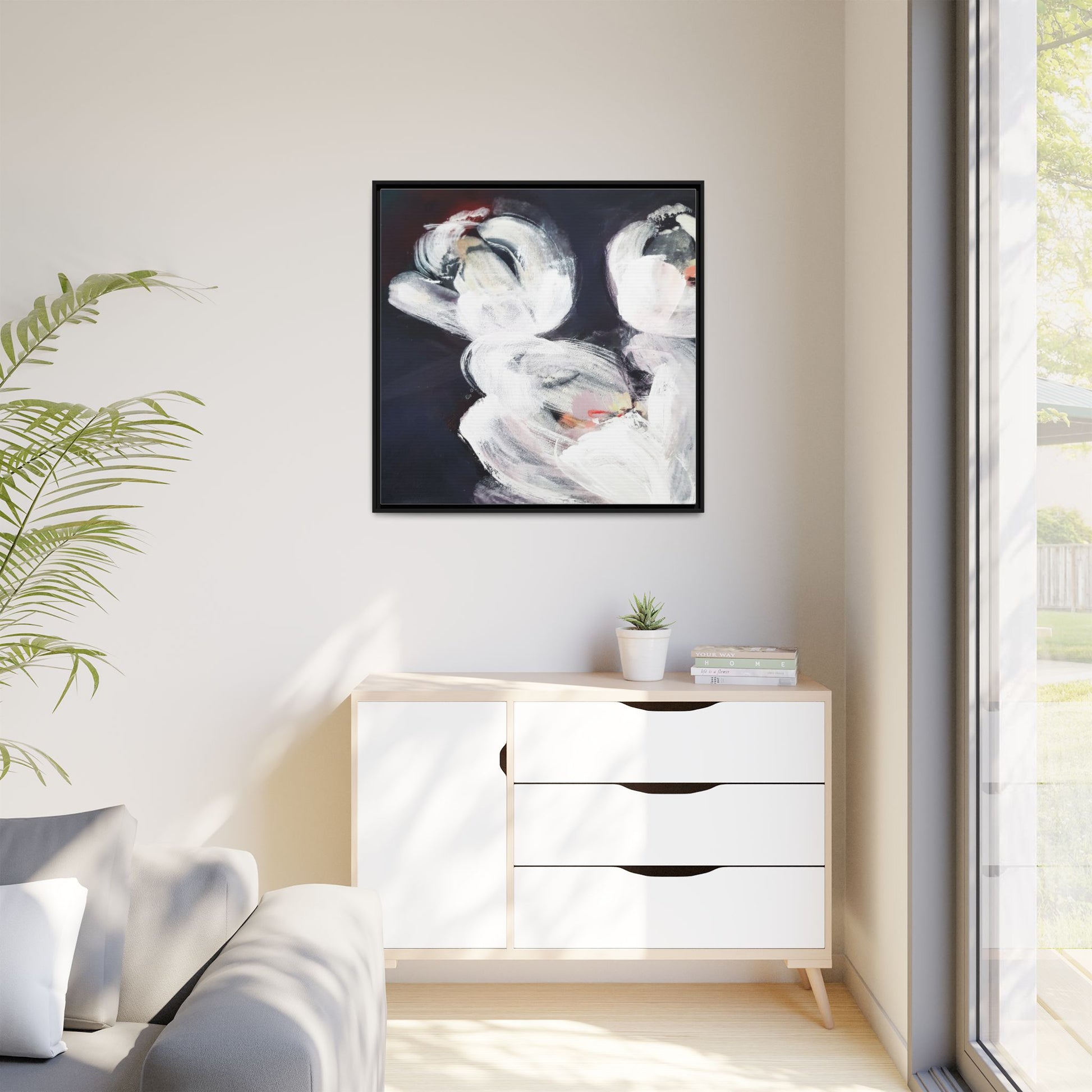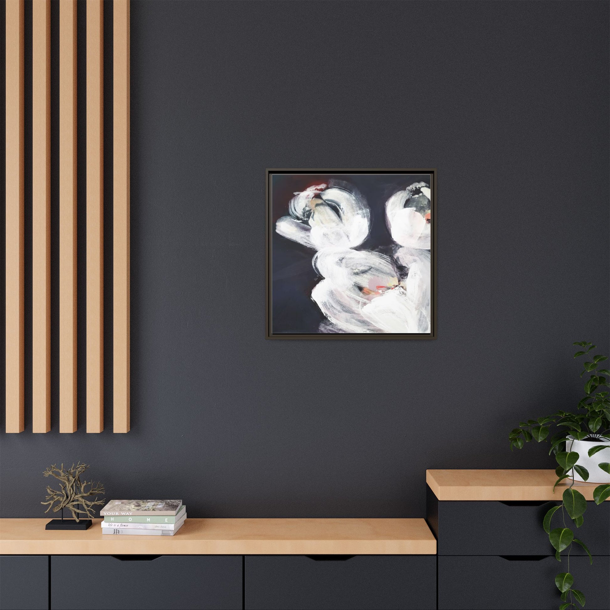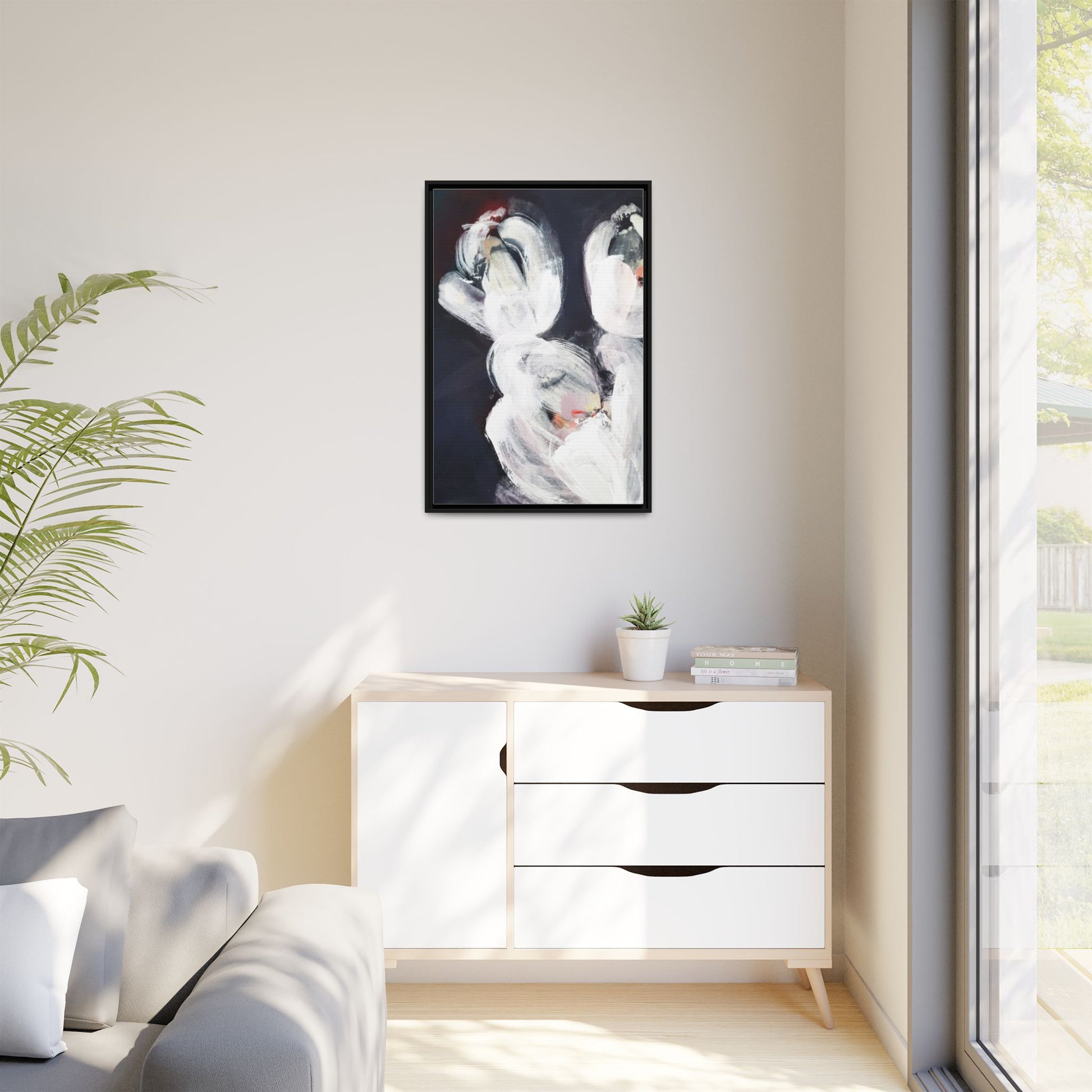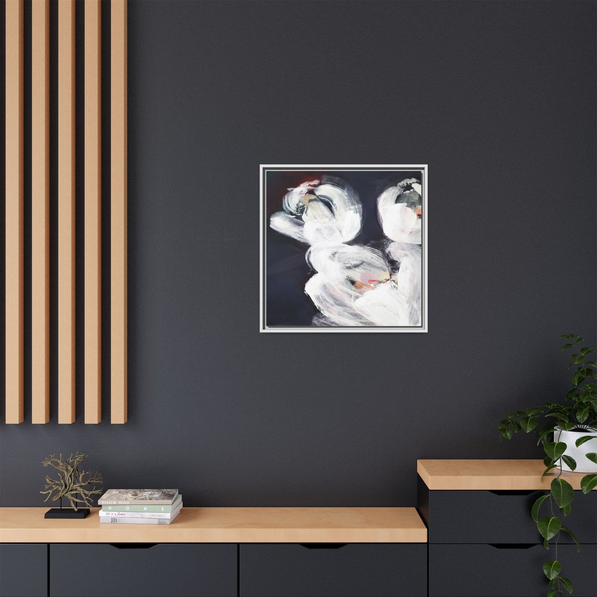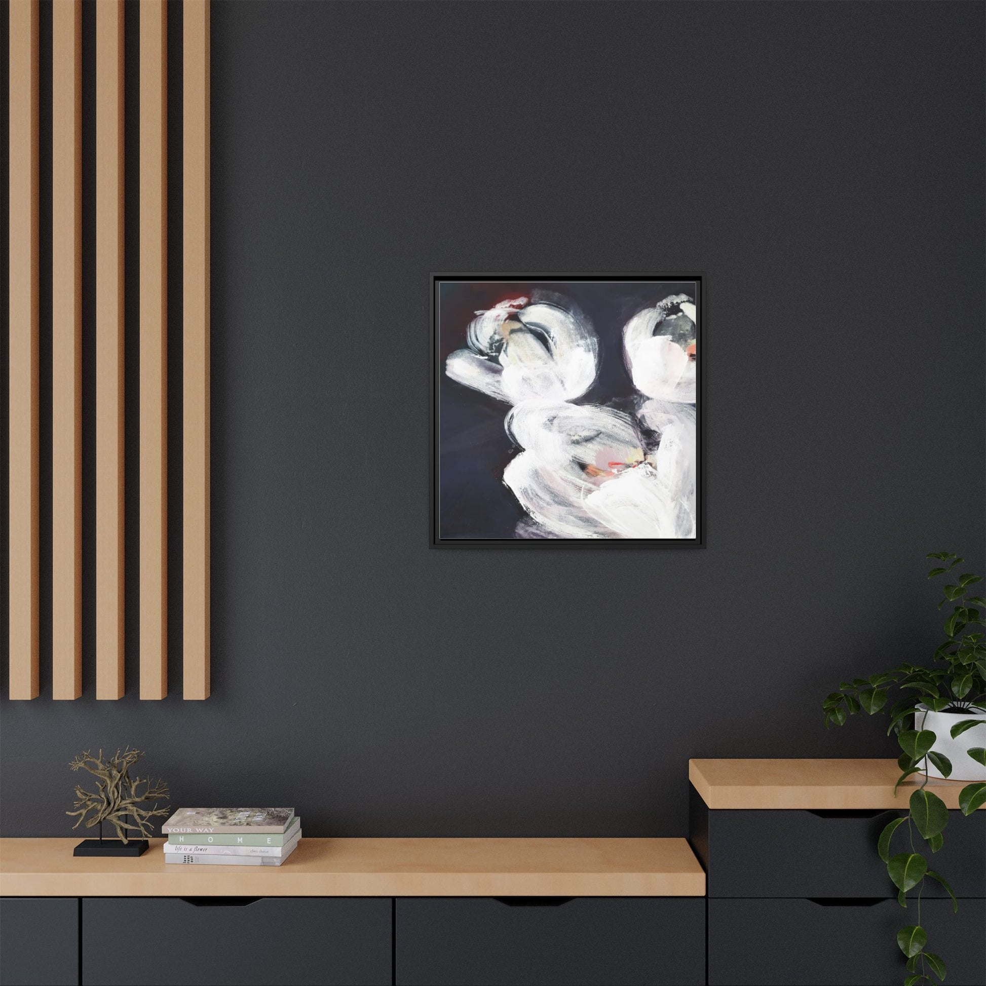 This captivating artwork is an abstract painting featuring soft, flowing white and gray forms against a dark background. The piece appears to be created using a blend of brushstrokes and blurred techniques, giving the image a sense of movement and ethereal quality. Predominantly white and light gray tones dominate the composition, with subtle hints of pale pink and red accents adding depth and intrigue. The brushwork is loose and expressive, creating organic shapes that seem to blend and flow into one another. The painting has a dreamy, almost impressionistic style that invites viewers to interpret the forms freely and emotionally.