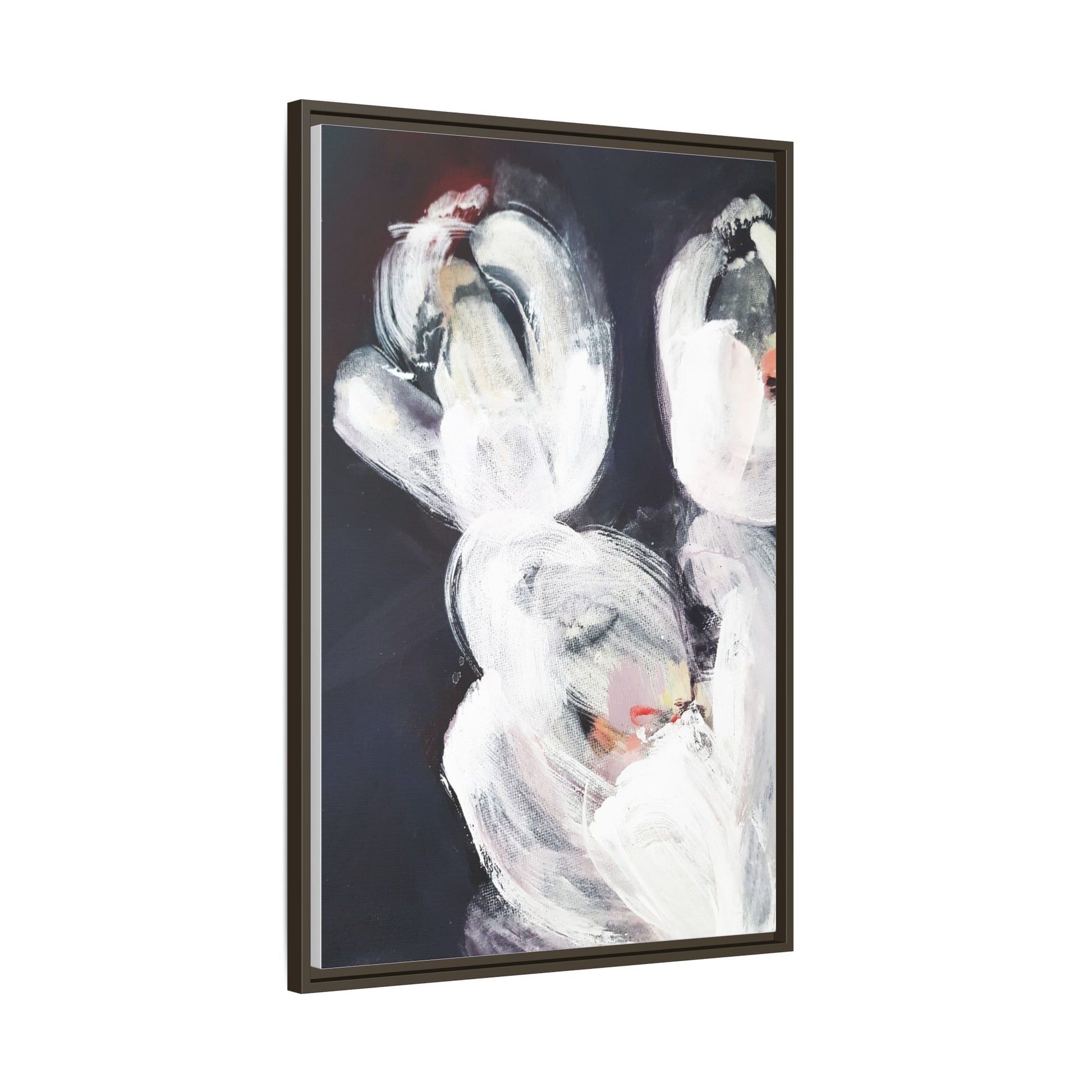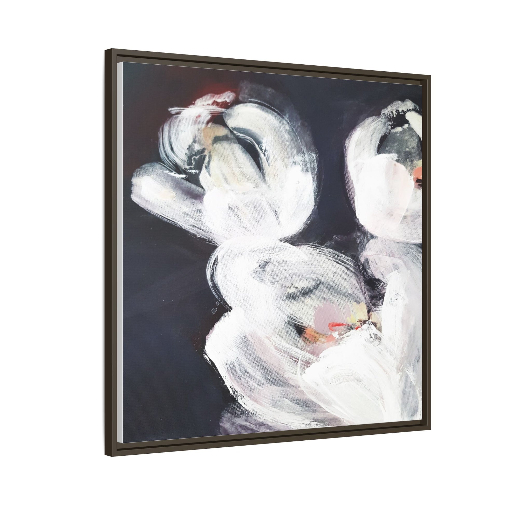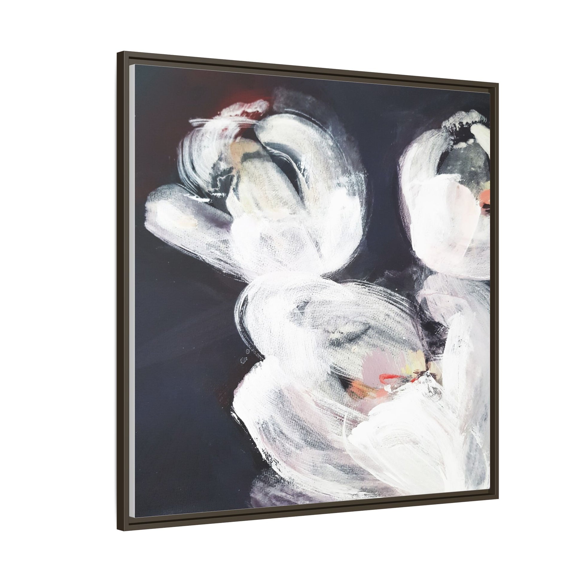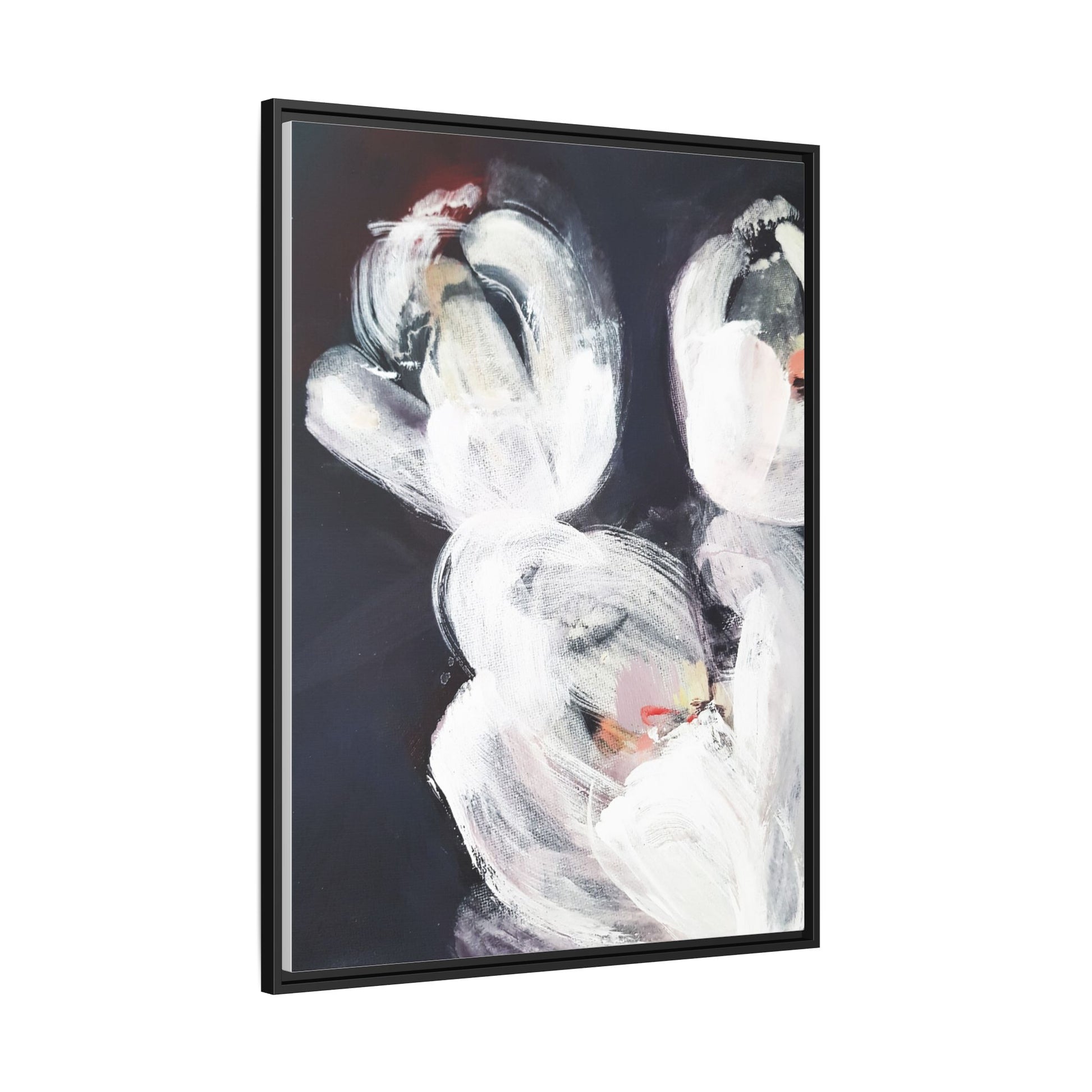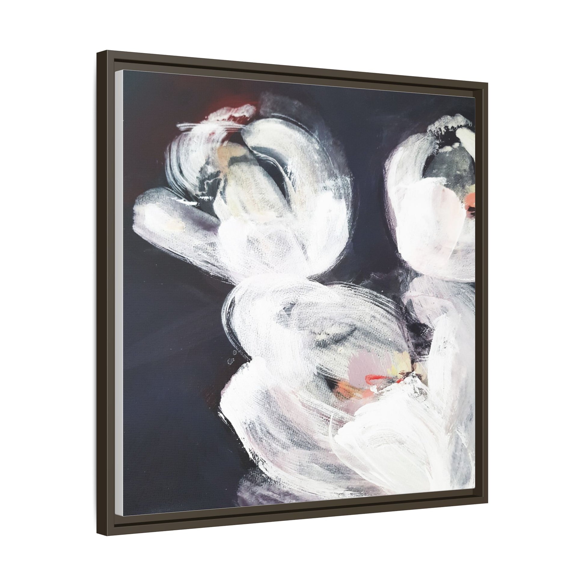 This captivating artwork is an abstract painting featuring soft, flowing white and gray forms against a dark background. The piece appears to be created using a blend of brushstrokes and blurred techniques, giving the image a sense of movement and ethereal quality. Predominantly white and light gray tones dominate the composition, with subtle hints of pale pink and red accents adding depth and intrigue. The brushwork is loose and expressive, creating organic shapes that seem to blend and flow into one another. The painting has a dreamy, almost impressionistic style that invites viewers to interpret the forms freely and emotionally.